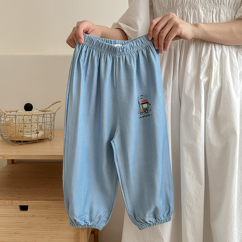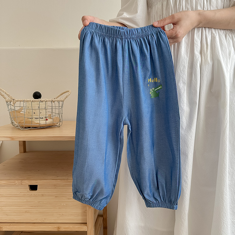 소년 여름 만화 스포츠 바지 아이스 실크 모기 방지 바지 얇은 여름 아기 아동복 어린이 바지 어린이 바지