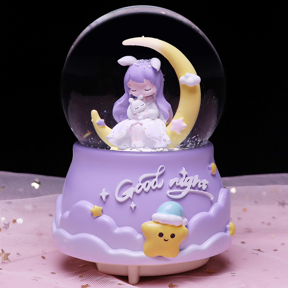 달 천사 크리스탈 볼 음악 상자 만화 빛나는 눈 학생 창조적 인 장식 선물 소녀 생일 선물스토어 가기