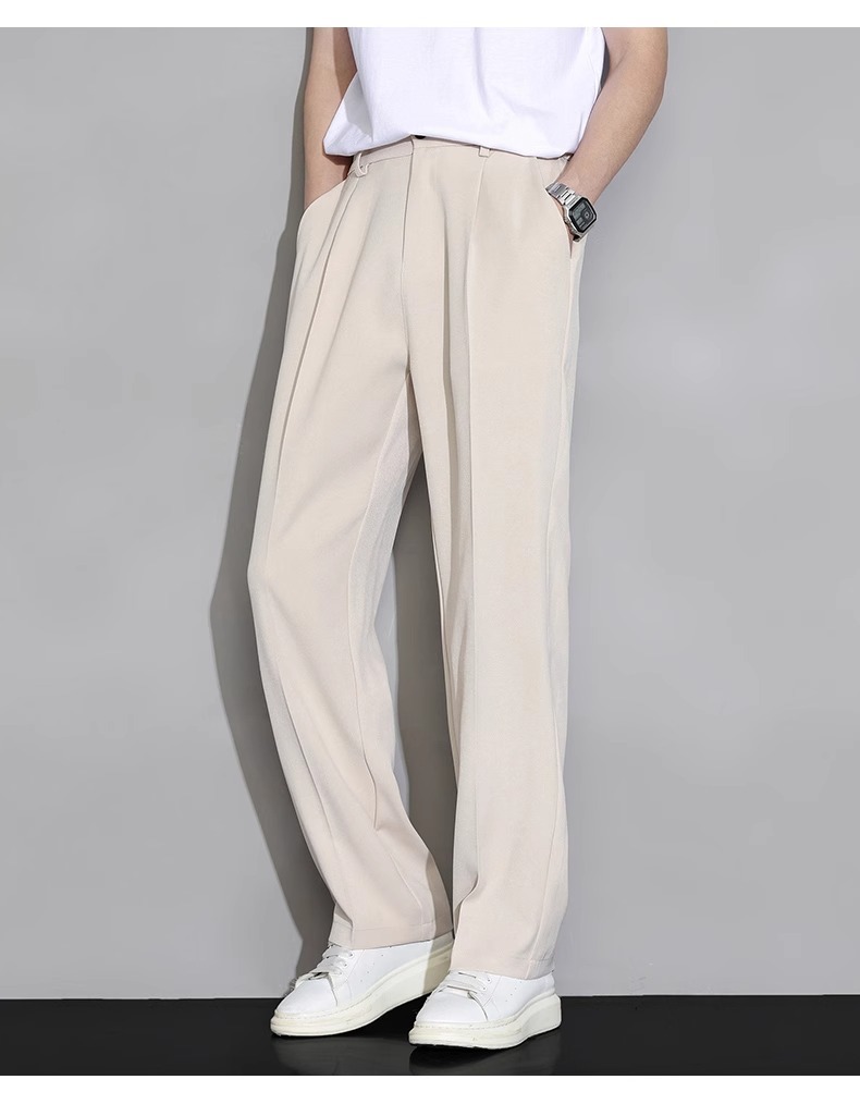 플러스 사이즈 아이스 실크 캐주얼 바지 남성 여름 얇은 느슨한 스트레이트 와이드 다리 여름 바지 세트 세트 세트 바지