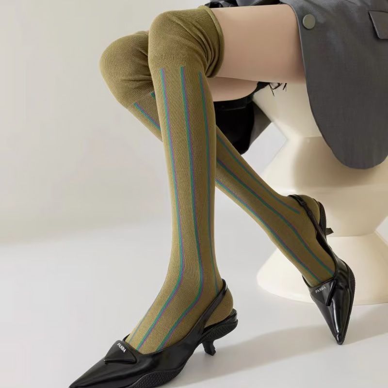 스타킹 무릎 양말 여성의 새로운 패션 디자인 대비 컬러 스트라이프 성격 캣워크 높은 더미 양말스토어 가기