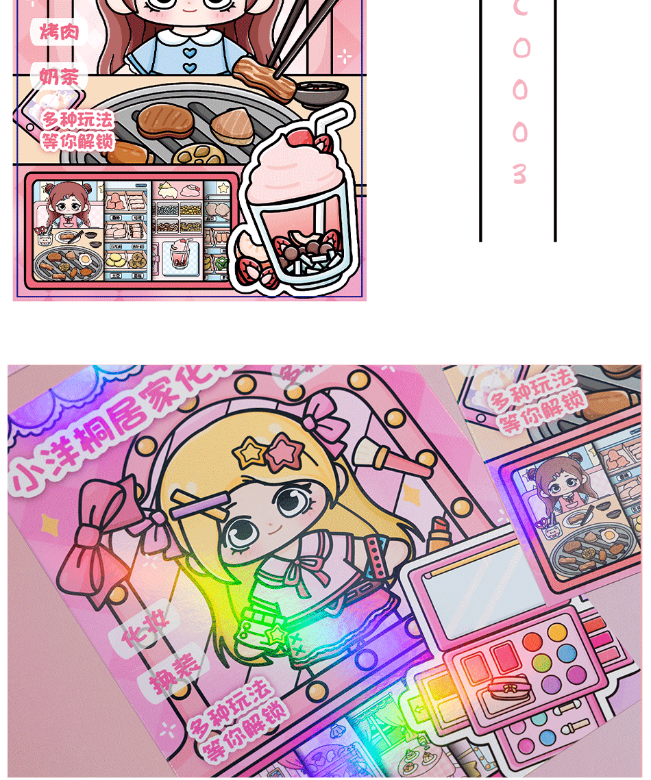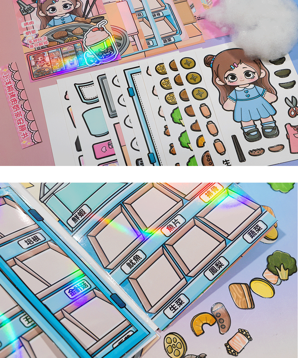 샤오양 통 DIY 조용한 책 수제 바베큐 우유 차 가게 컷-무료 어린이 DIY 소녀 장난감 소녀 스티커