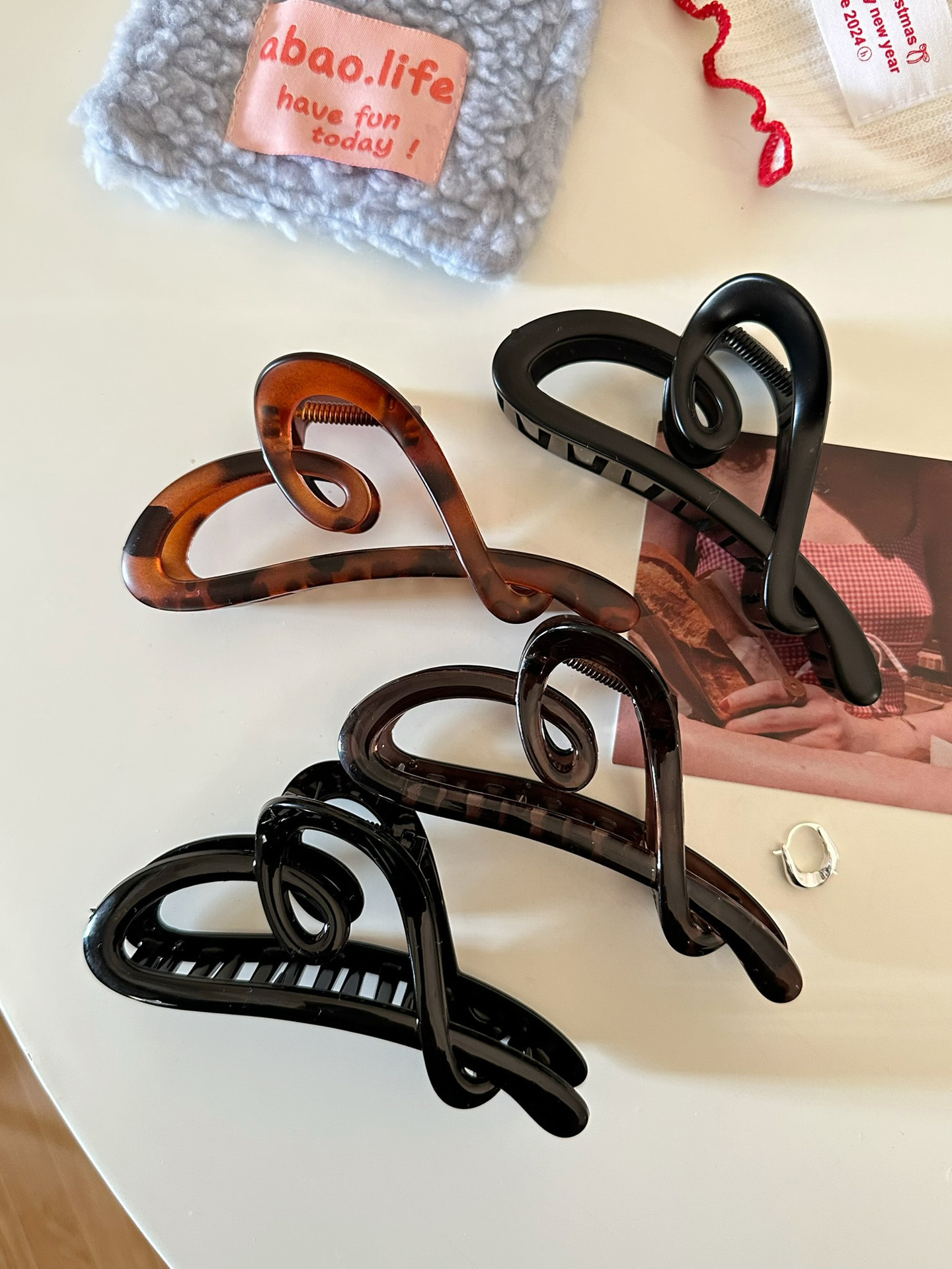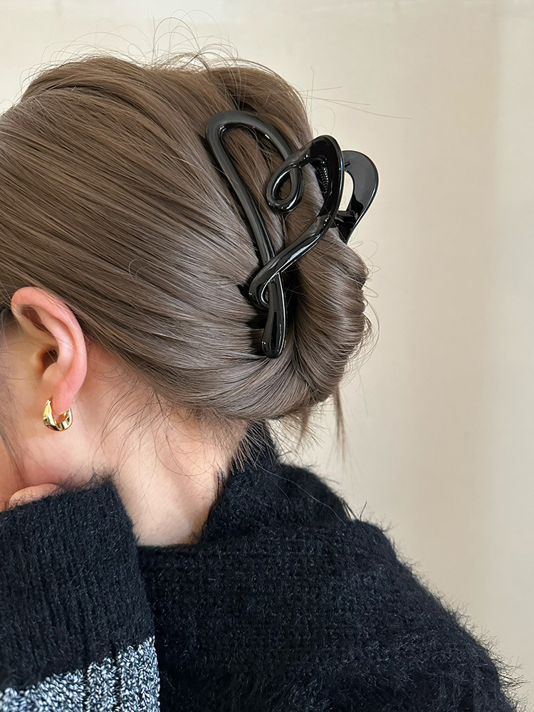 우아한 매트 블랙 러브 클립 여성의 고급 머리 머리핀 2024 새로운 고급 상어 클립 머리 장식스토어 가기