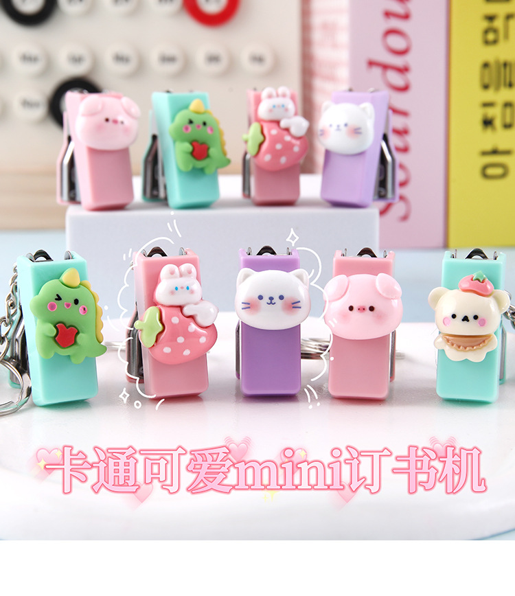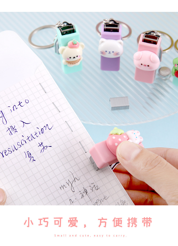 열쇠 고리가있는 작은 스테이플러 휴대용 귀여운 만화 미니 스테이플러 학생 사무실 문구 스테이플 도매