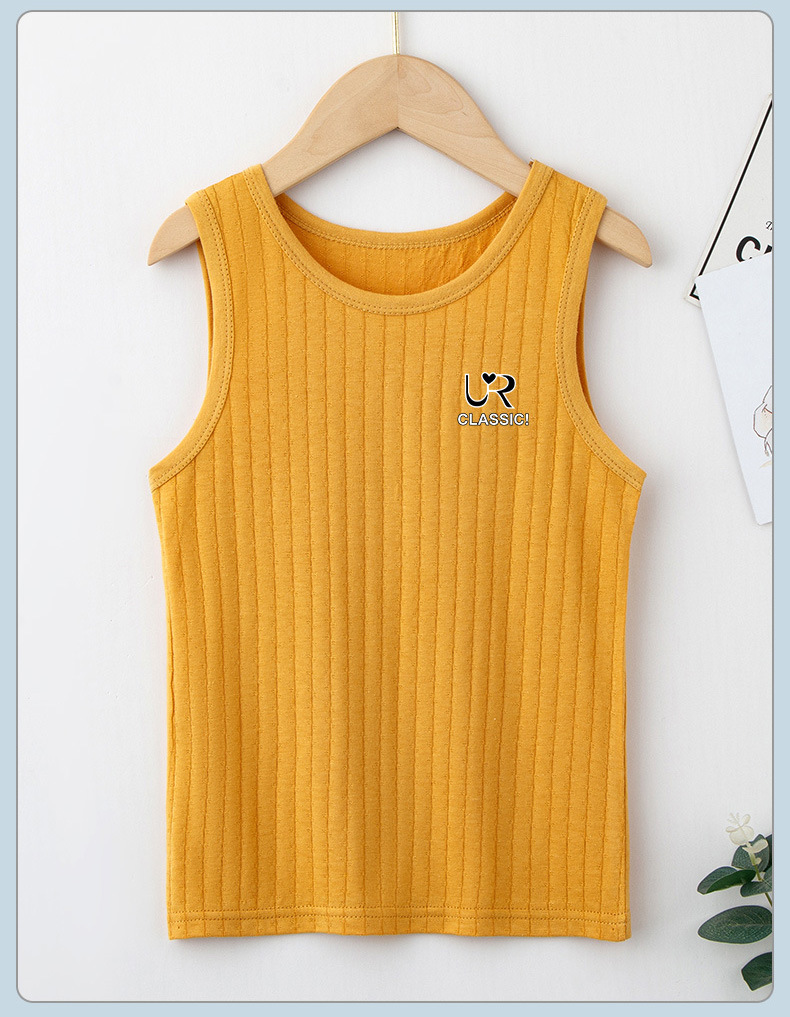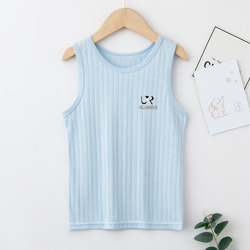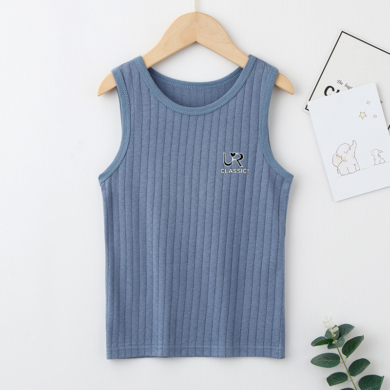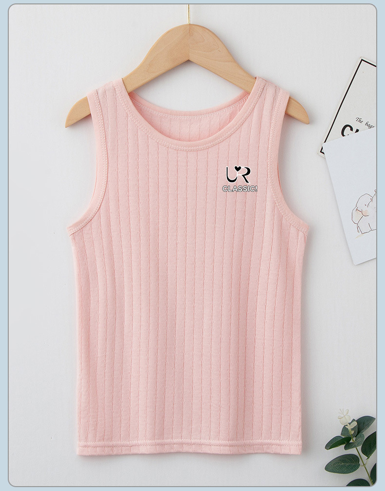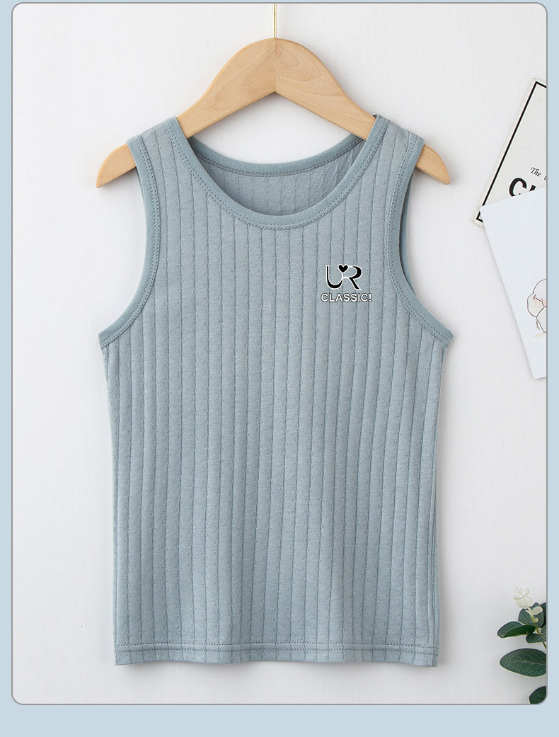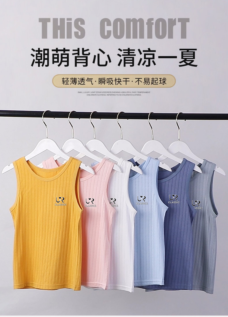 여름 새로운 어린이 수직 패턴 구덩이 I 자형 조끼 중소 소년 소녀 캔디 컬러 단일 둥근 목 바닥