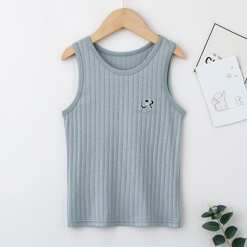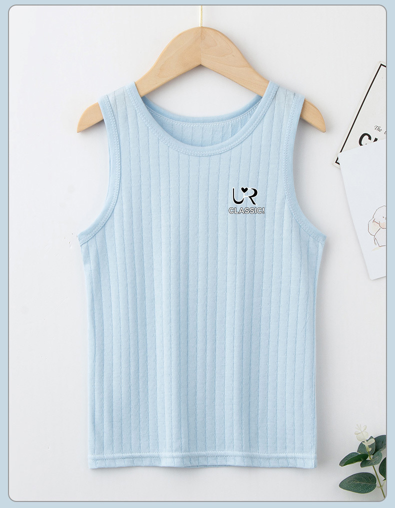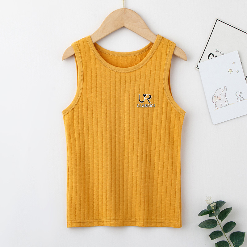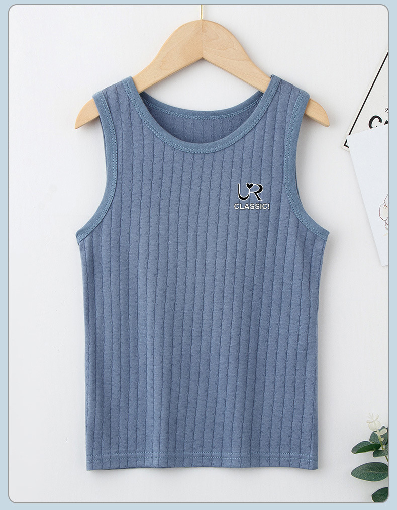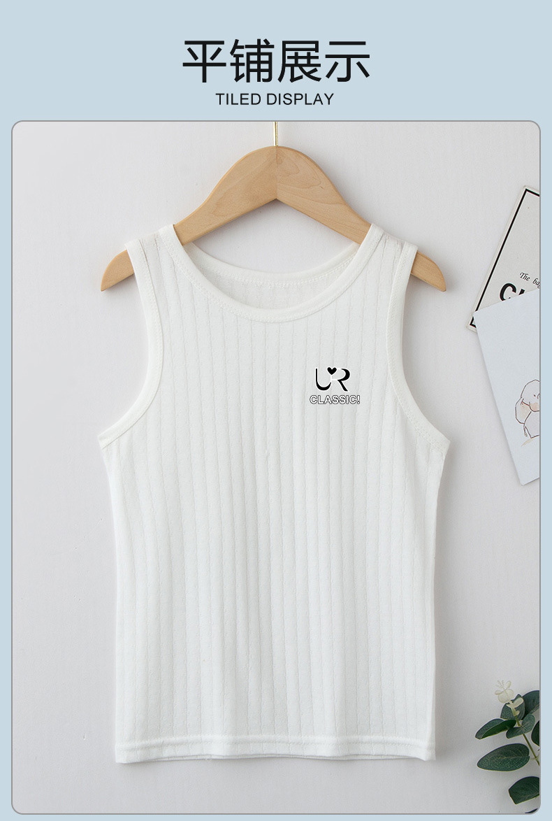 여름 새로운 어린이 수직 패턴 구덩이 I 자형 조끼 중소 소년 소녀 캔디 컬러 단일 둥근 목 바닥