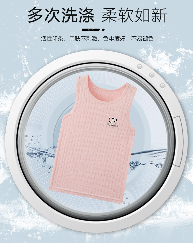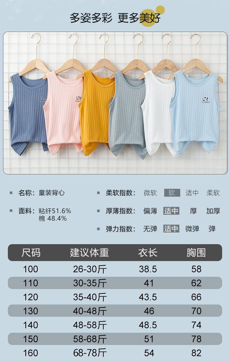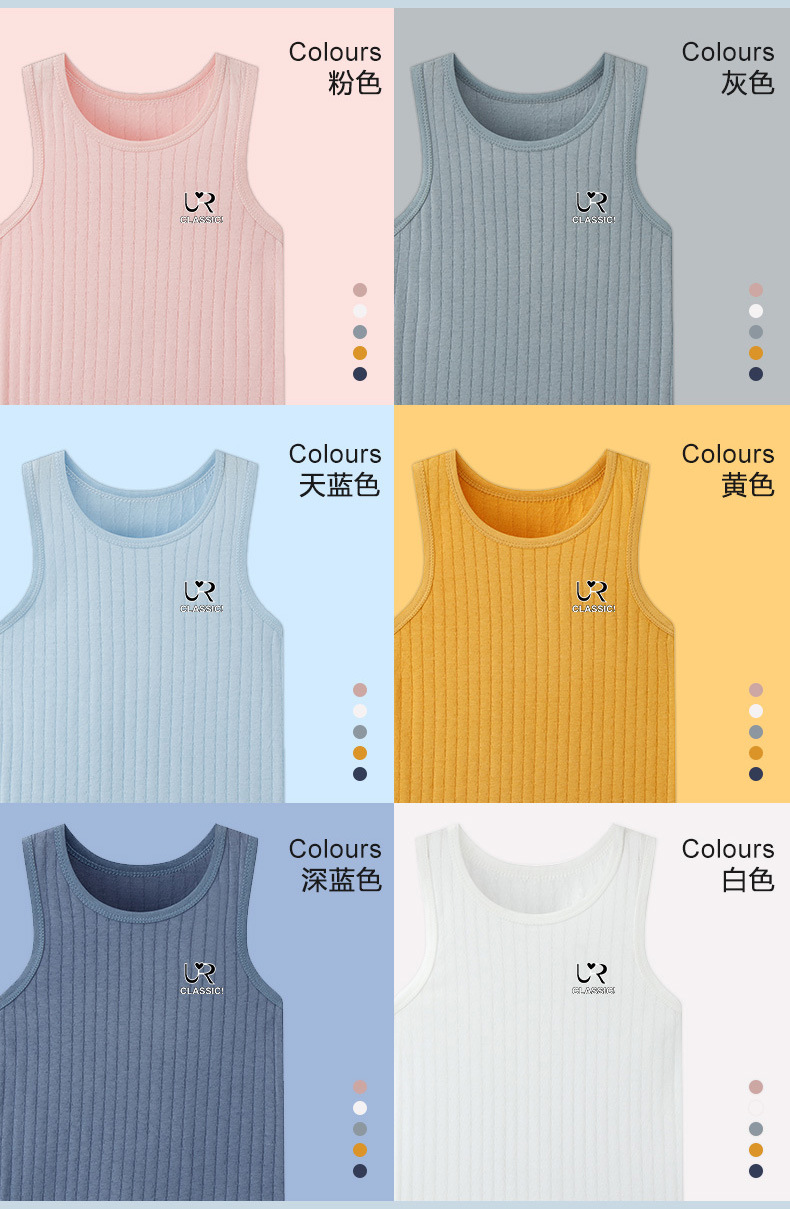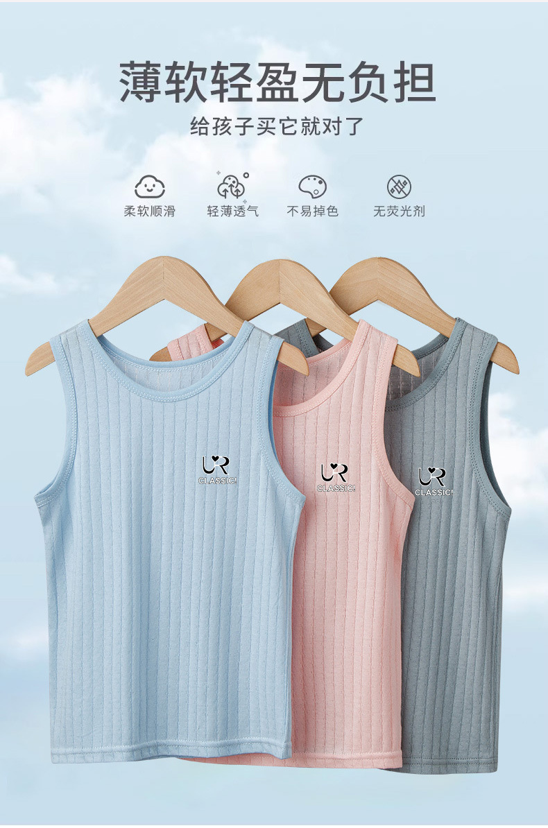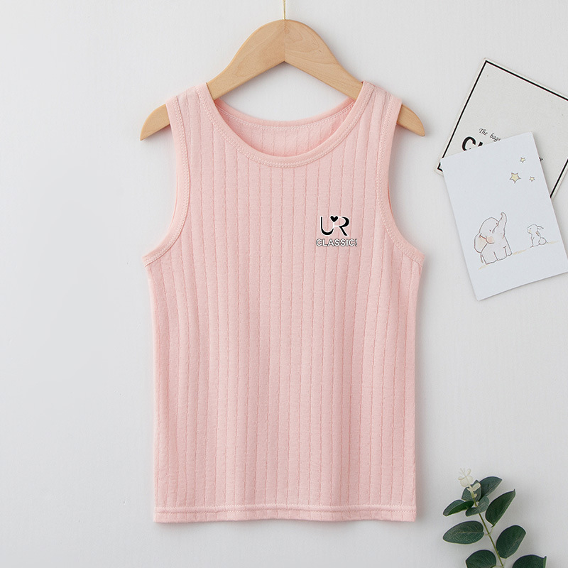 여름 새로운 어린이 수직 패턴 구덩이 I 자형 조끼 중소 소년 소녀 캔디 컬러 단일 둥근 목 바닥