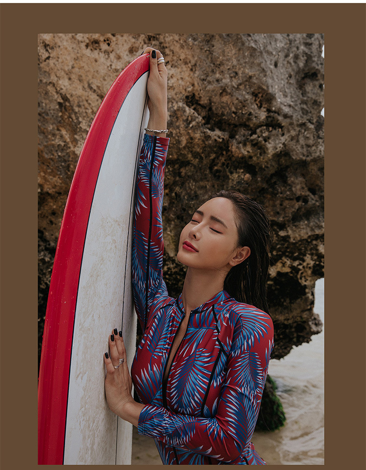 인쇄 된 새로운 2024 한국 온천 새로운 슬림 슬리밍 긴 소매 지퍼 태양 보호 원피스 수영복 여성용 다이빙 세트