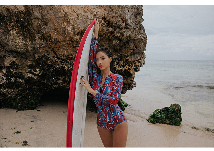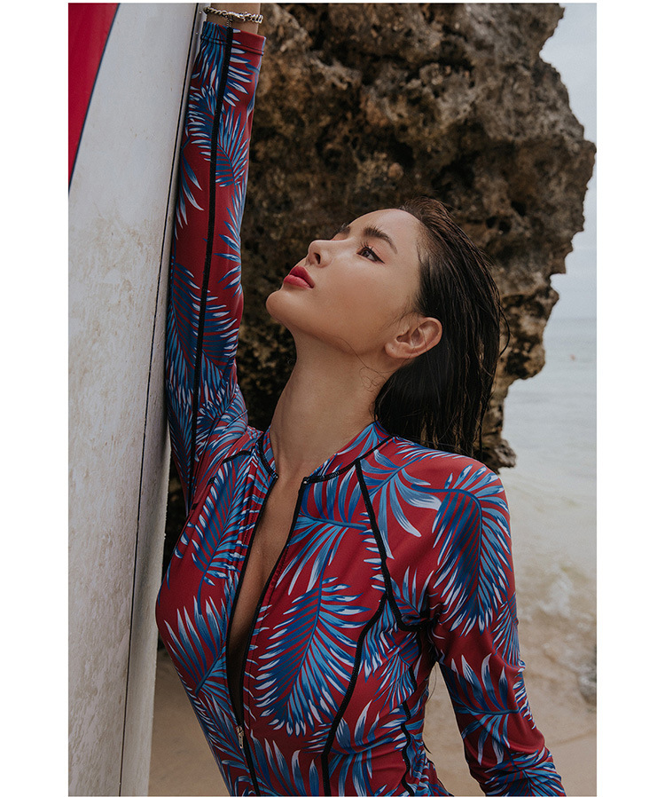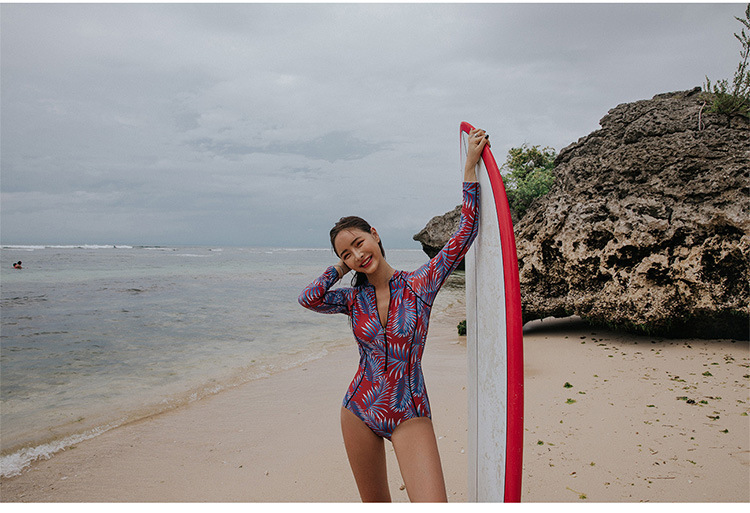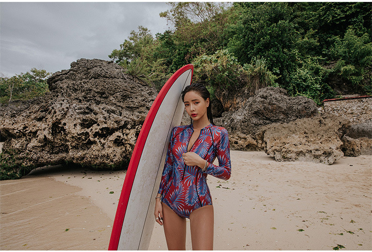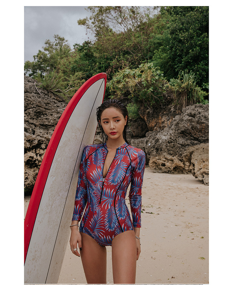인쇄 된 새로운 2024 한국 온천 새로운 슬림 슬리밍 긴 소매 지퍼 태양 보호 원피스 수영복 여성용 다이빙 세트스토어 가기