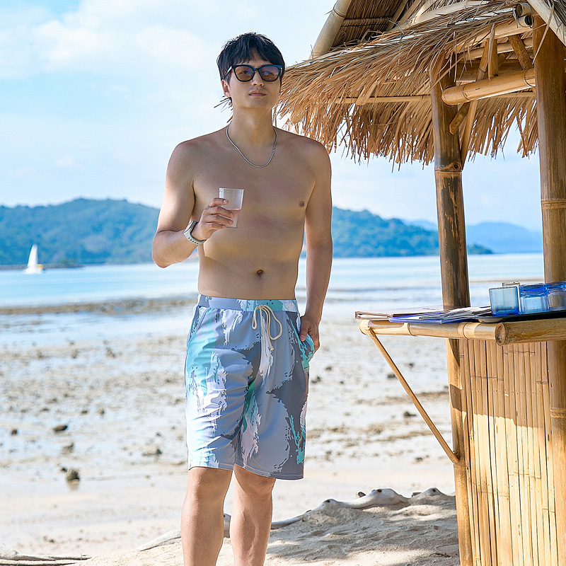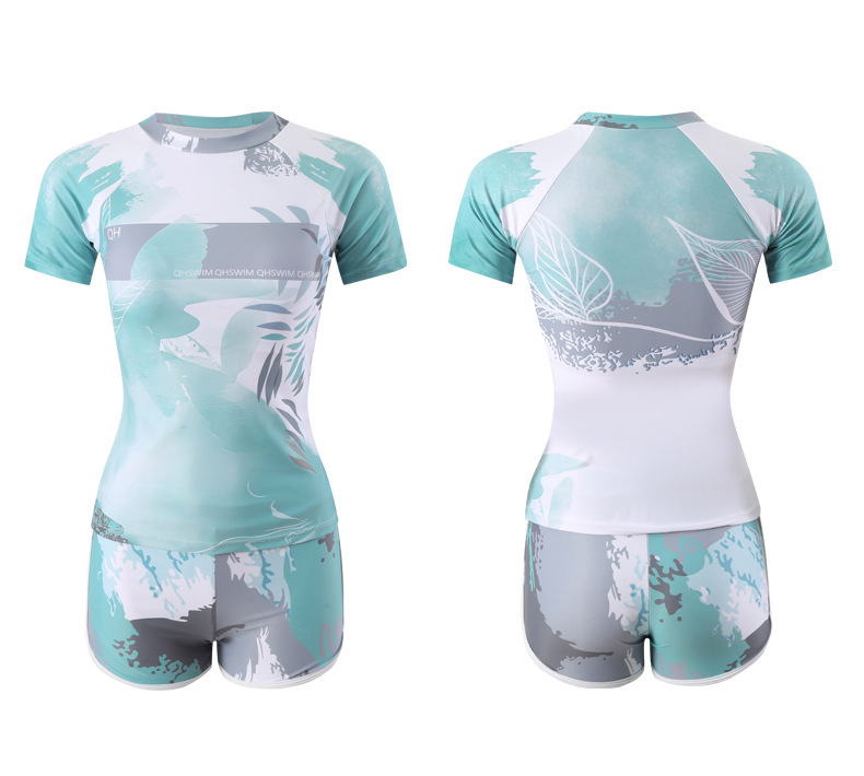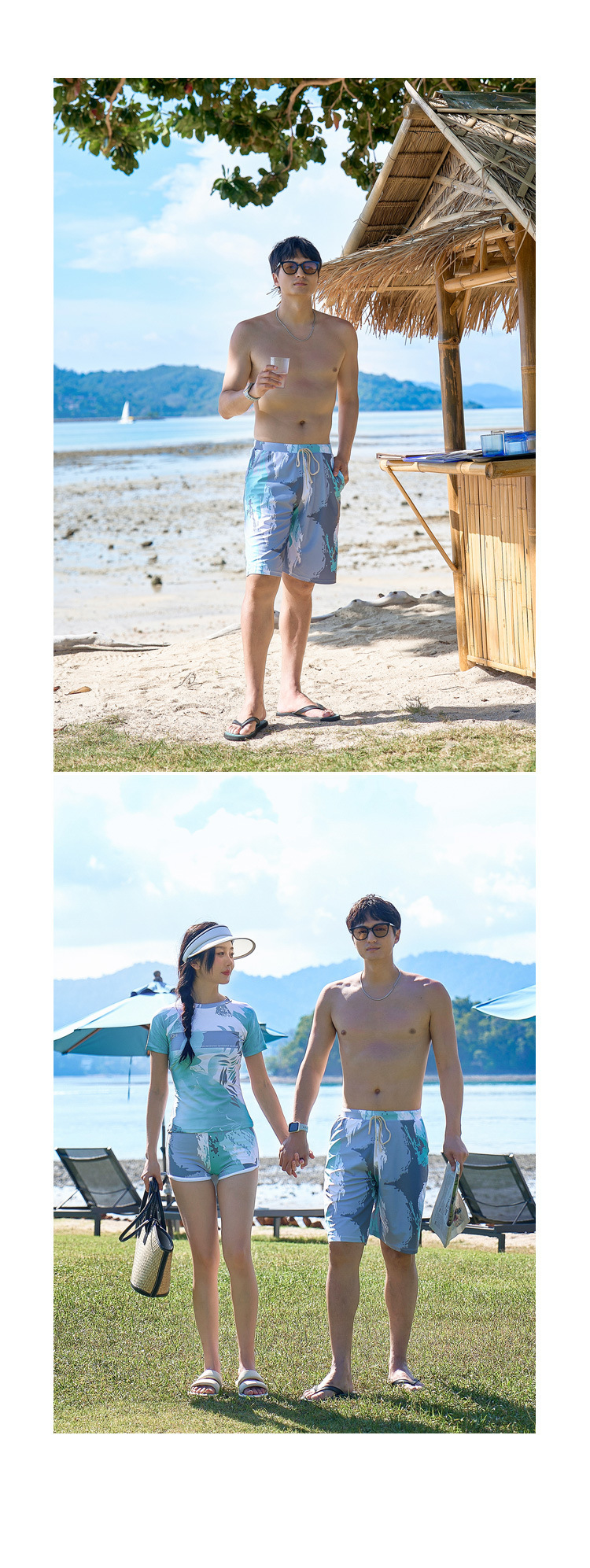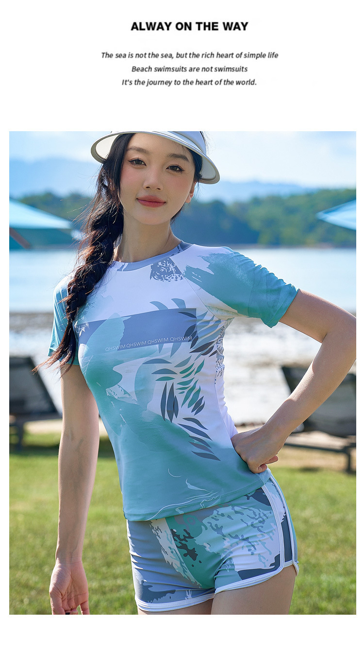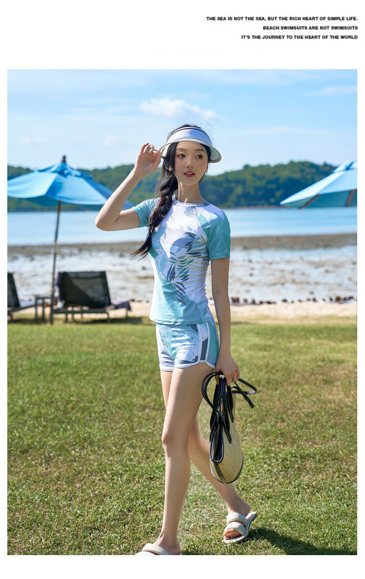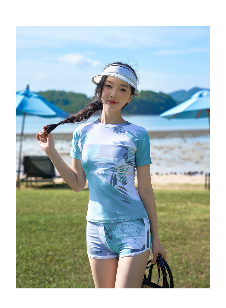 해변 휴가 커플 수영 세트 패션 한국 캐주얼 스포츠 태양 보호 반소매 권투 선수 남녀 수영복스토어 가기