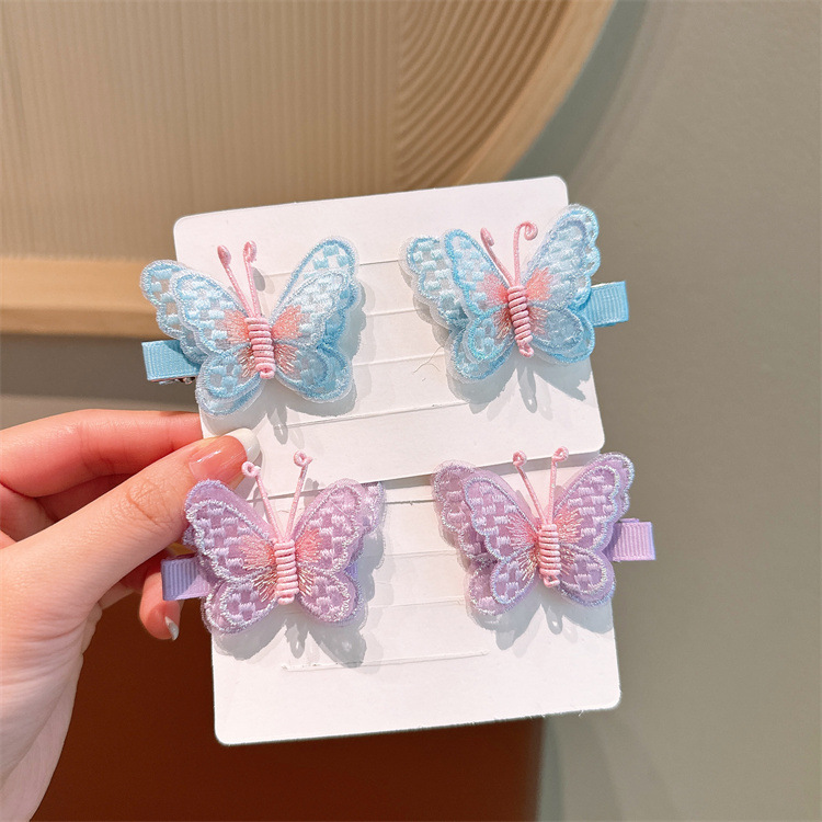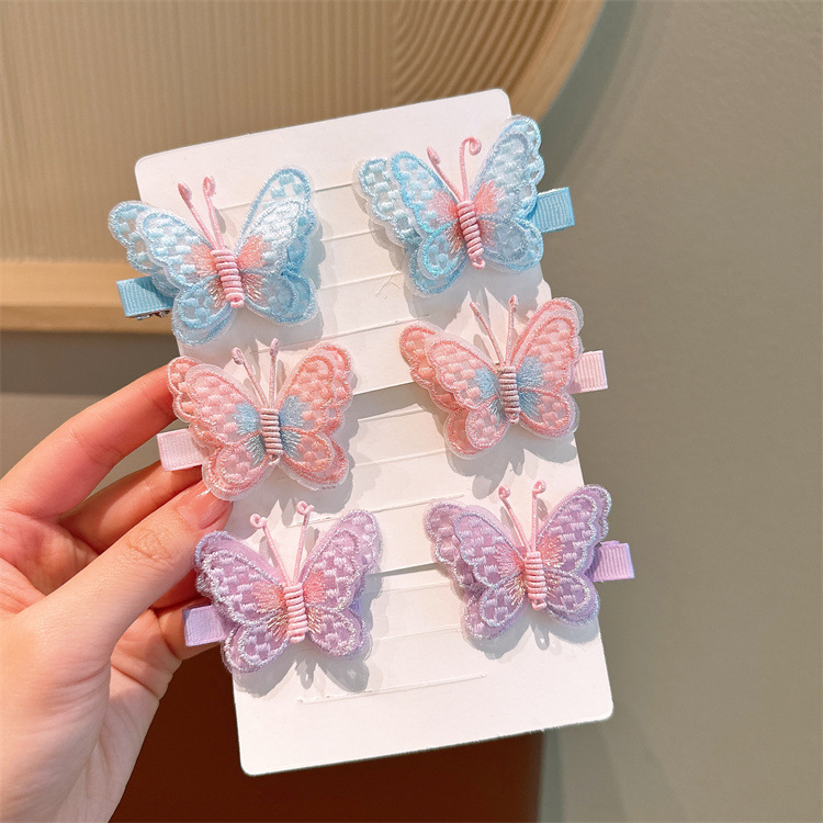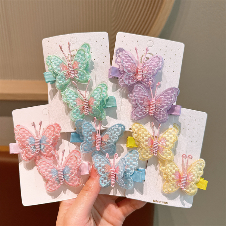 어린이 자수 나비 머리핀 슈퍼 귀여운 소녀의 고대 스타일 한부 머리 장식 머리핀 공주 앞머리 부러진 머리 옆 클립