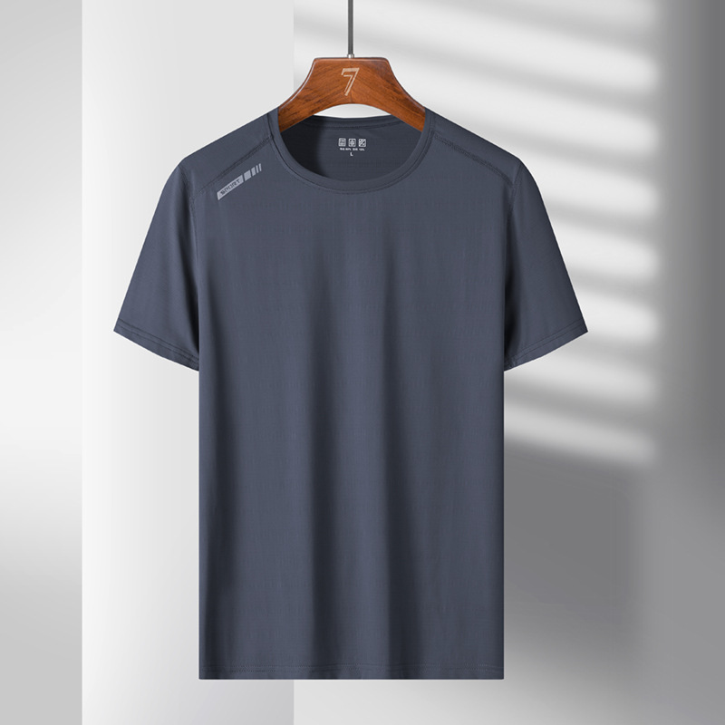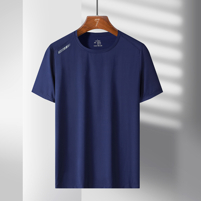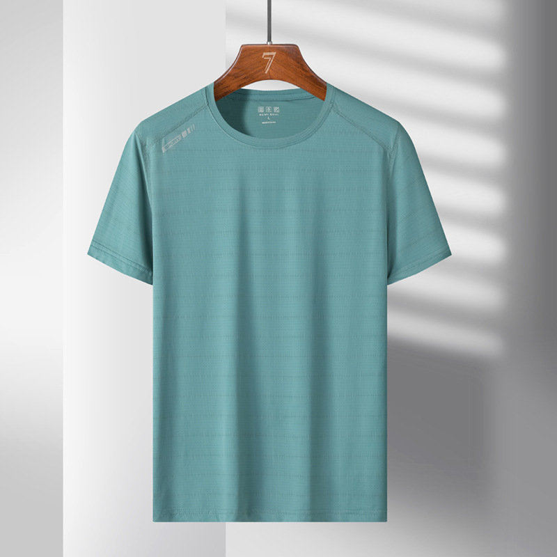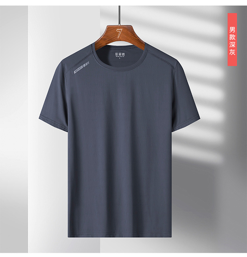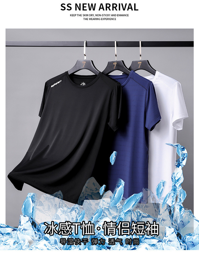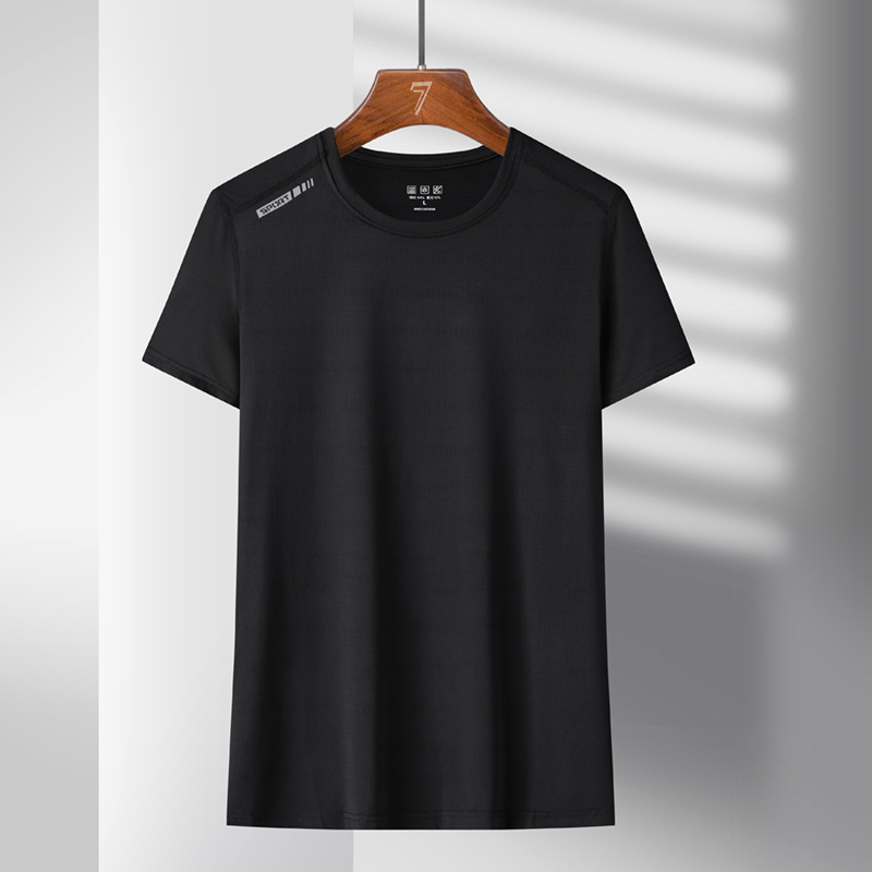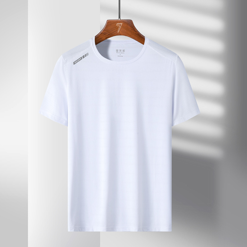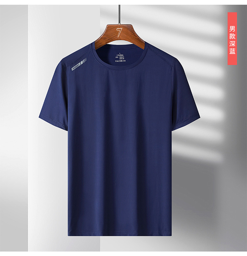 여름 스포츠 캐주얼 아이스 실크 짧은 소매 남성 양이온 빠른 건조 얼음 탄성 통기성 느슨한 청소년 라운드 넥 티셔츠