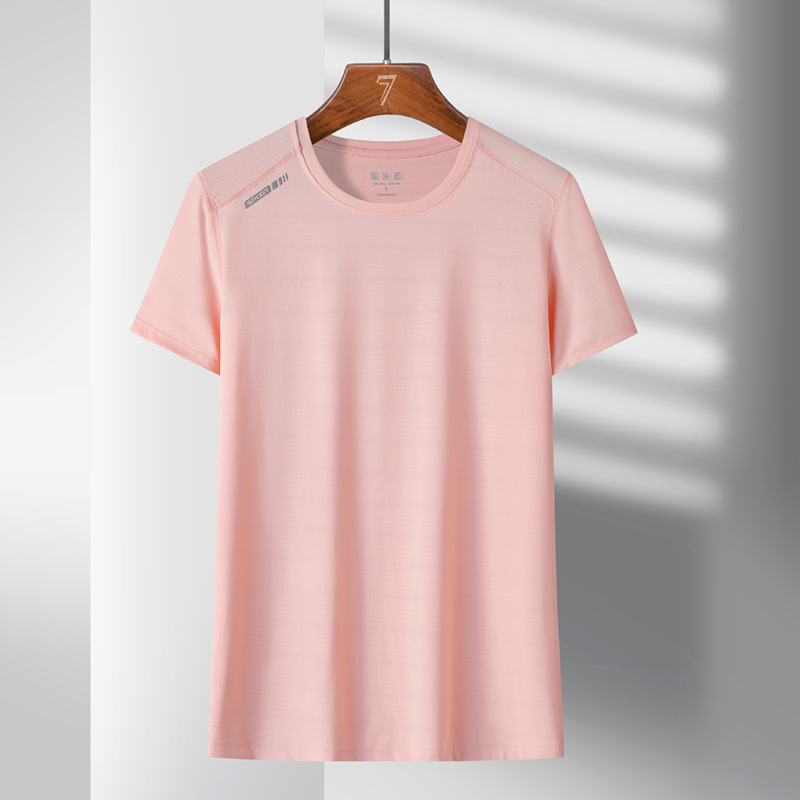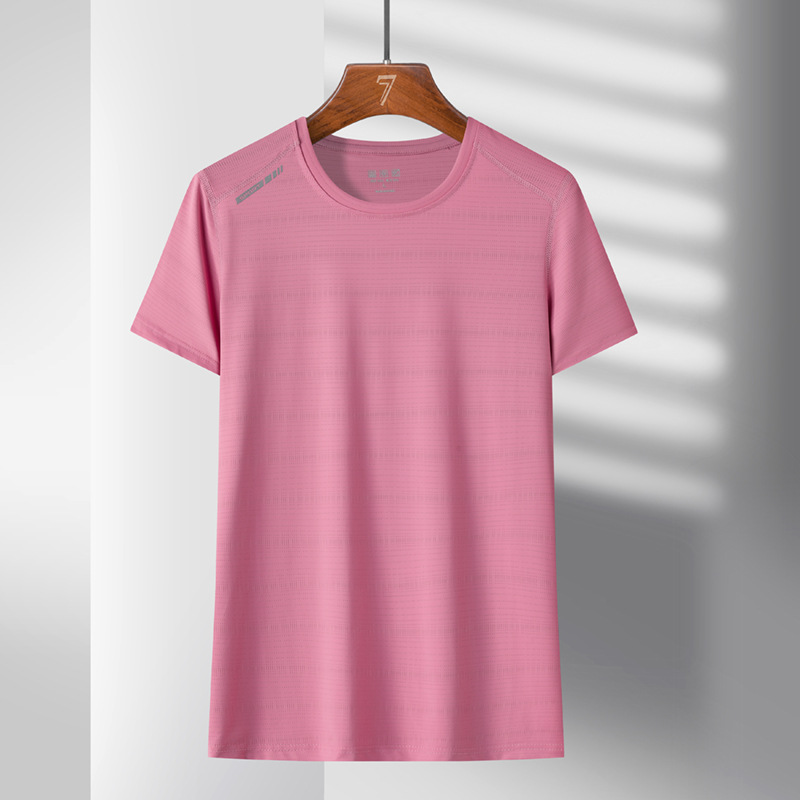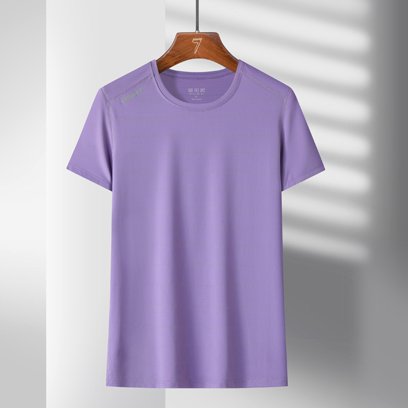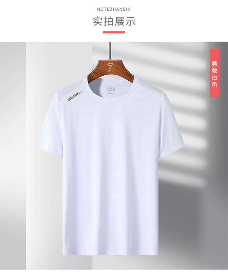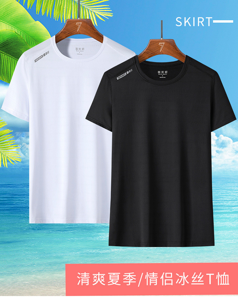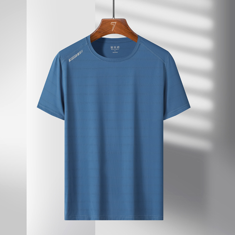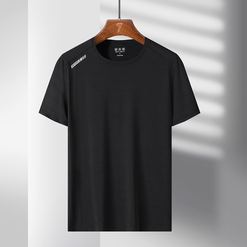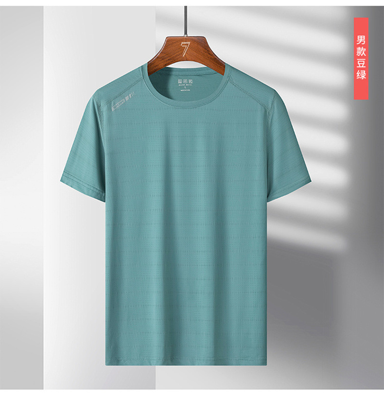 여름 스포츠 캐주얼 아이스 실크 짧은 소매 남성 양이온 빠른 건조 얼음 탄성 통기성 느슨한 청소년 라운드 넥 티셔츠