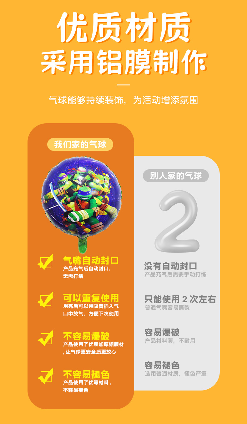 국경을 넘는 새로운 어린이 만화 닌자 거북이 파티 장식 레이아웃 떠 다니는 빈 알루미늄 풍선 도매 생일 세트스토어 가기