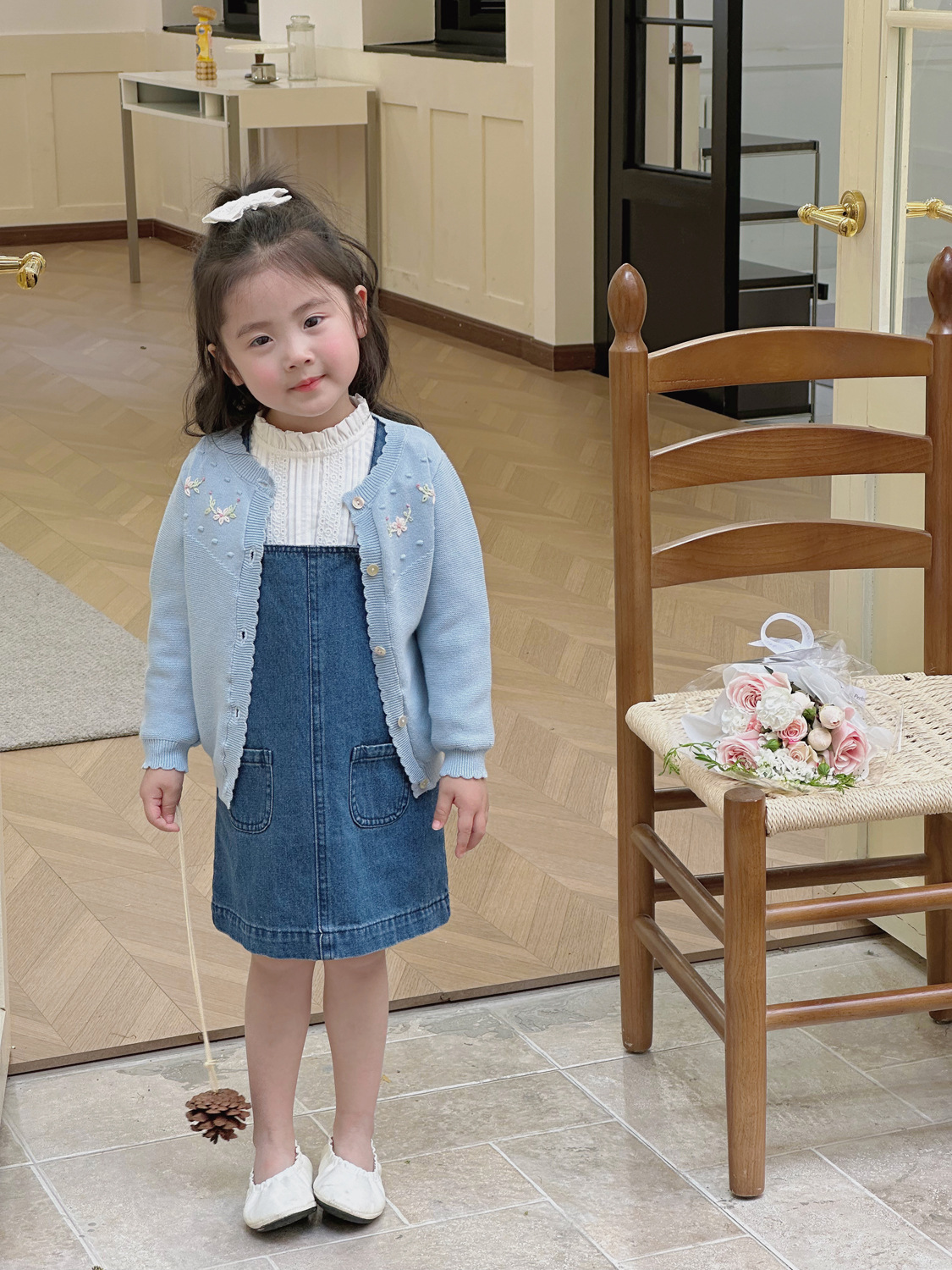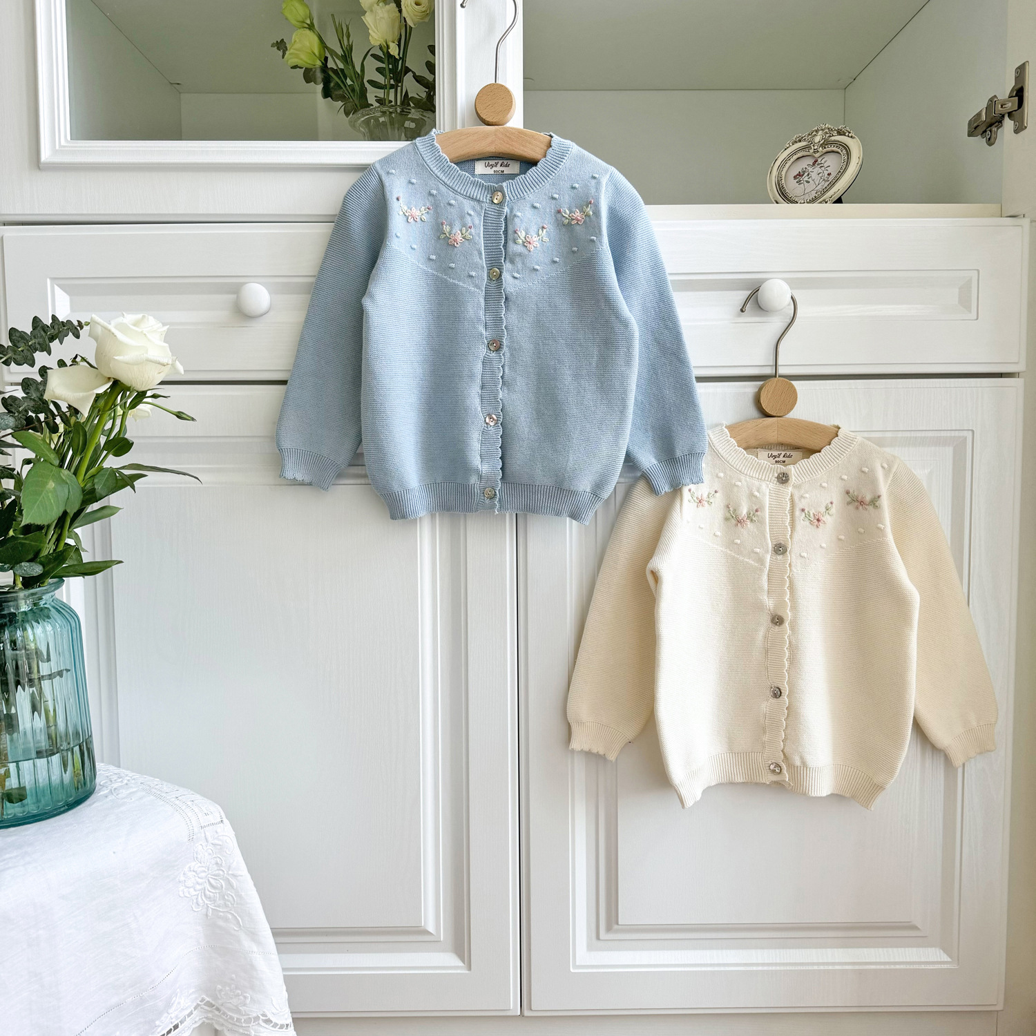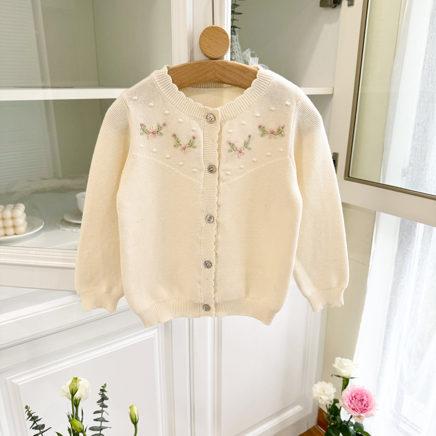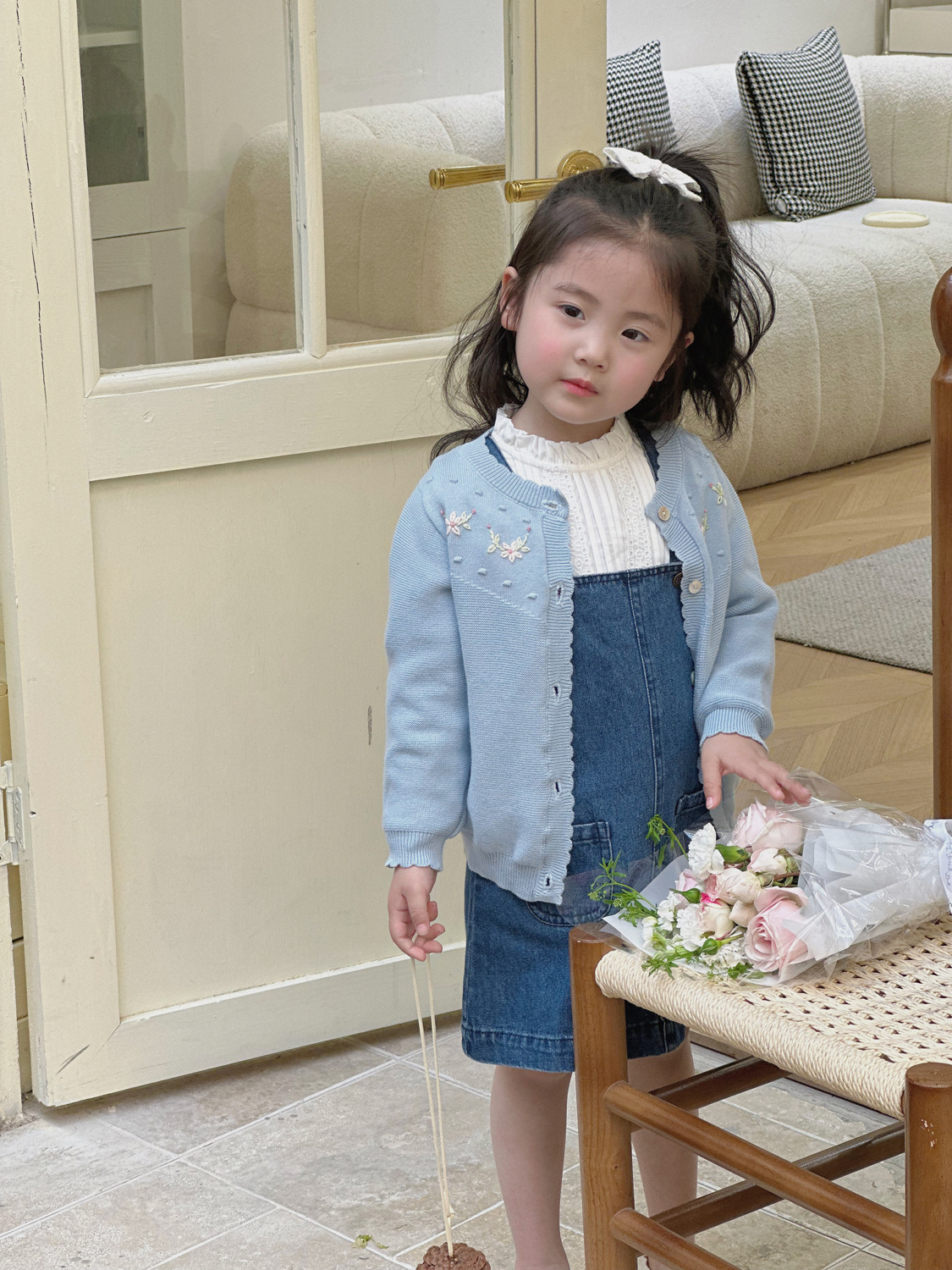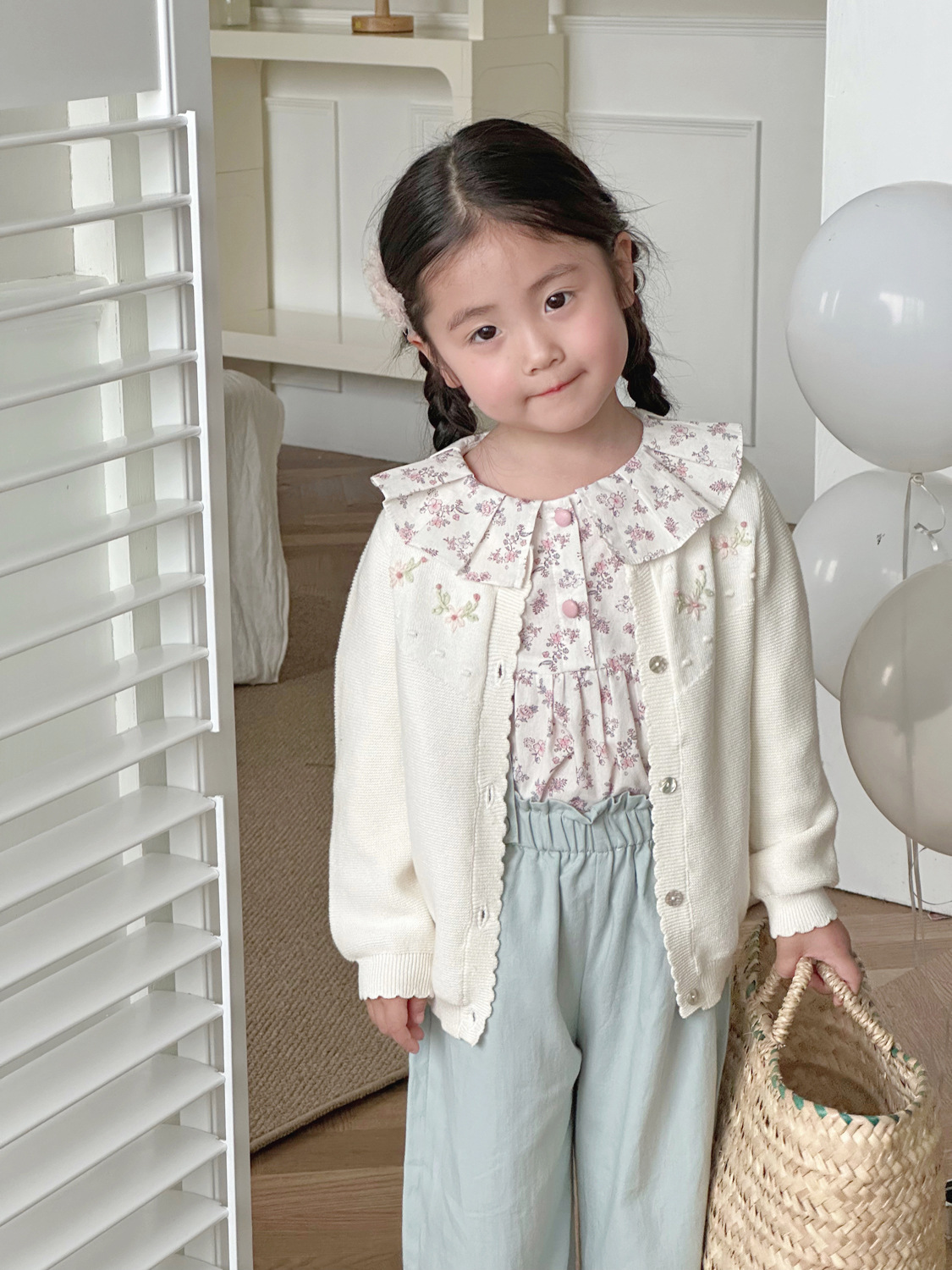 2025 봄, 가을 크로스 보더 소녀 카디건 서양식 코튼 니트 카디건 ins 아기 소녀 코튼 핸드 자수 카디건스토어 가기