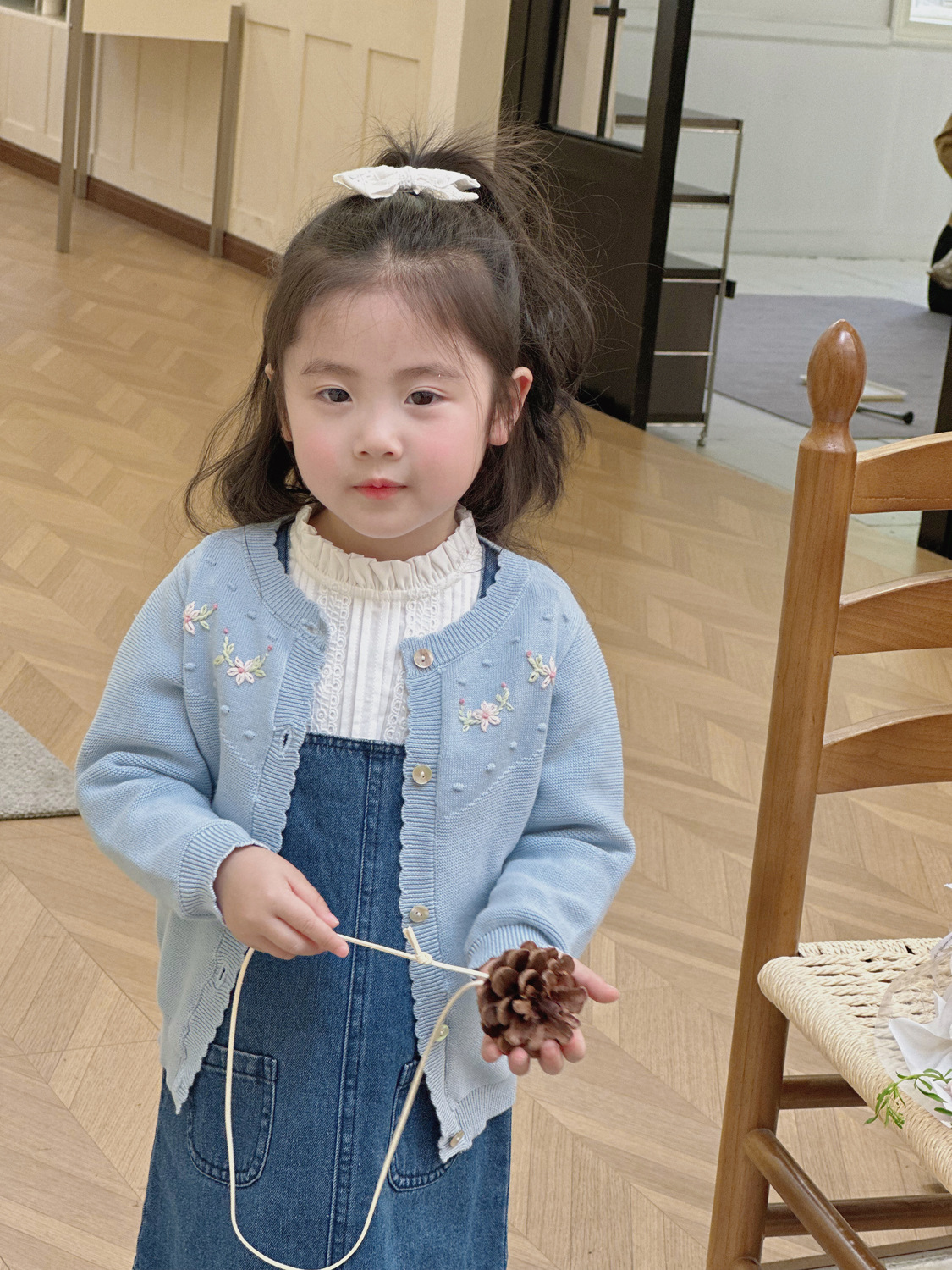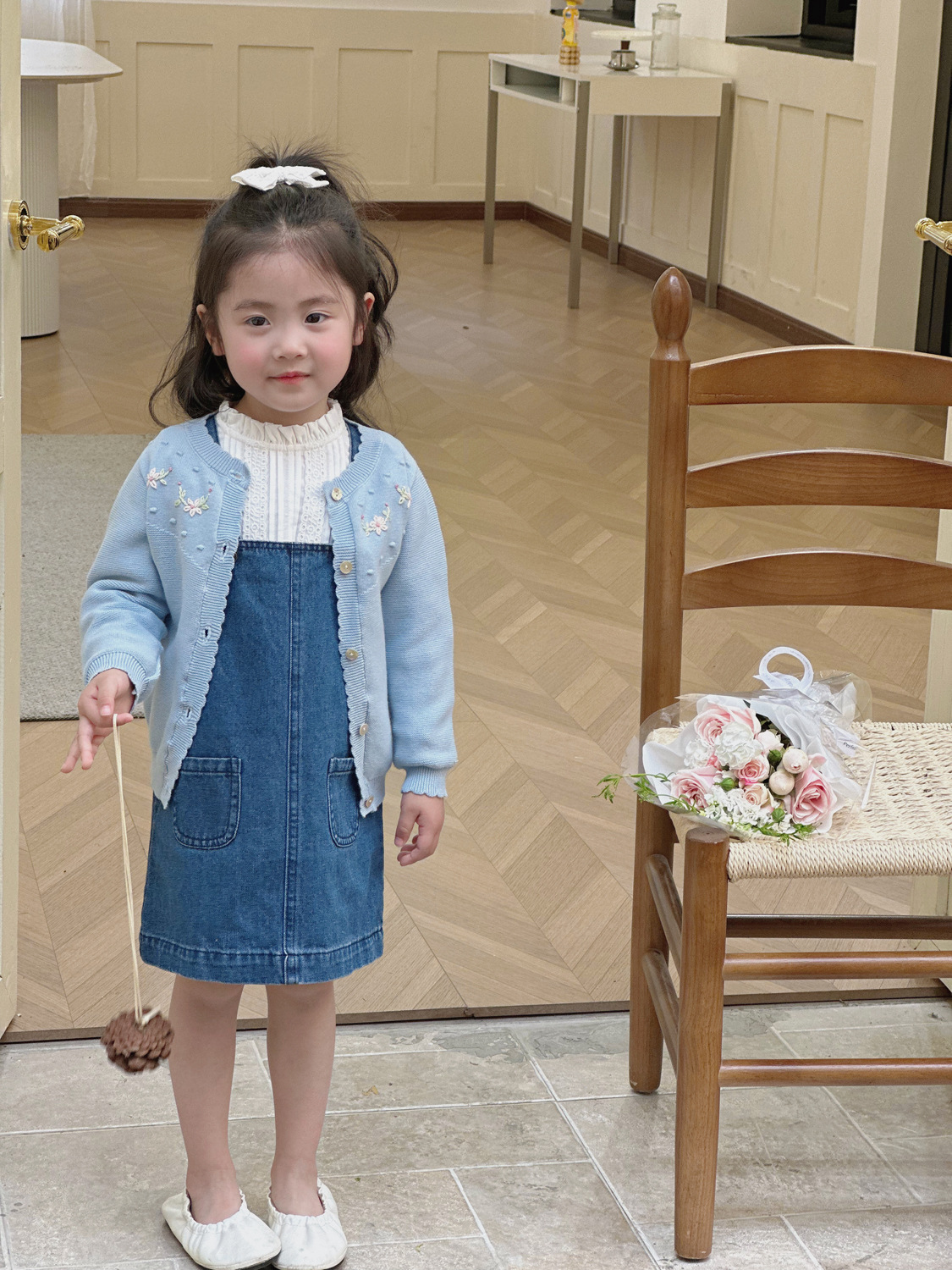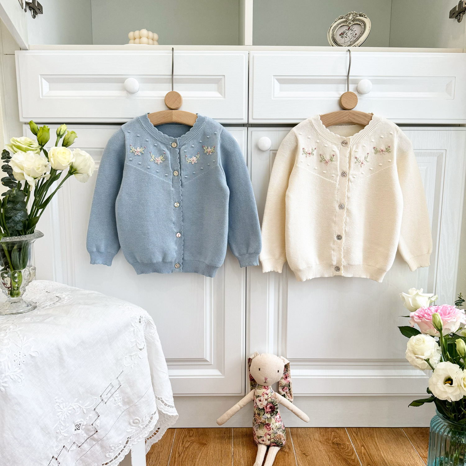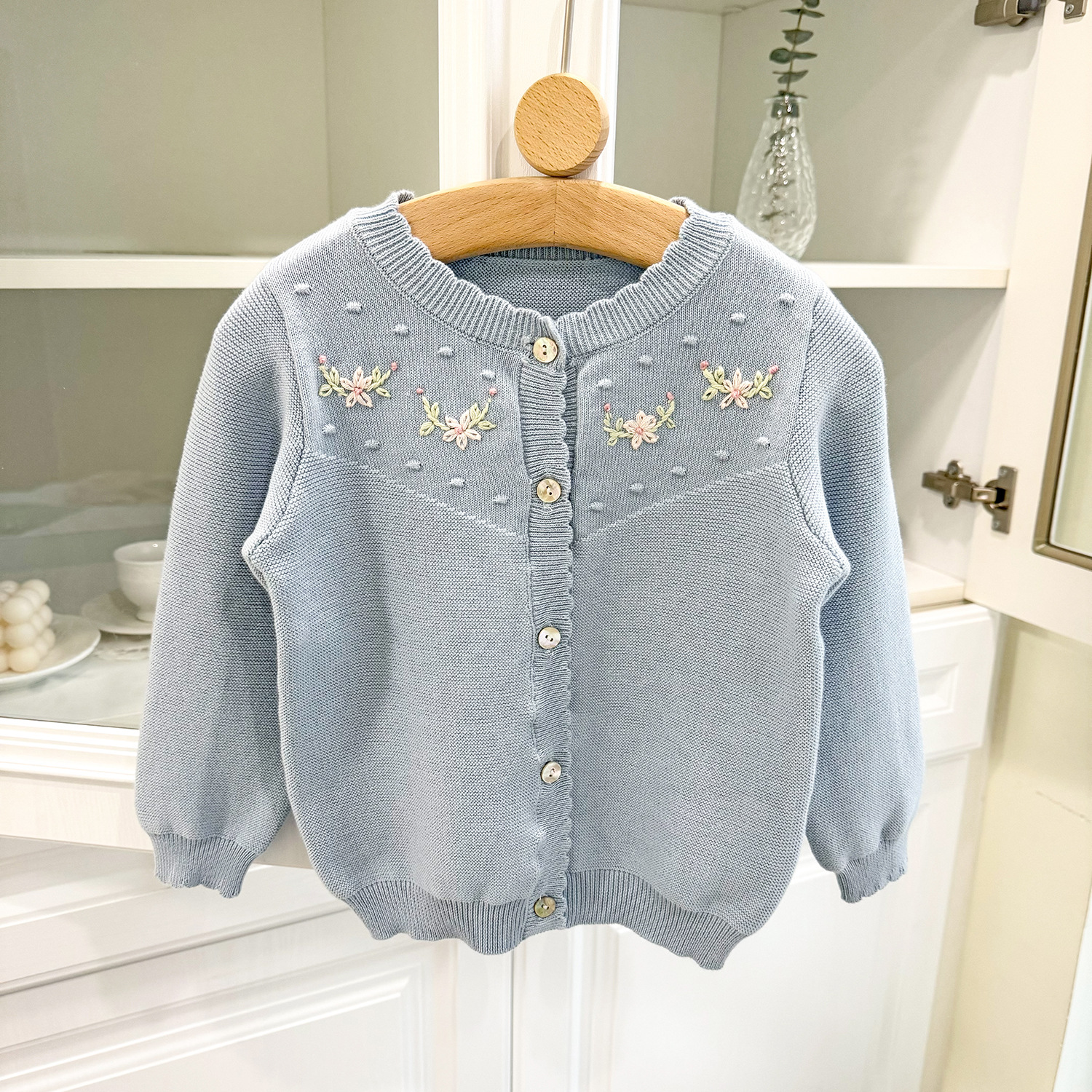 2025 봄, 가을 크로스 보더 소녀 카디건 서양식 코튼 니트 카디건 ins 아기 소녀 코튼 핸드 자수 카디건스토어 가기