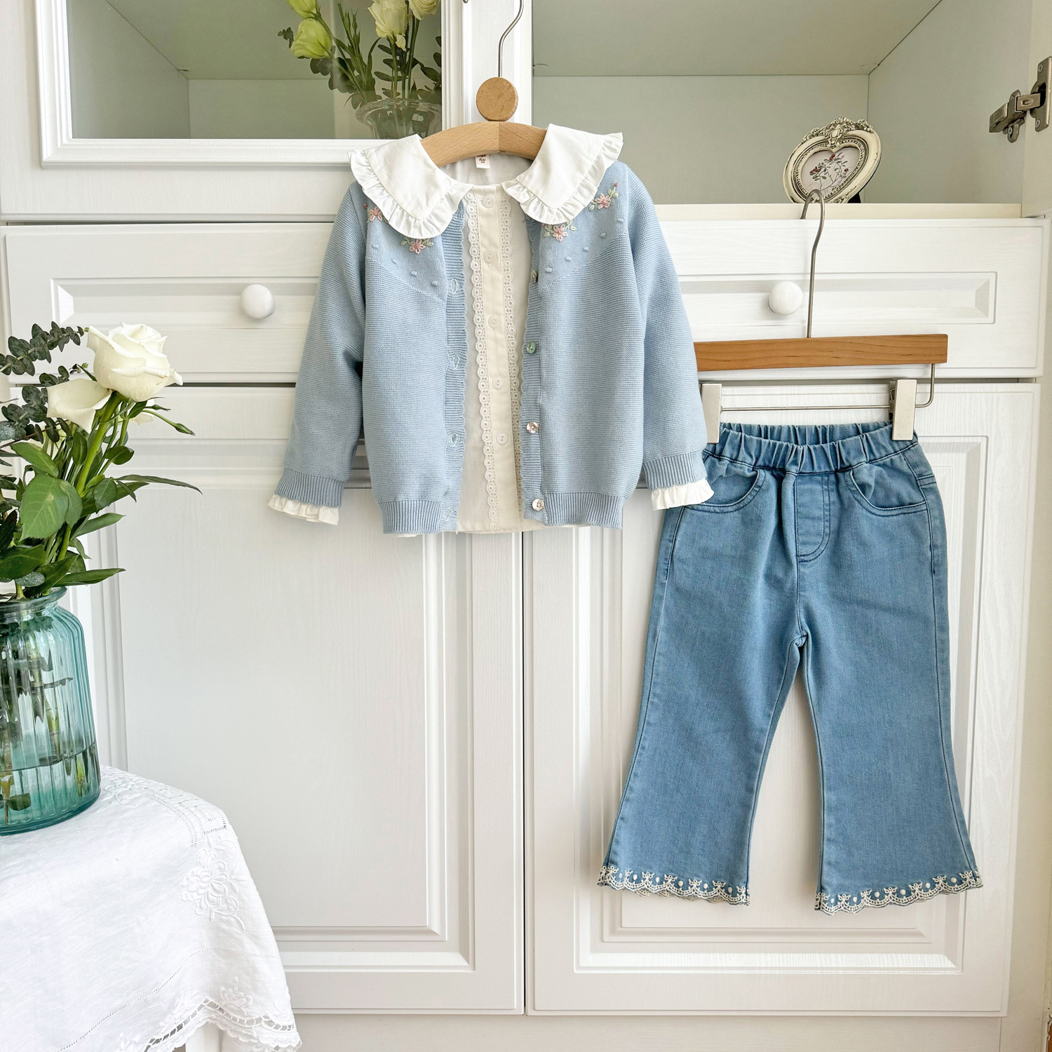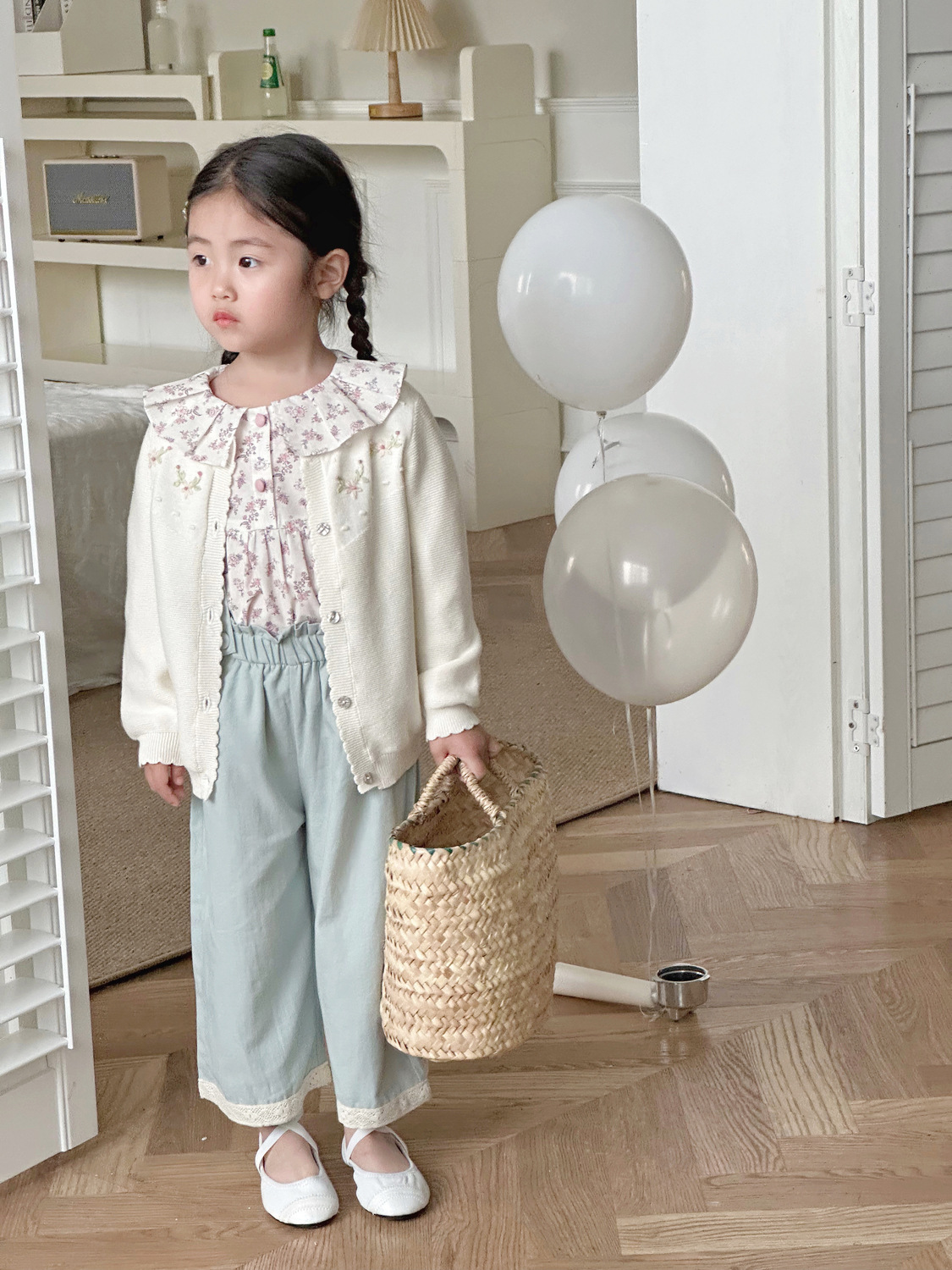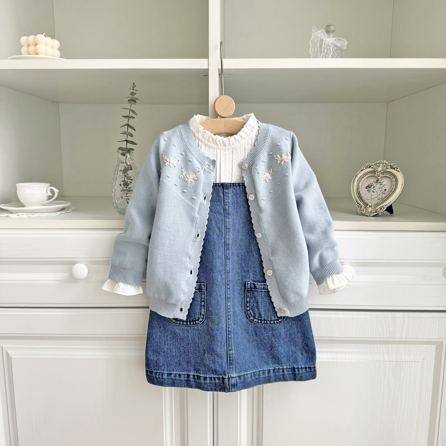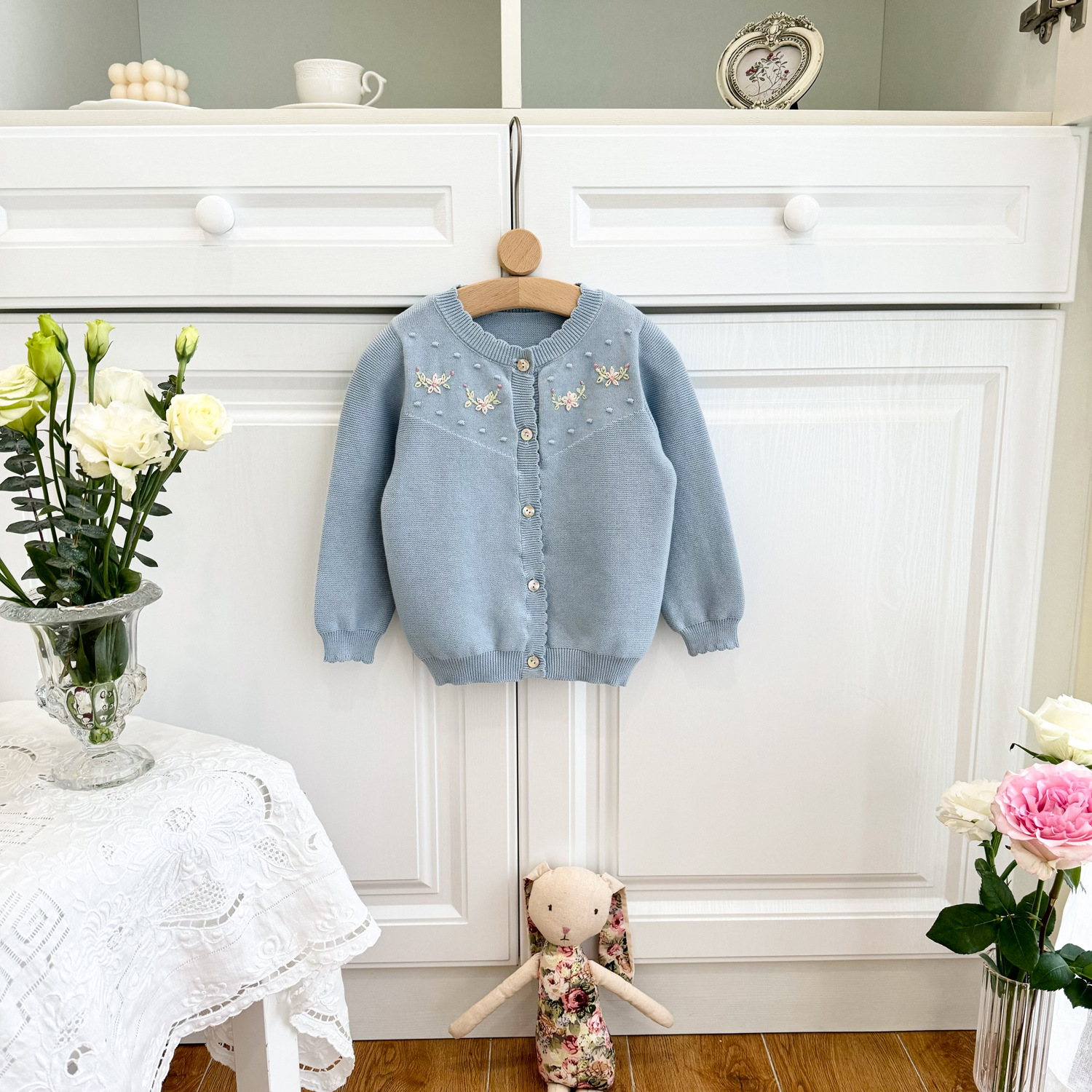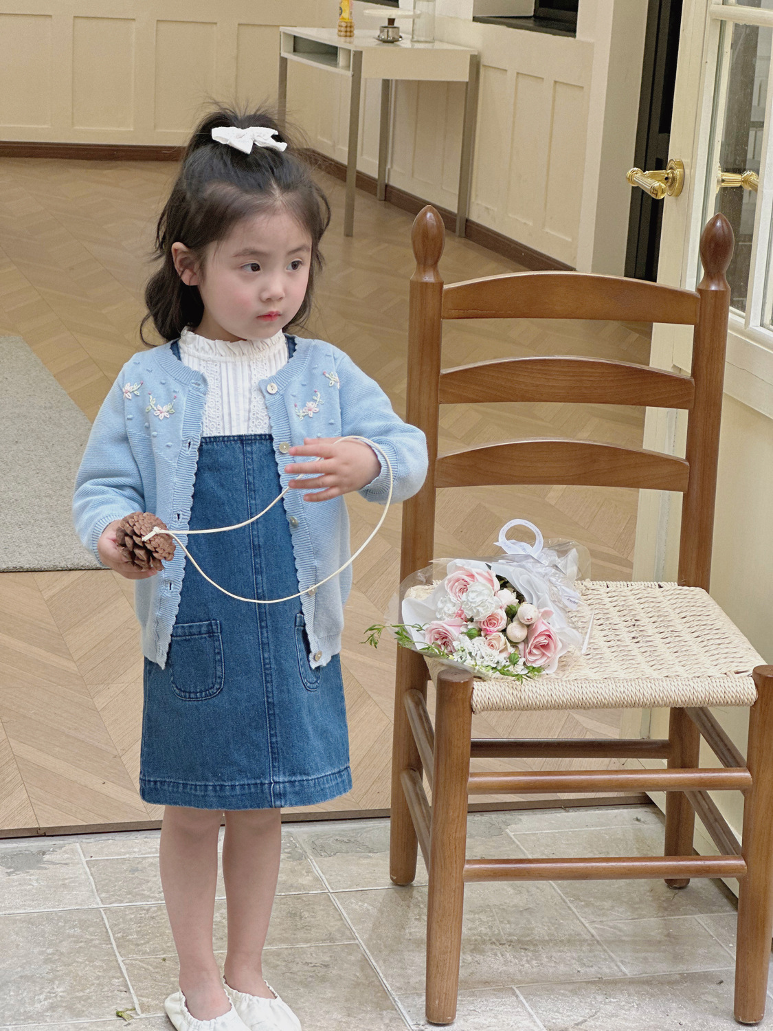 2025 봄, 가을 크로스 보더 소녀 카디건 서양식 코튼 니트 카디건 ins 아기 소녀 코튼 핸드 자수 카디건스토어 가기