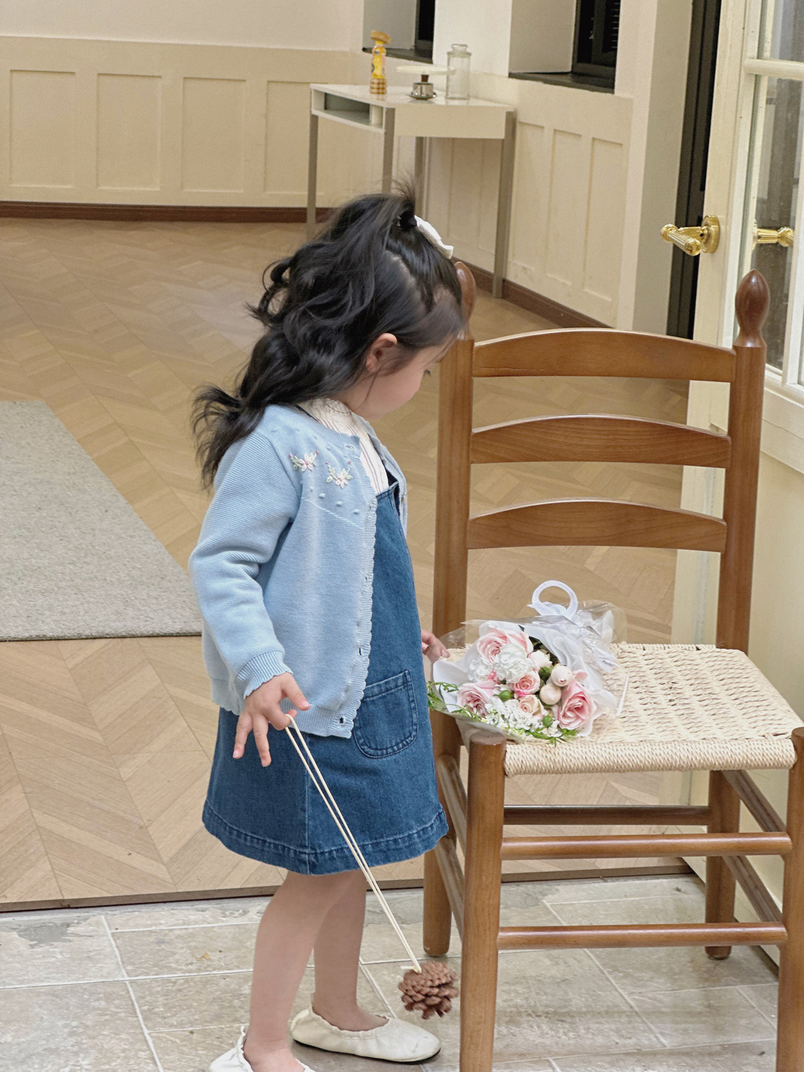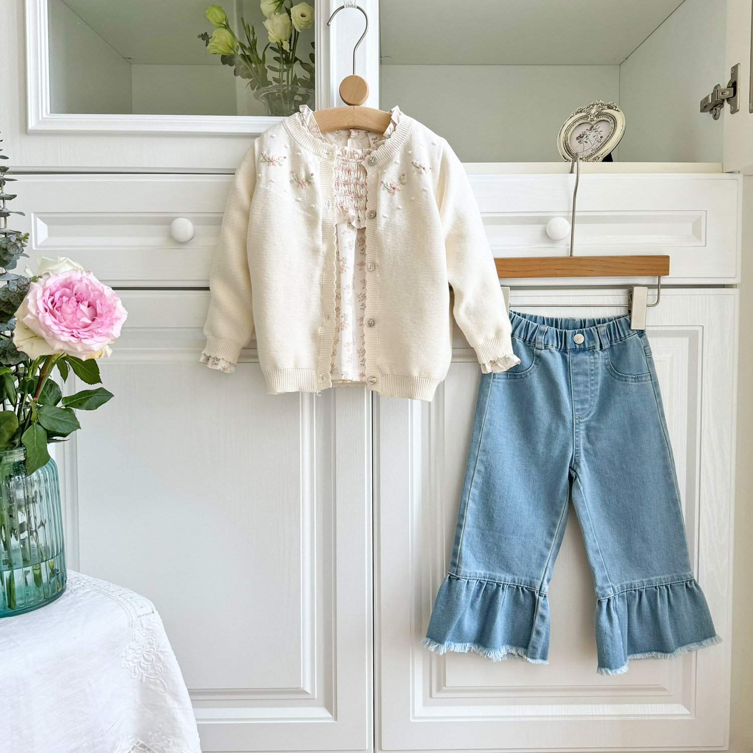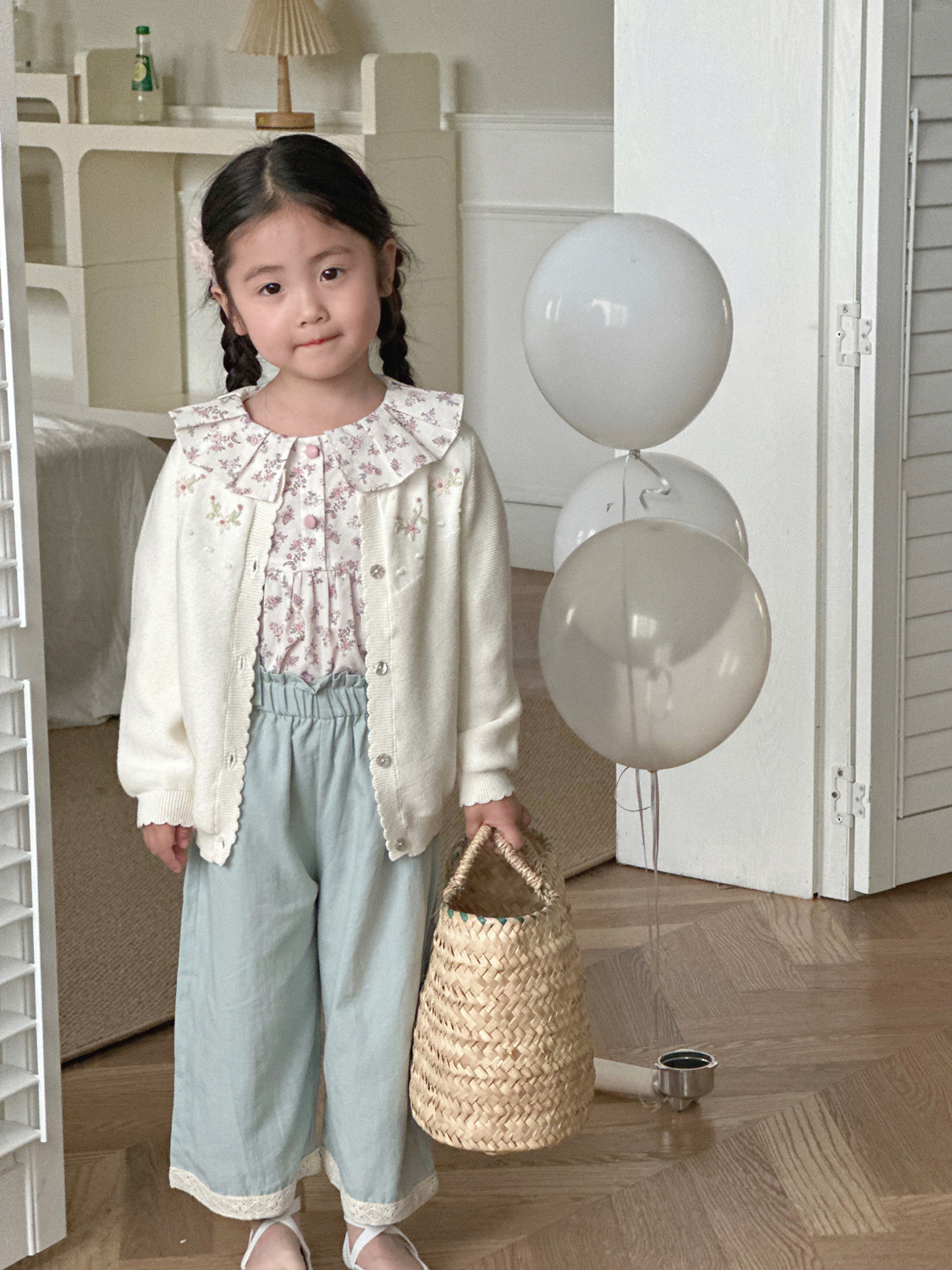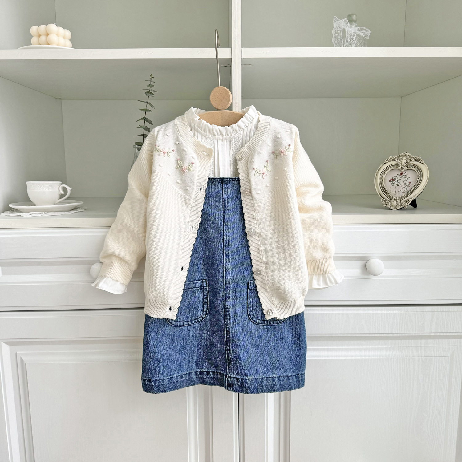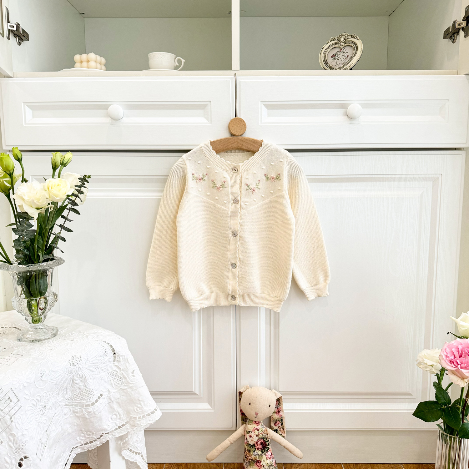 2025 봄, 가을 크로스 보더 소녀 카디건 서양식 코튼 니트 카디건 ins 아기 소녀 코튼 핸드 자수 카디건스토어 가기