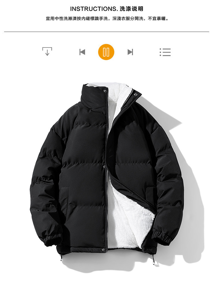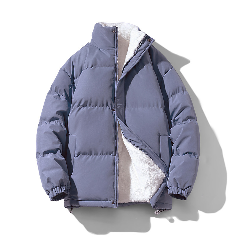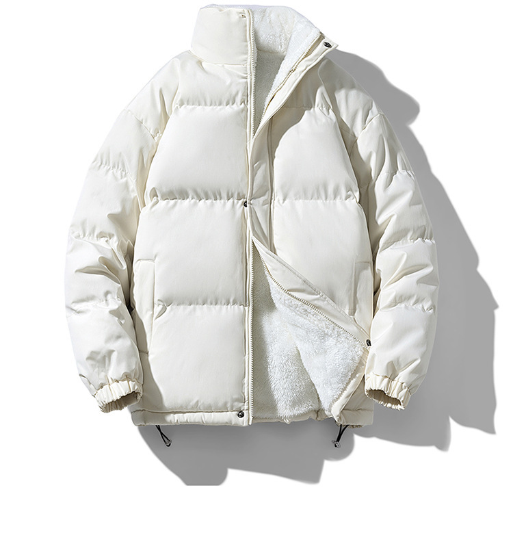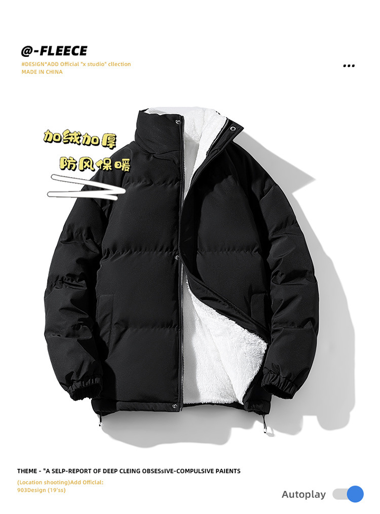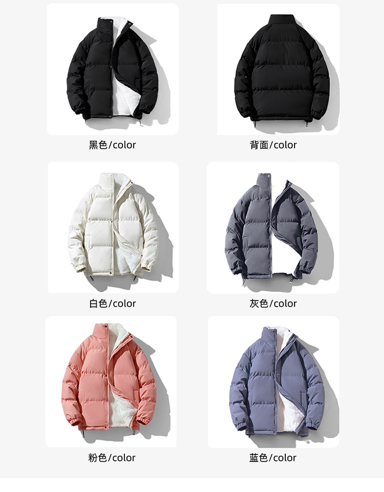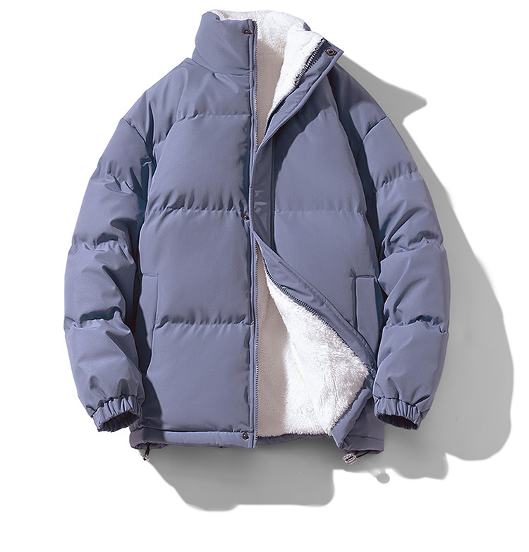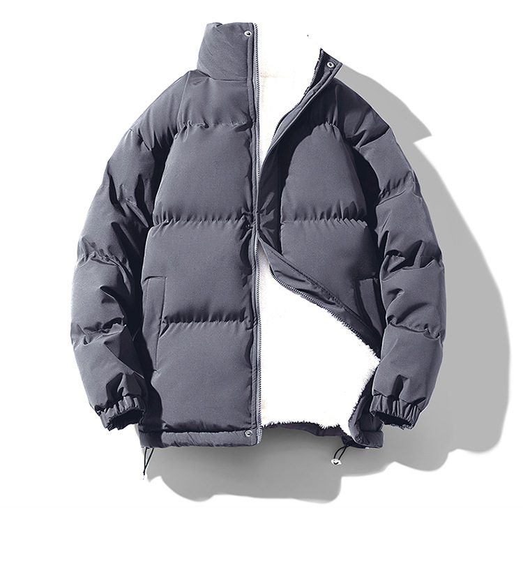 秋冬季新款男士棉服加绒加厚防风保暖纯色潮流青少年面包服男跨境