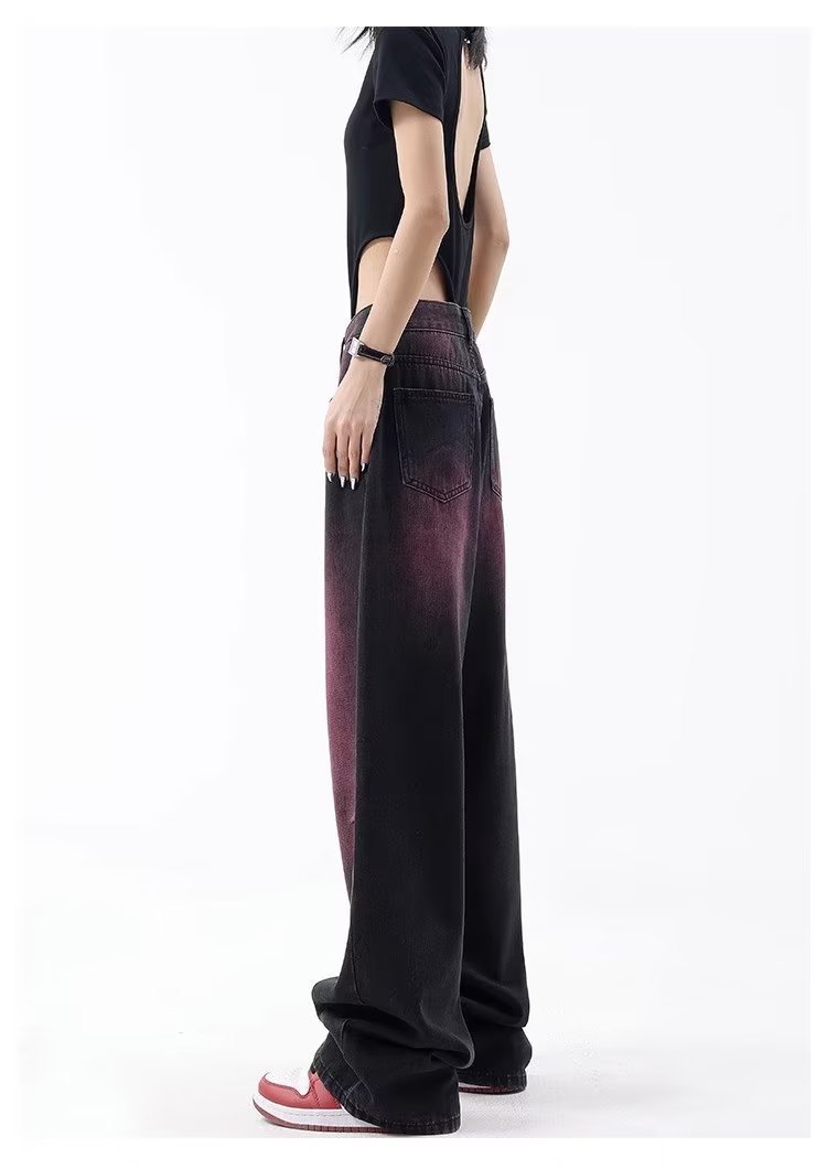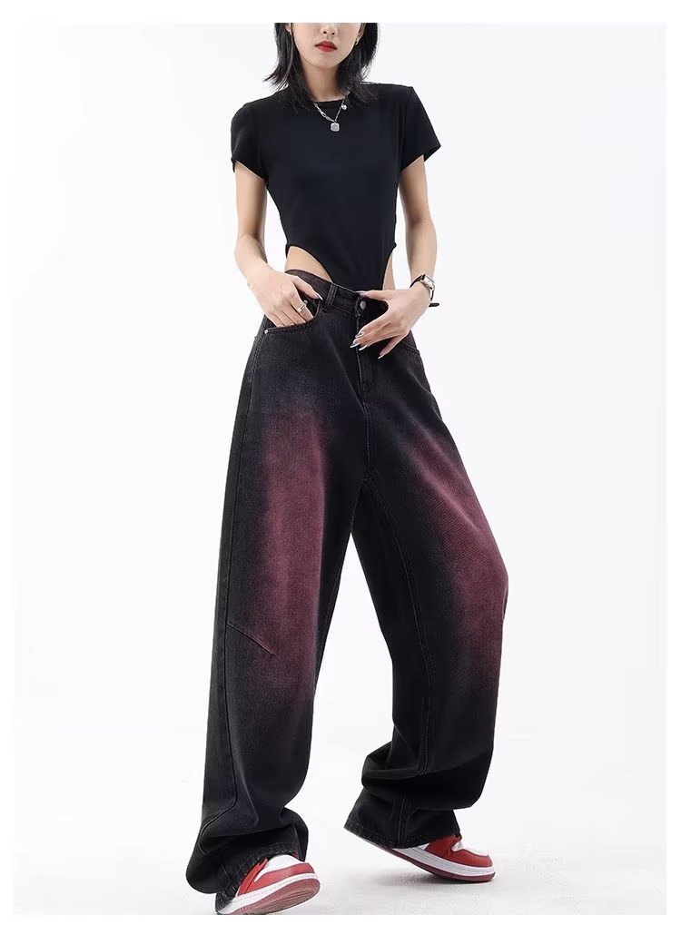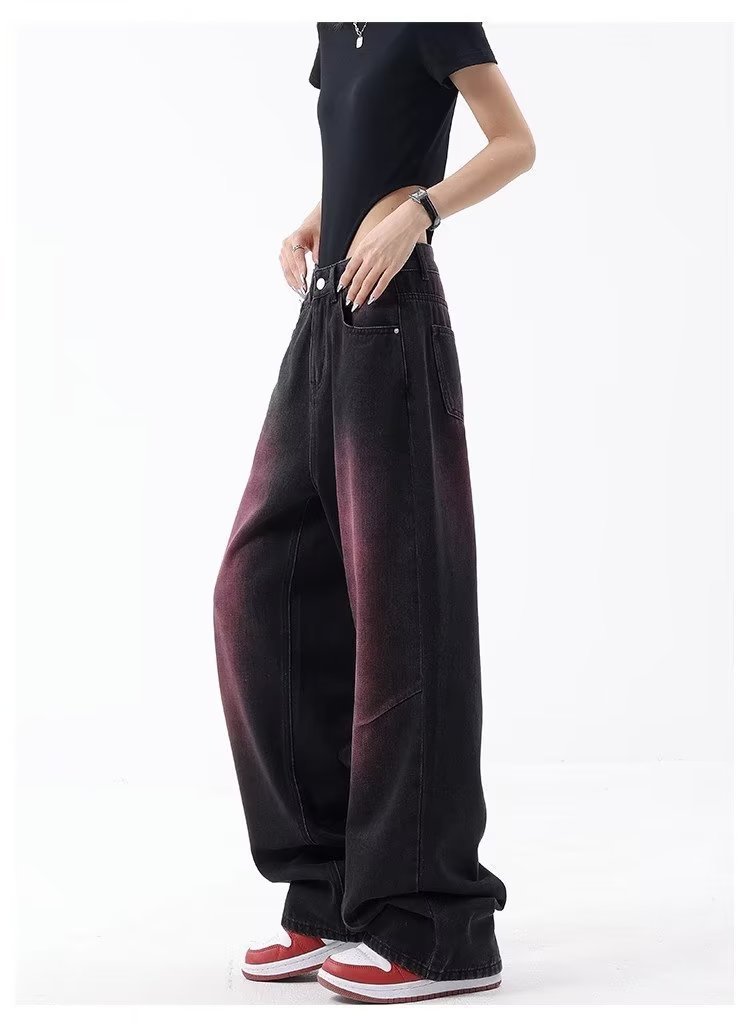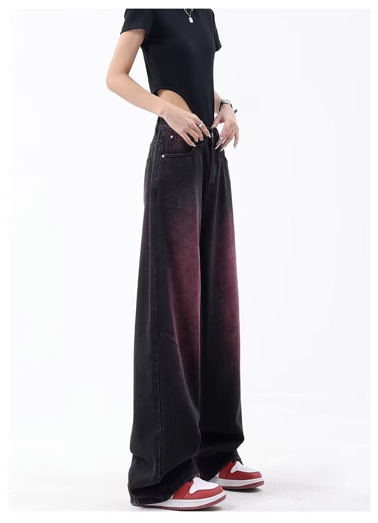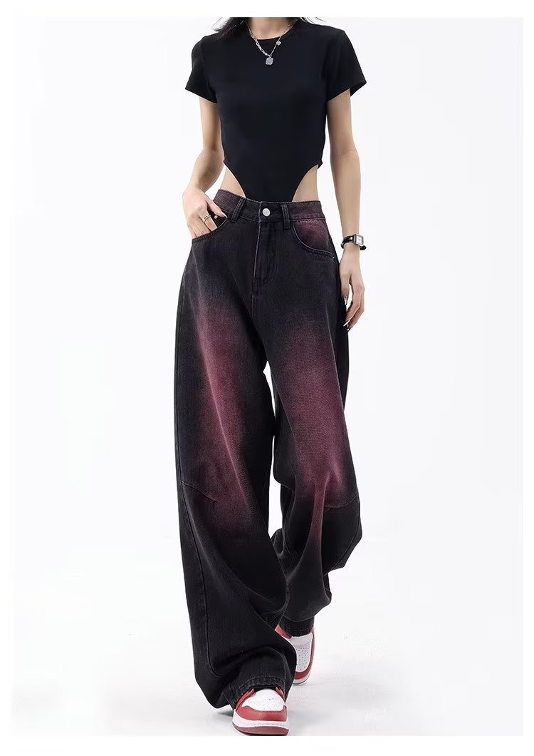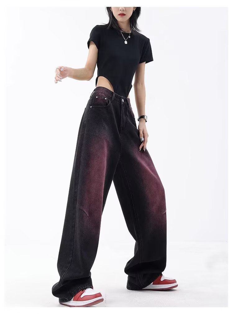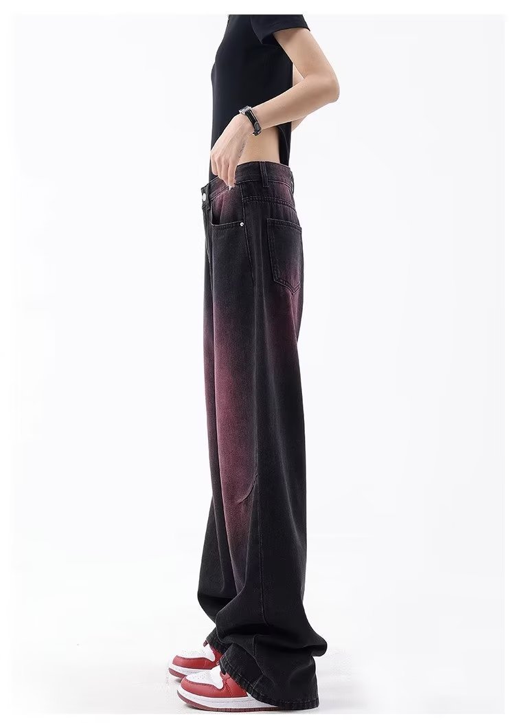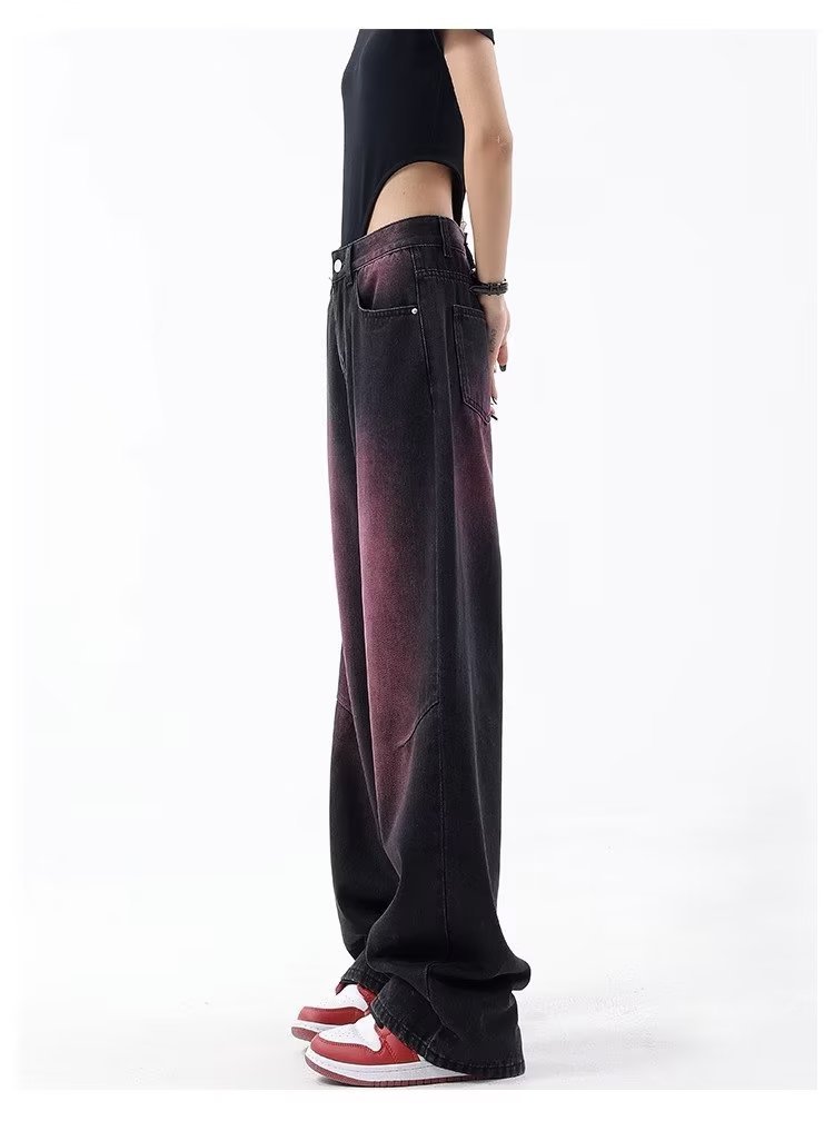 미국 복고풍 봄과 여름 새로운 낙서 씻은 청바지 여성 복고풍 디자인 스트레이트 와이드 다리 바지