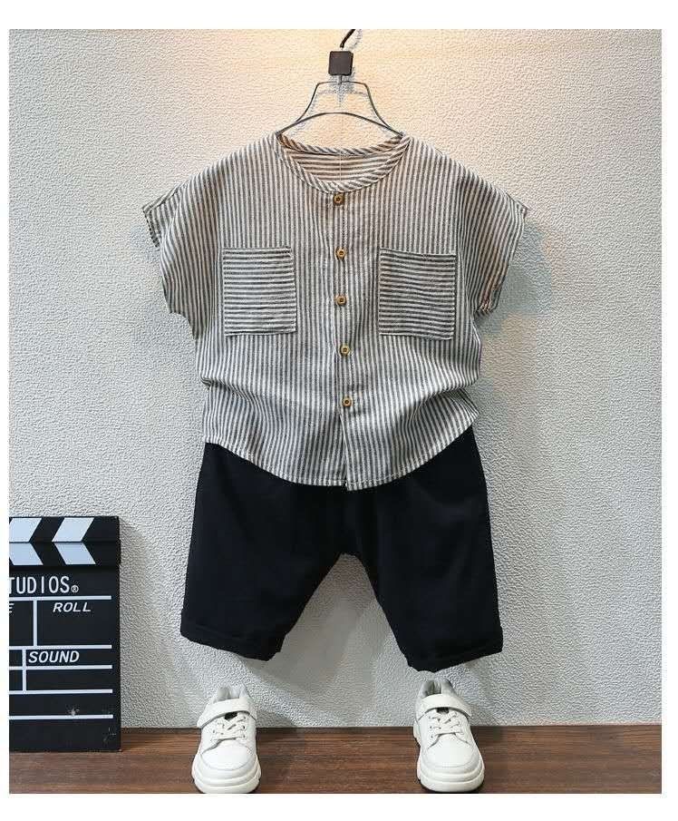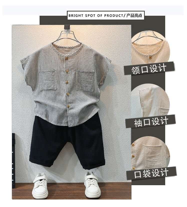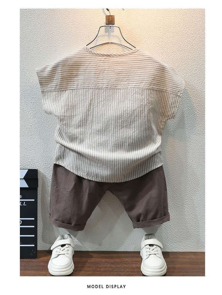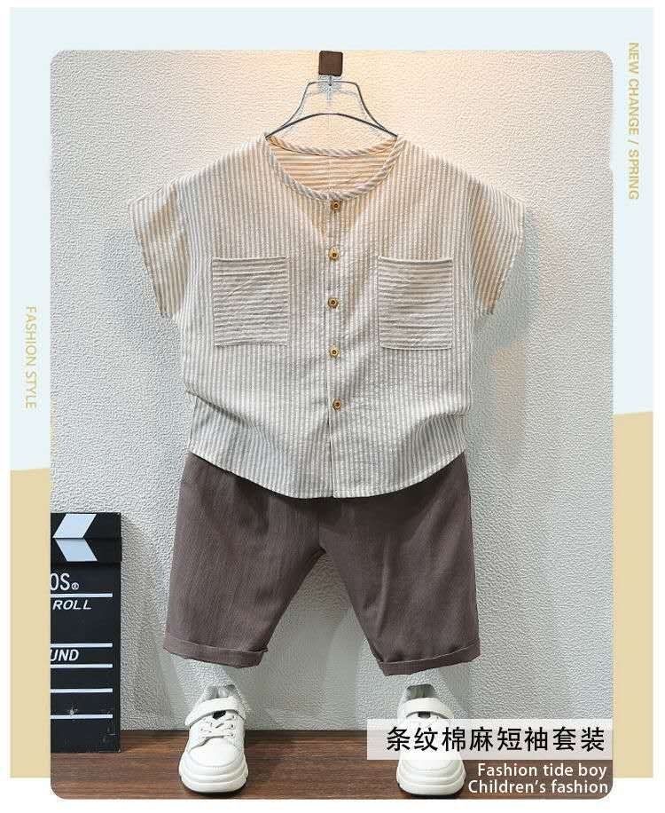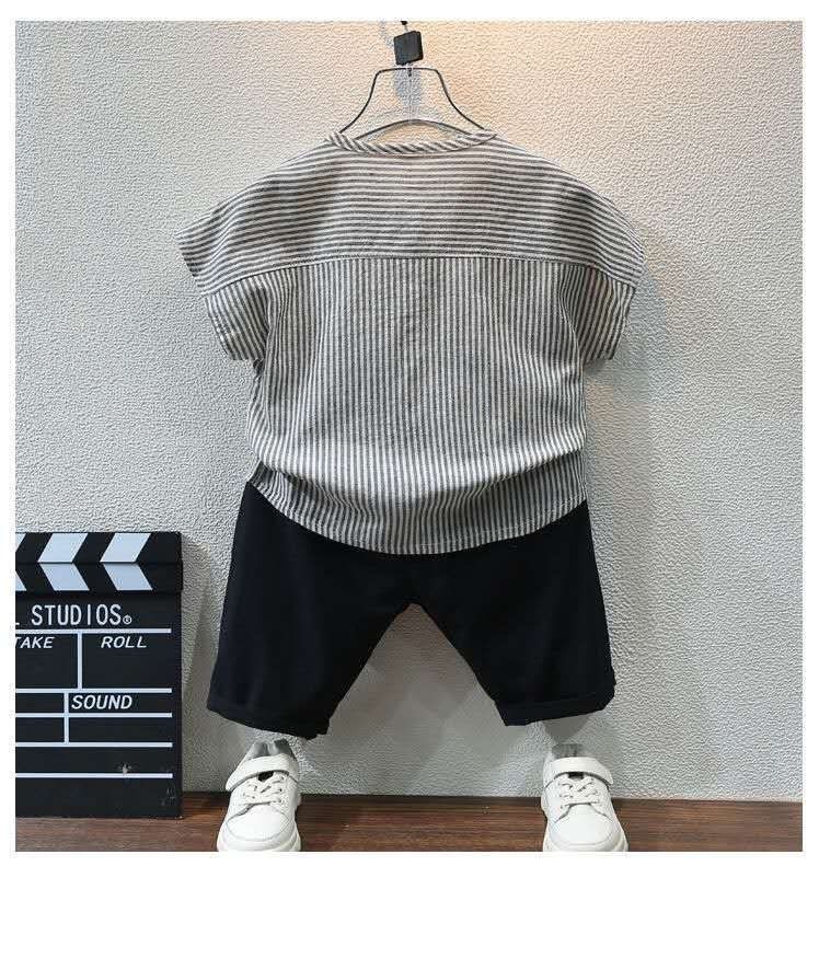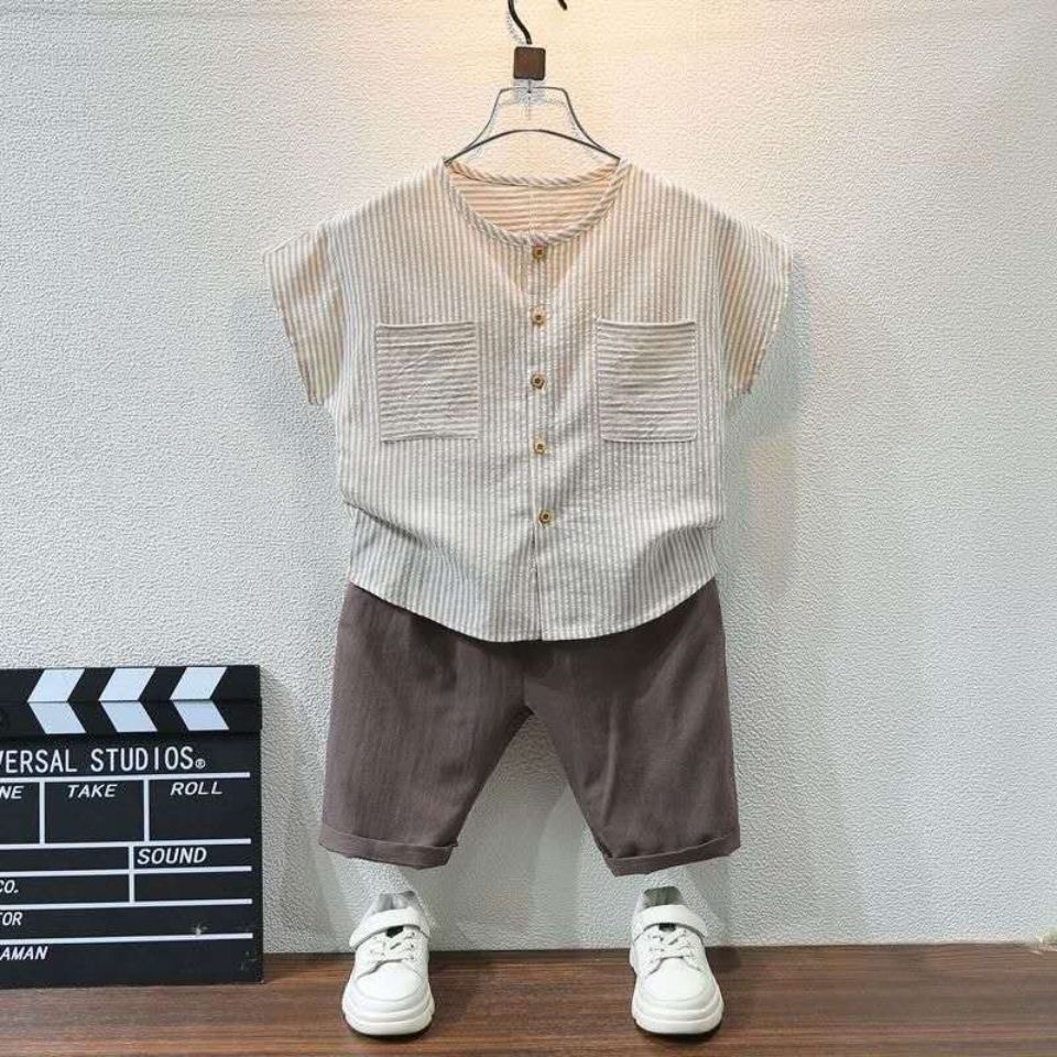 아동복 남아 면마 세트 여름옷 2025 신상 아동 패션 투피스 세트 스트라이프 아기 여름옷 트렌디