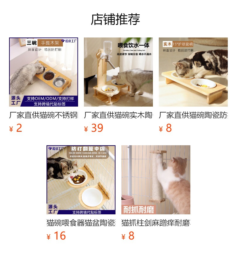 고양이 밥그릇, 고양이 그릇, 세라믹 고양이/강아지 식기, 케이지 내 원목 프레임, 넘어짐 방지, 걸이형 그릇, 예쁜 고양이 그릇스토어 가기
