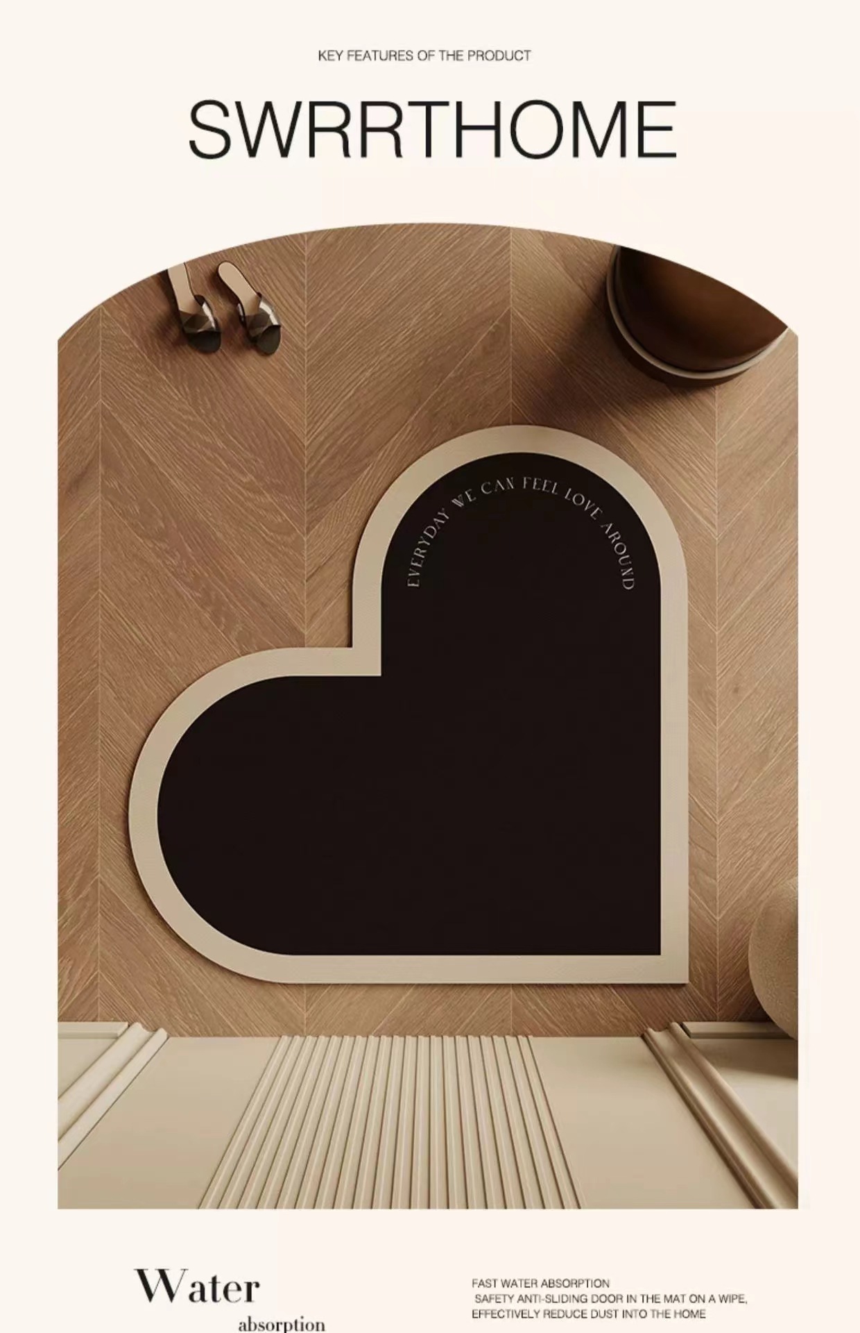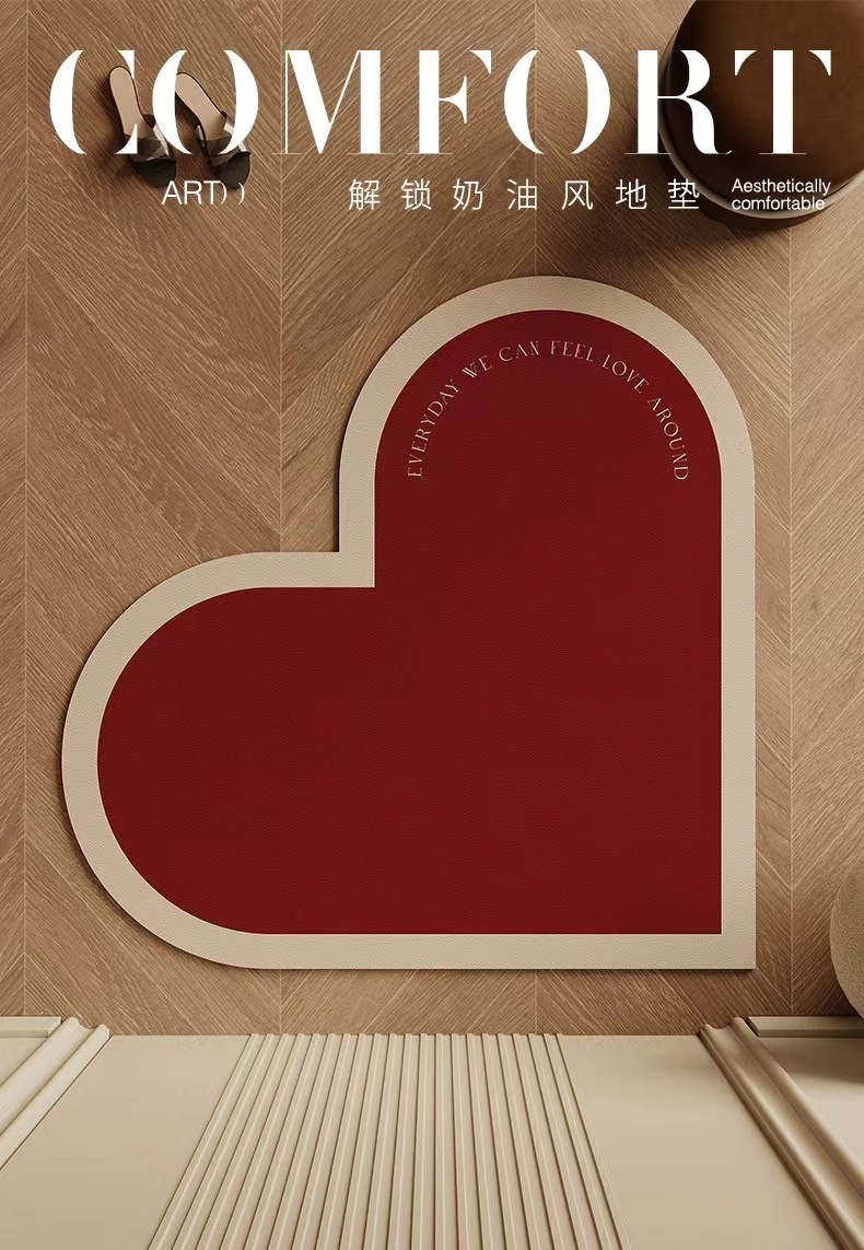 프랑스 스타일의 고급 하트 모양의 주방 바닥 매트 인터넷 유명 인사 특수 모양의 가죽 바닥 매트 웨딩 축제 세탁 무료 입구 바닥 매트스토어 가기