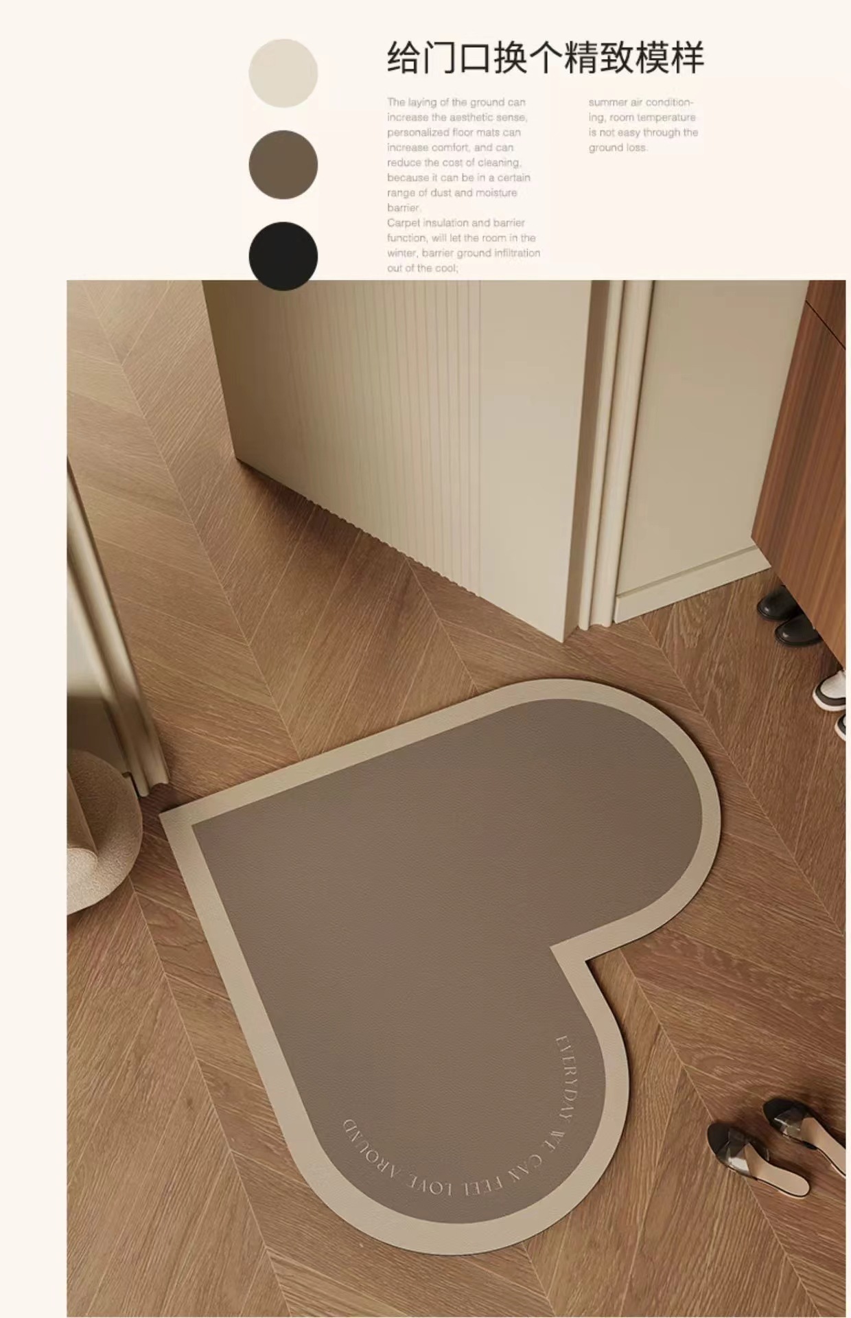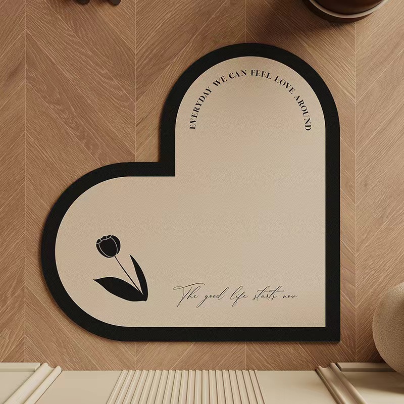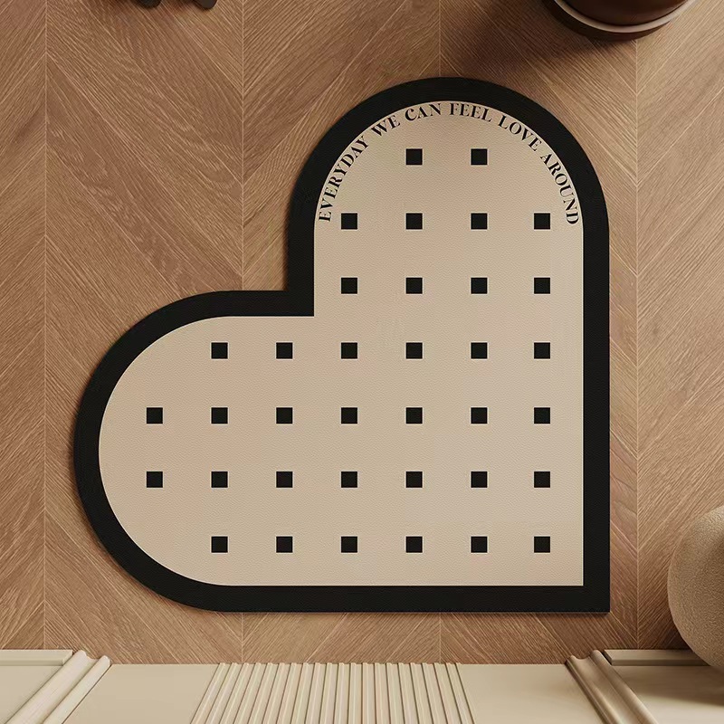 프랑스 스타일의 고급 하트 모양의 주방 바닥 매트 인터넷 유명 인사 특수 모양의 가죽 바닥 매트 웨딩 축제 세탁 무료 입구 바닥 매트