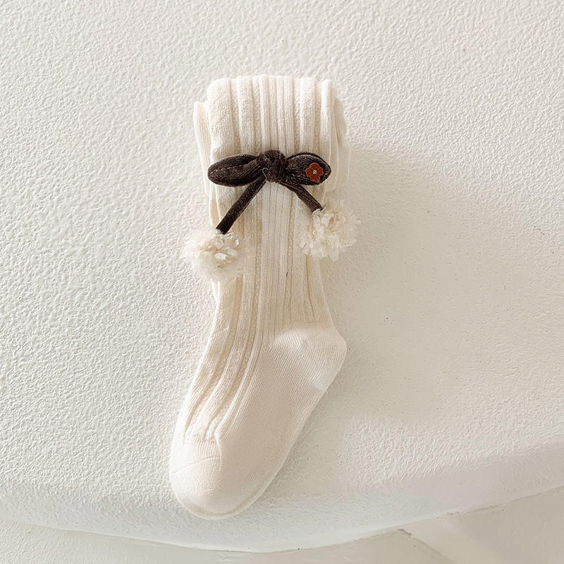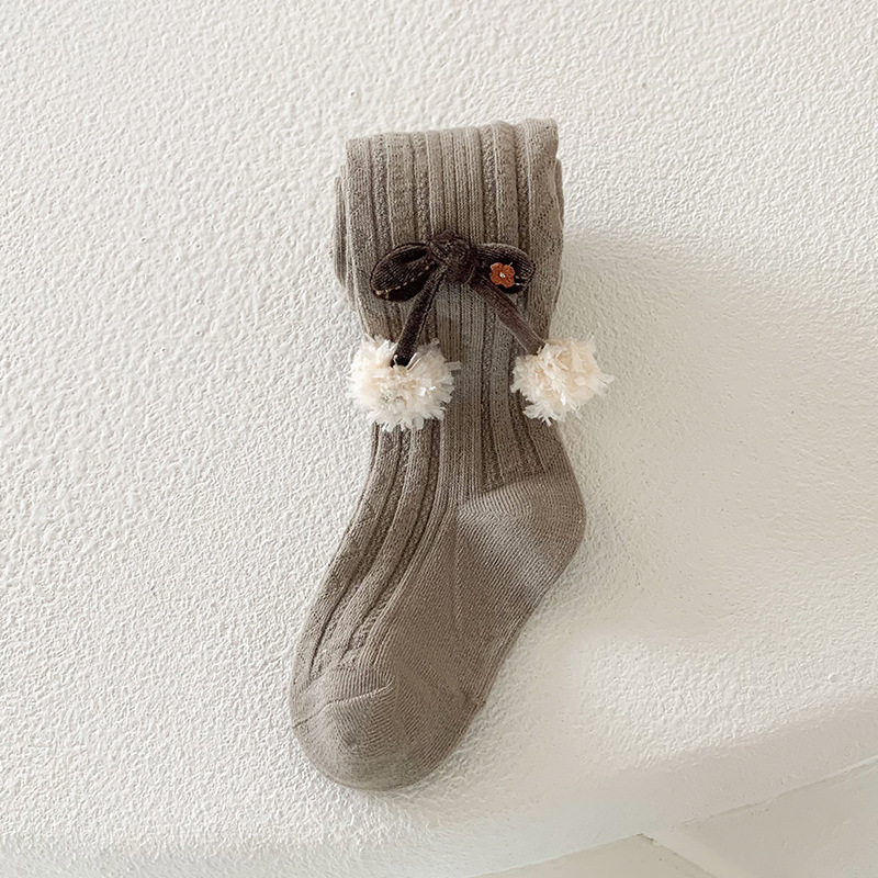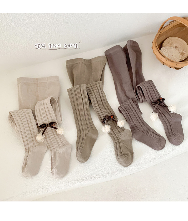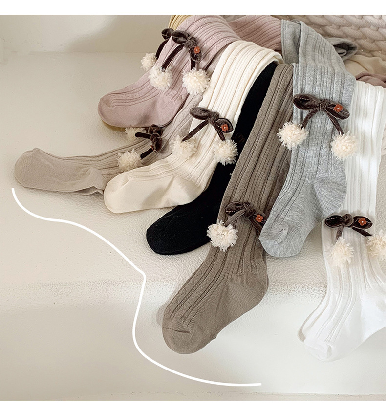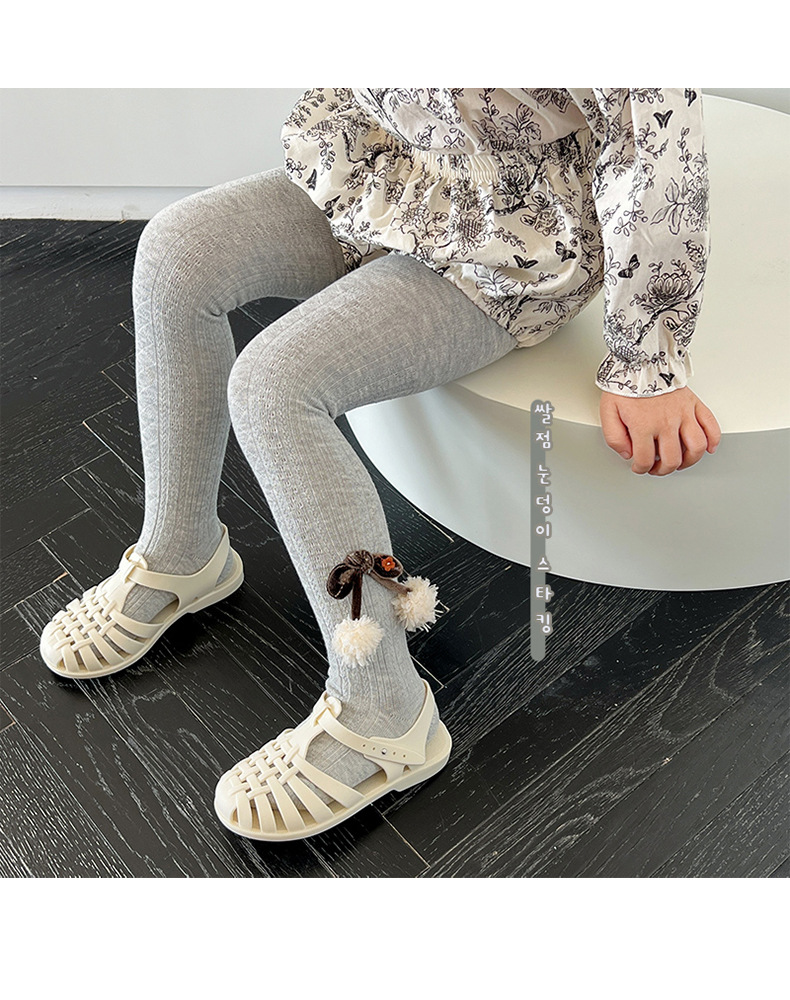 봄 2024 새로운 베이지 색 눈덩이 활 어린이 팬티 스타킹 이중 목적 소녀의 겉옷 레깅스