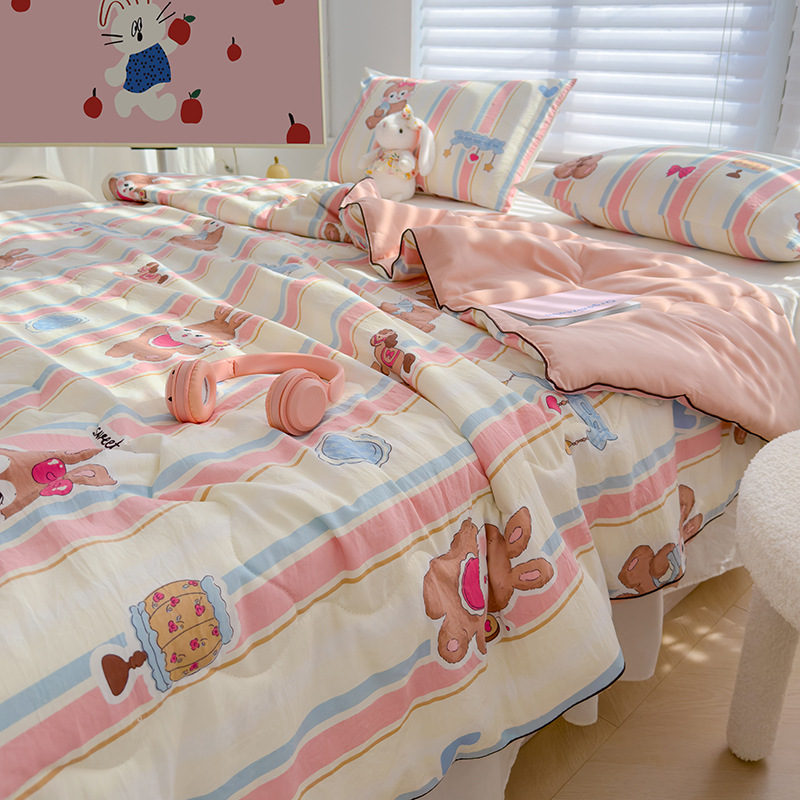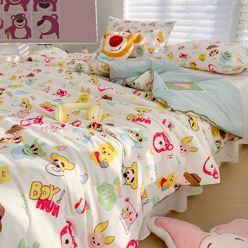 핫 셀러 클래스 A 더블 레이어 원사 여름 퀼트 도매 피부 친화적 인 콩 섬유 여름 시원한 이불 모성 및 어린이 등급 에어컨 이불 선물 이불
