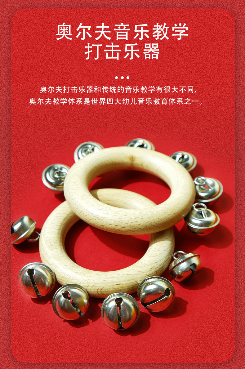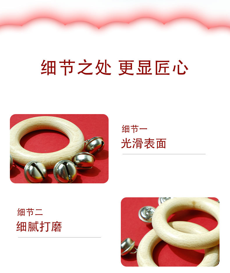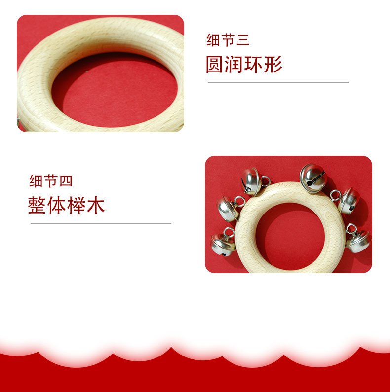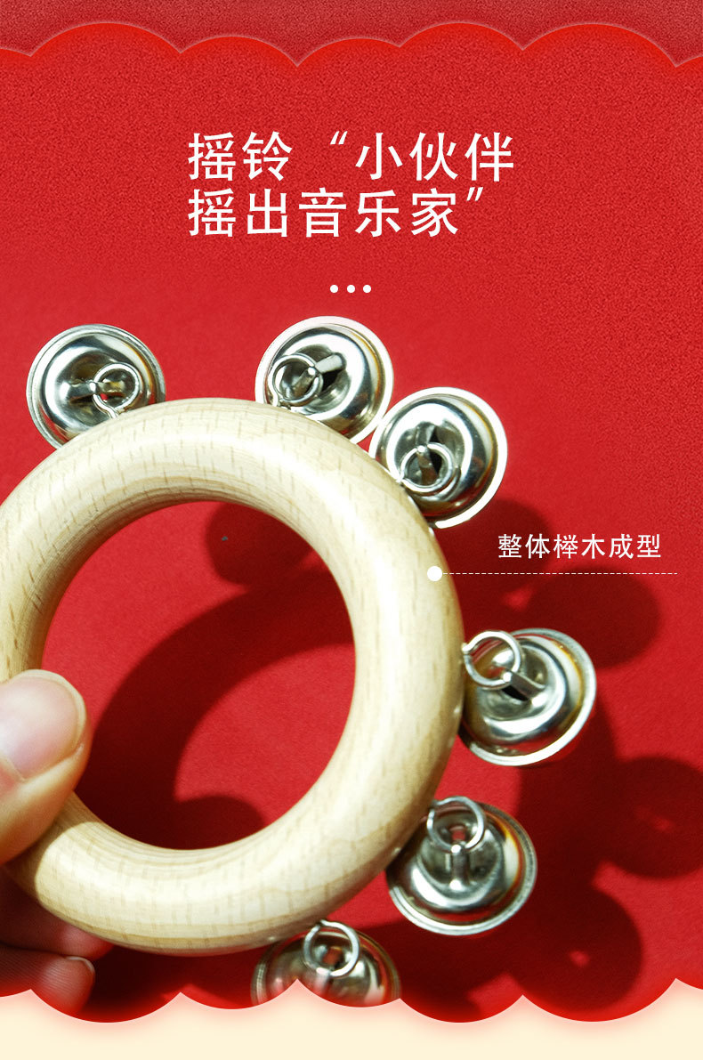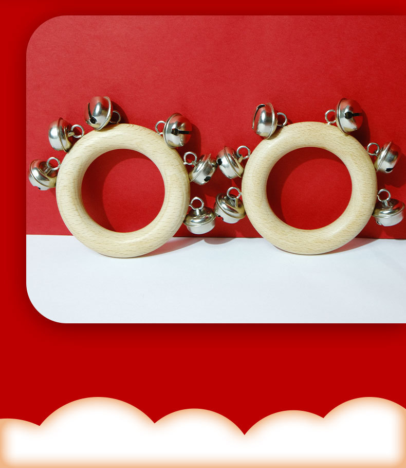 Bebeimiao Beech 라운드 딸랑이 벨 링 벨 스트링 벨 음악 교육 보조 유치원 손 벨 조기 교육 진정 악기스토어 가기