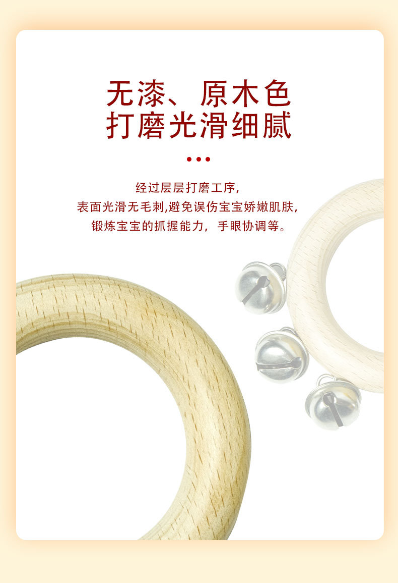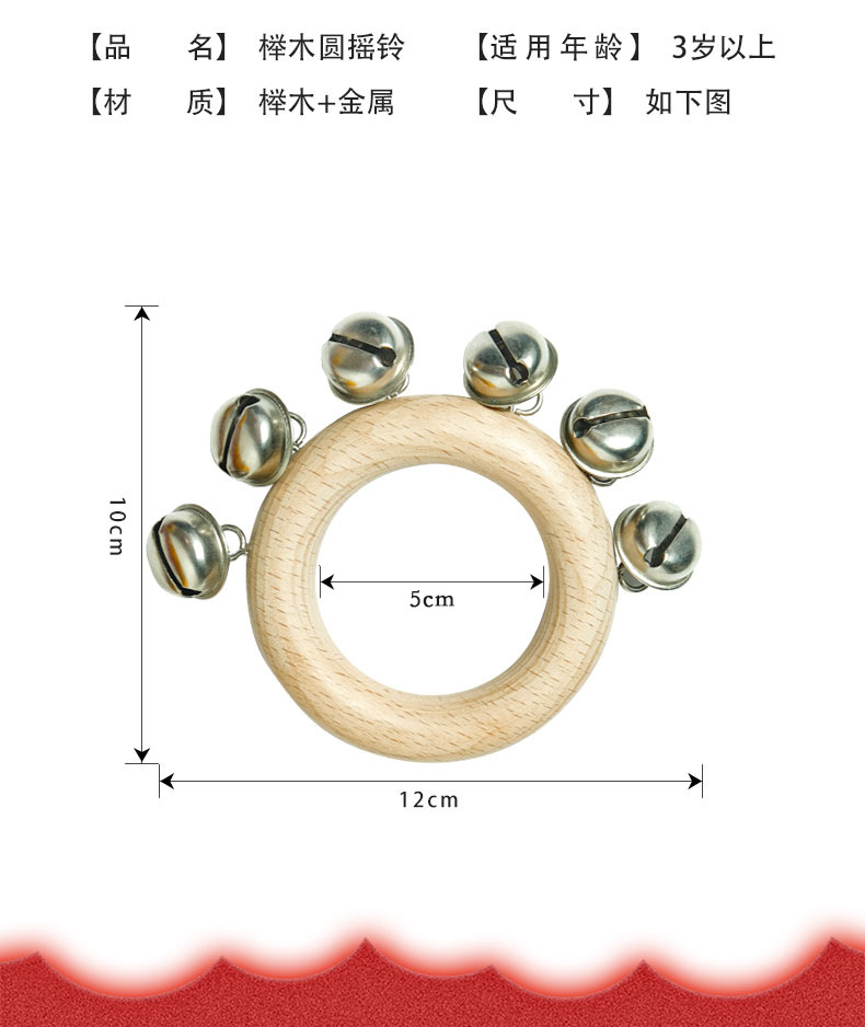 Bebeimiao Beech 라운드 딸랑이 벨 링 벨 스트링 벨 음악 교육 보조 유치원 손 벨 조기 교육 진정 악기