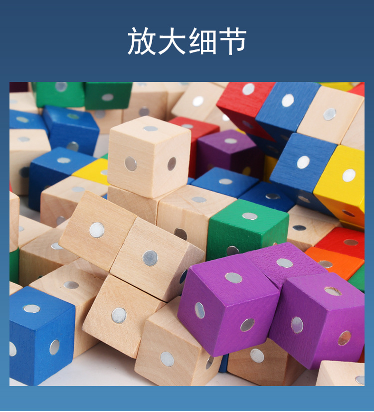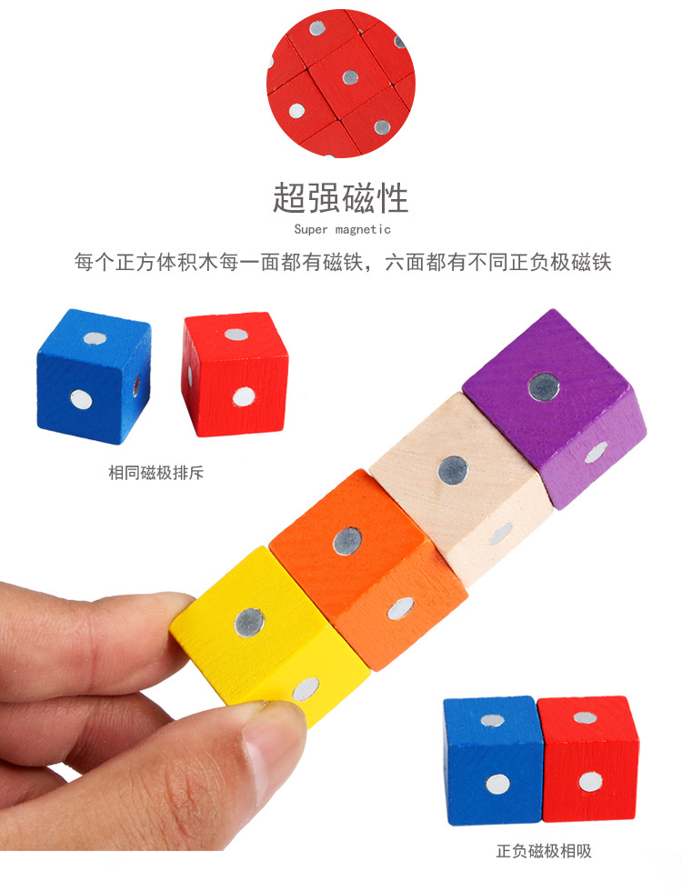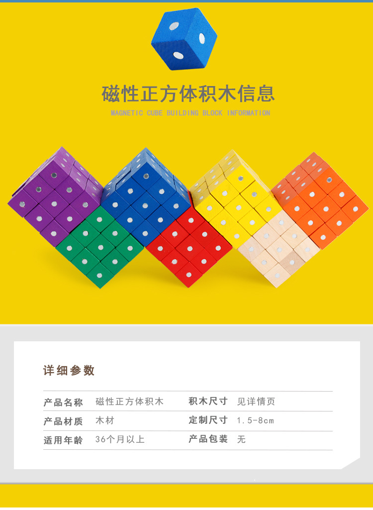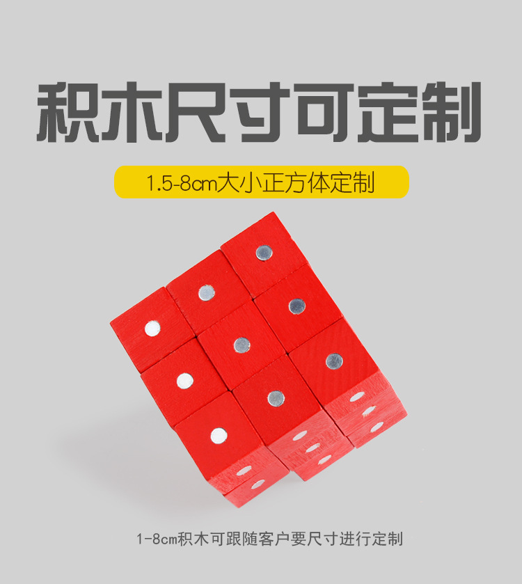 磁性正方体六面带磁性,尺寸:2*2*2cm,有彩色和原木色可以挑选,彩色分为:红黄蓝绿紫橙6个颜色。需要其他尺寸和规格联系客服详谈。