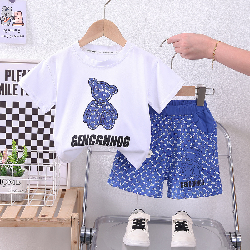 • 블루 베어-짧은 소매-투피스 세트