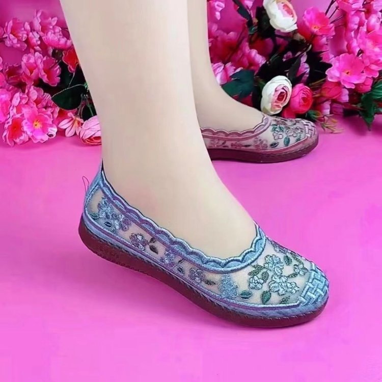 여름 통기성 오래된 베이징 천 신발 메쉬 캐주얼 신발 미끄럼 방지 꽃 속이 빈 평면 중년 및 노인 어머니 부드러운 밑창 신발스토어 가기