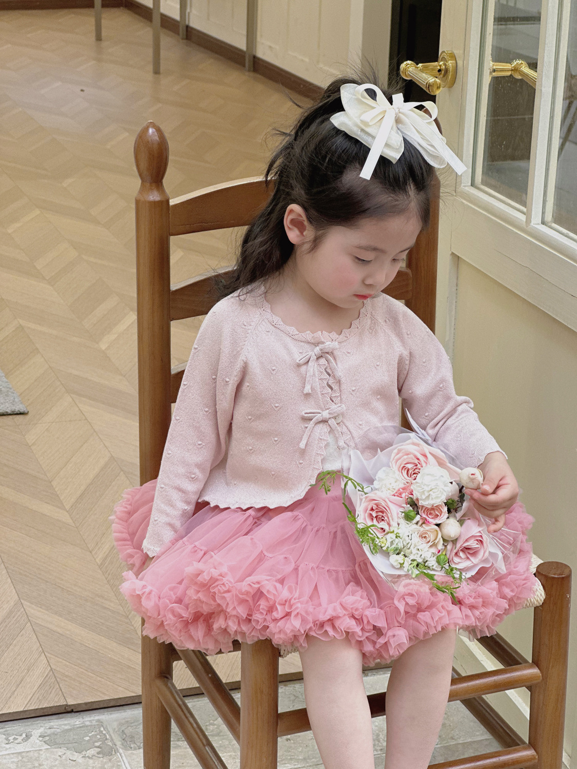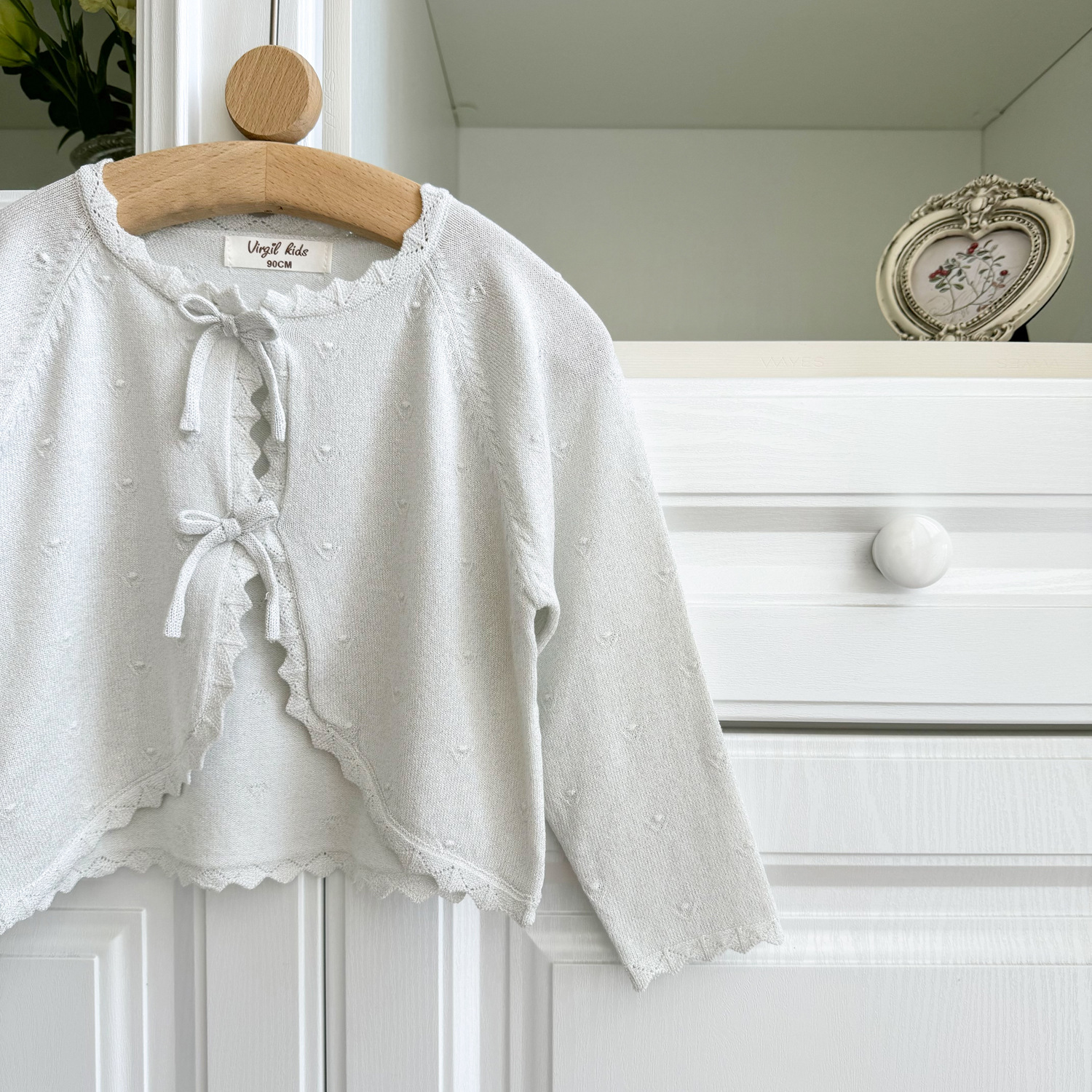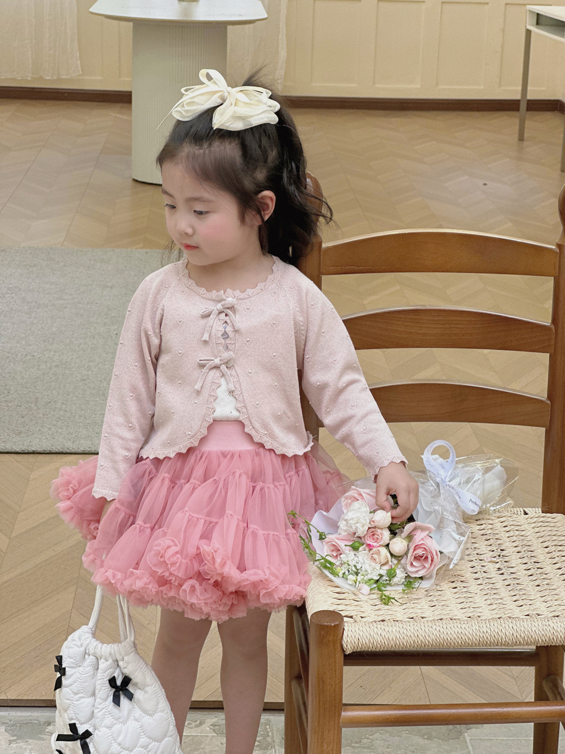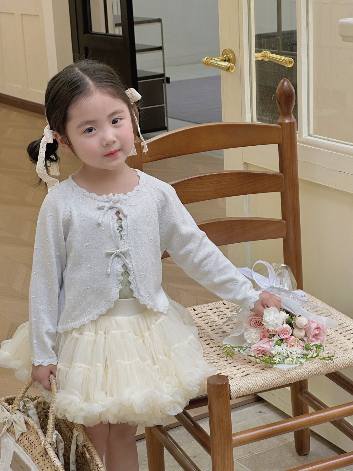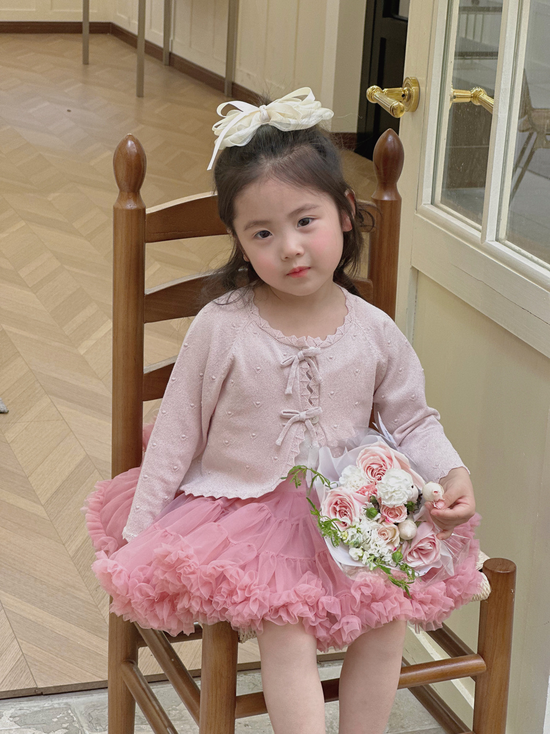 2025 봄 여름 여아 니트 숄 짧은 얇은 실 가디건 수제 귀여운 나비 매듭 은실 니트 에어컨 스웨터스토어 가기