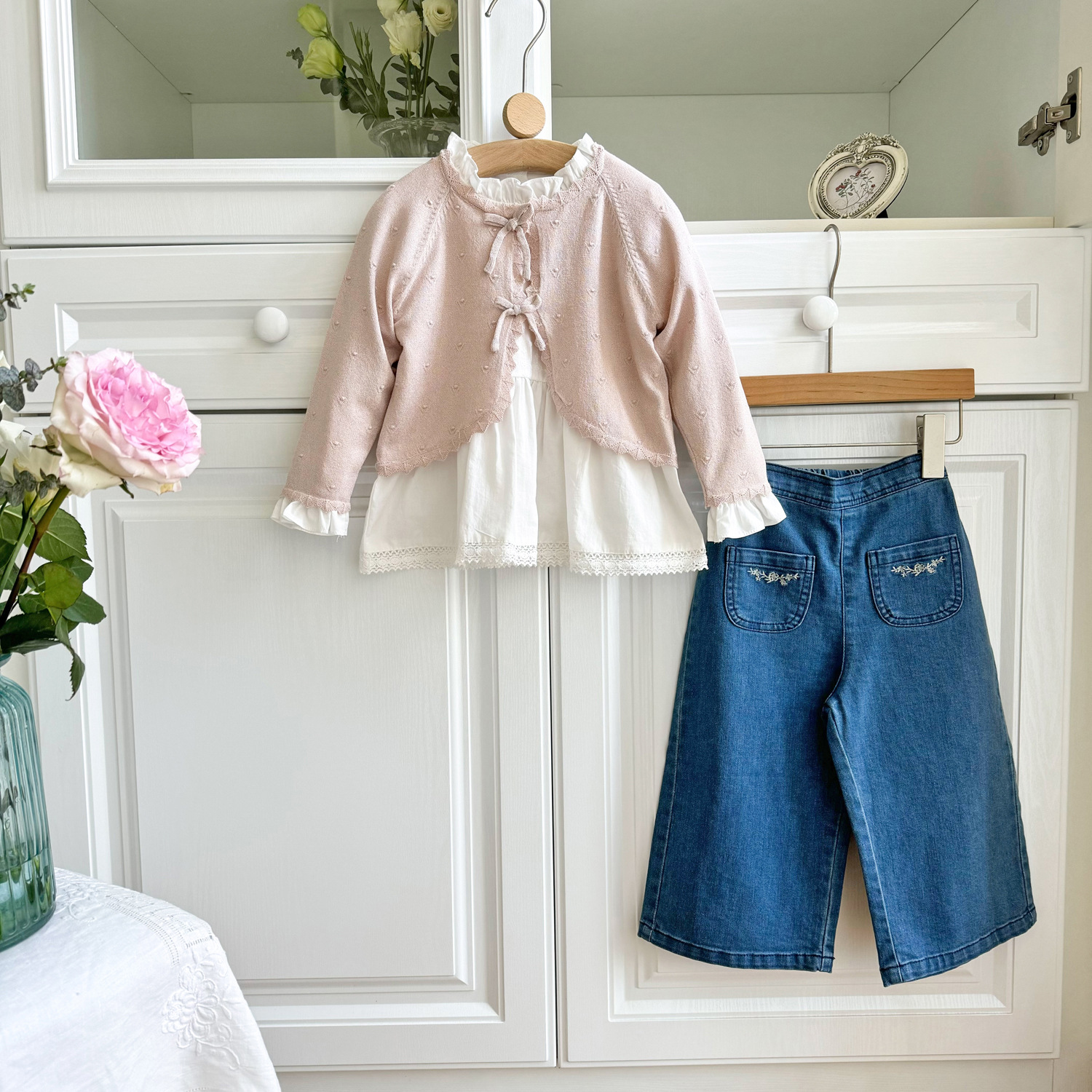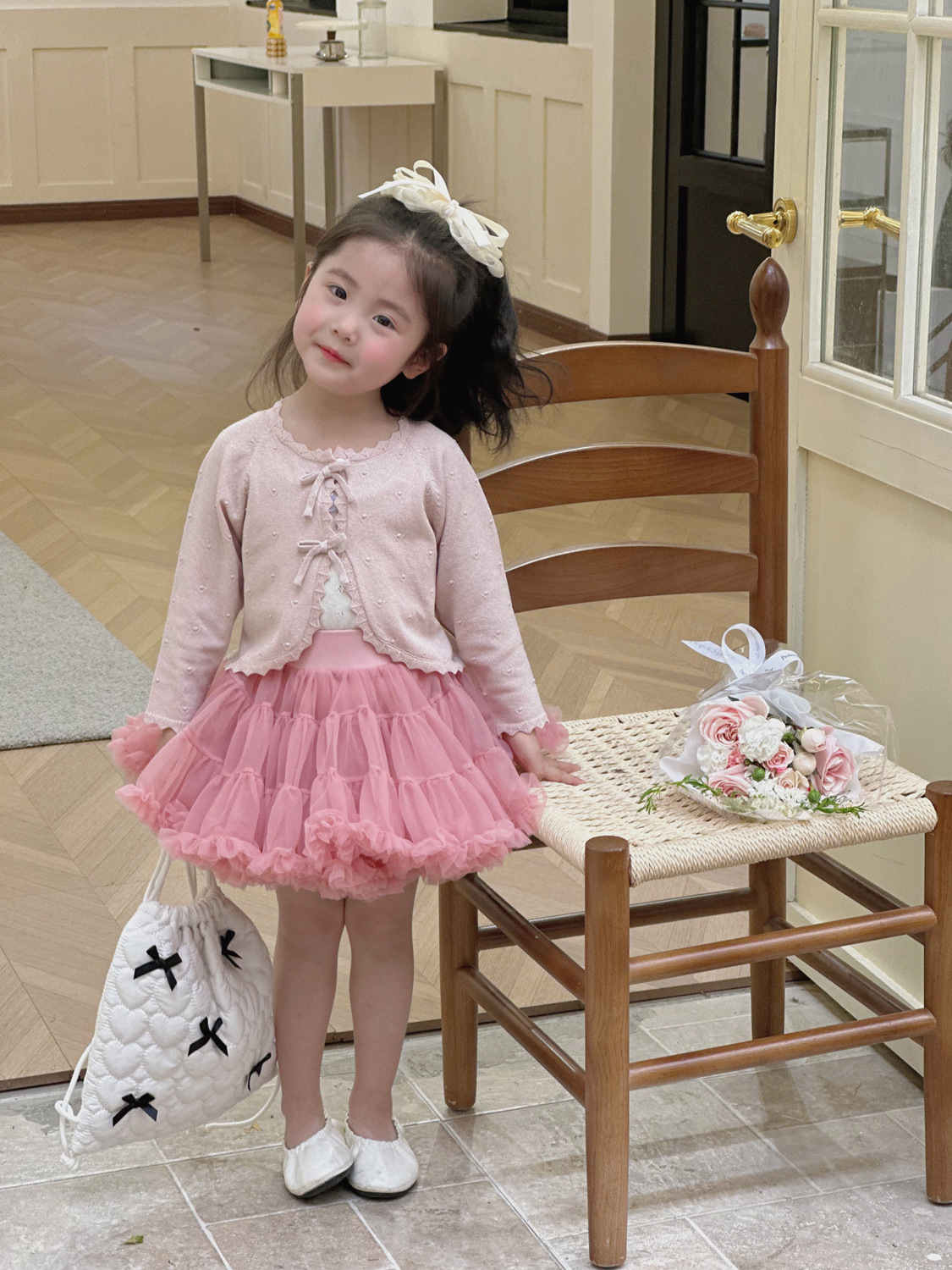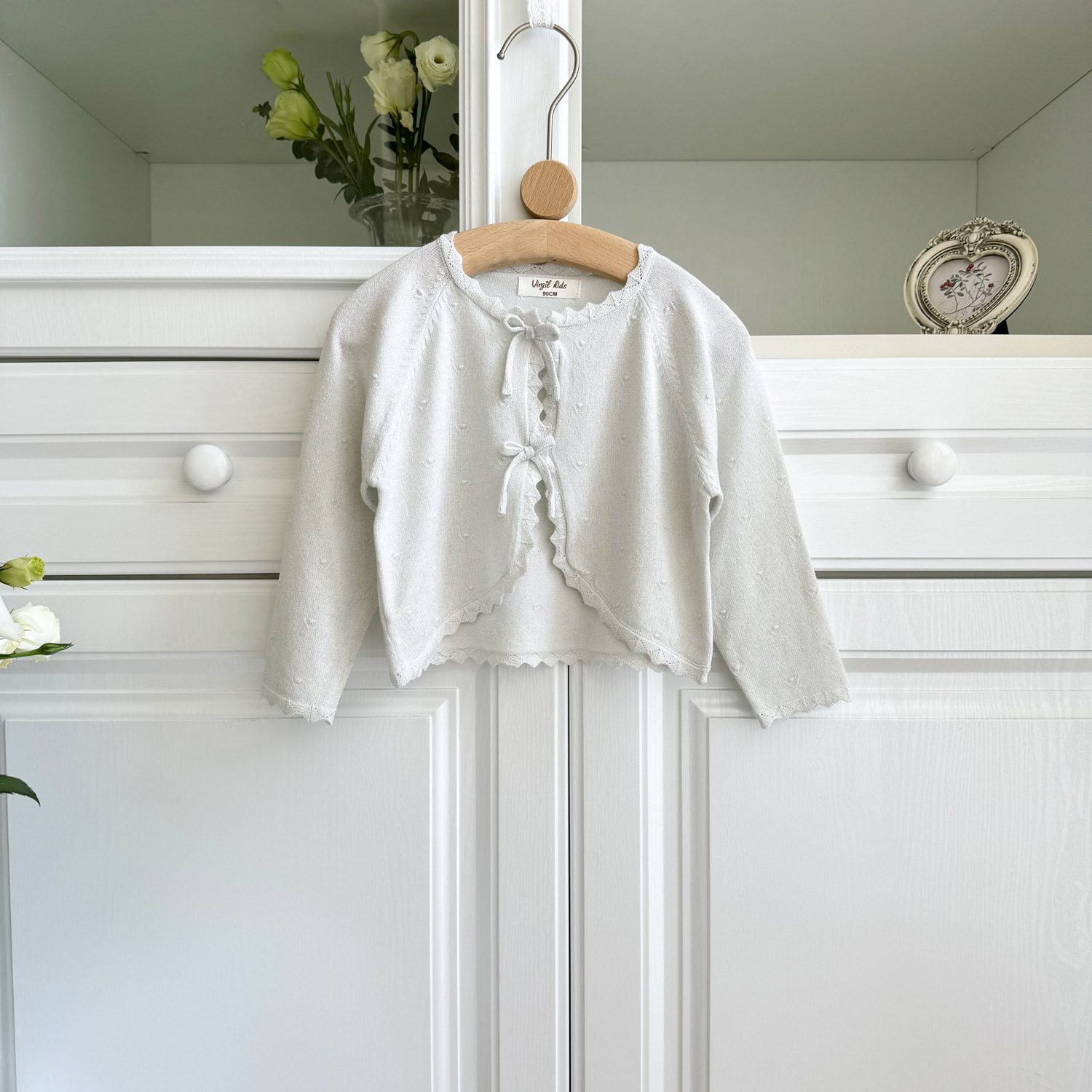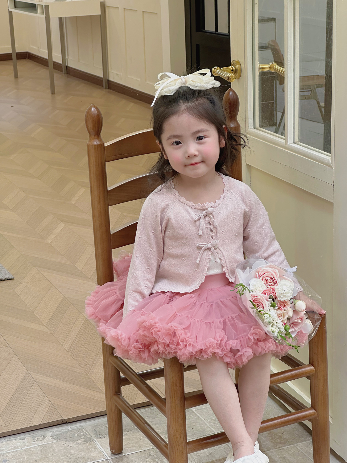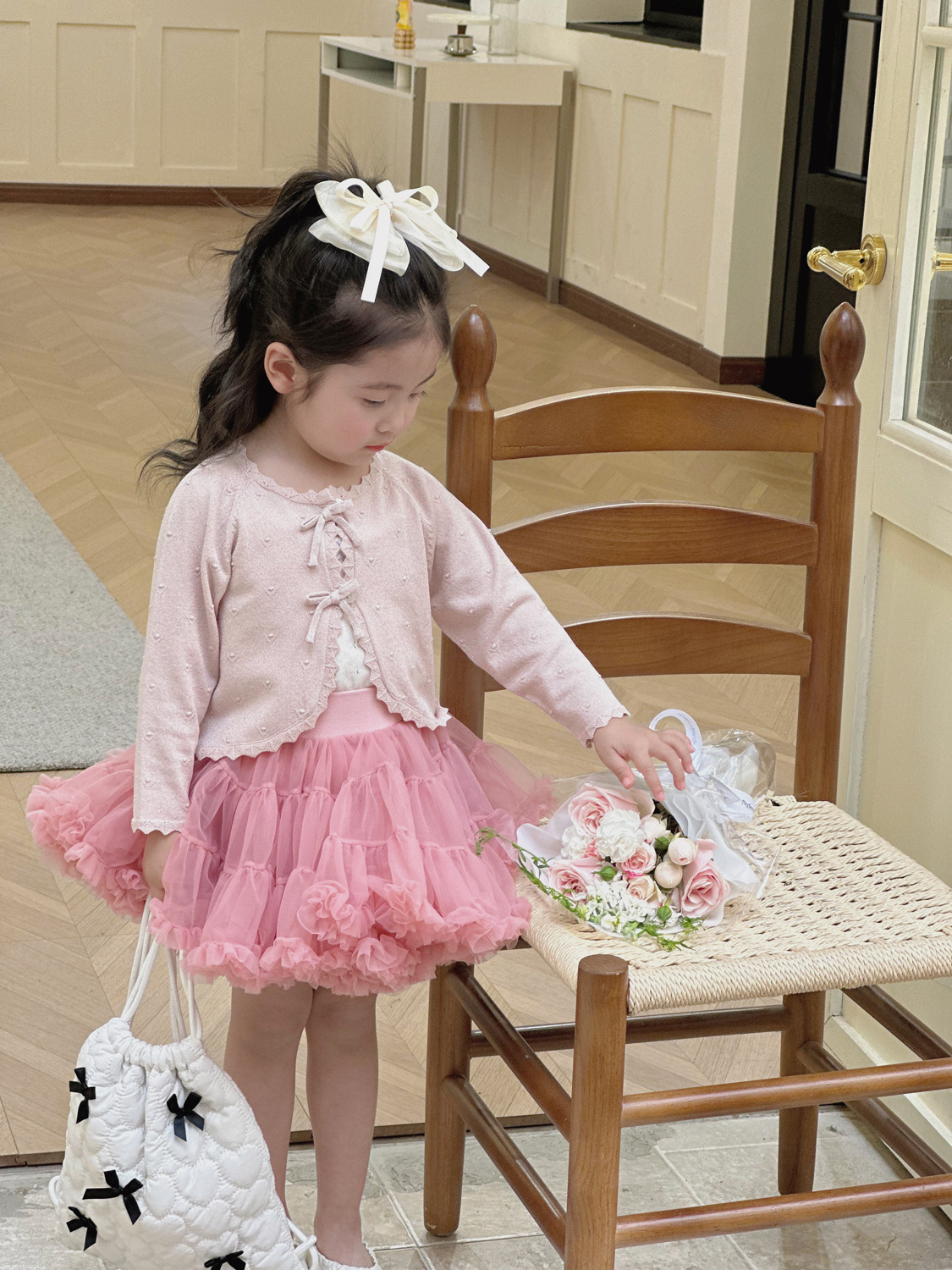 2025 봄 여름 여아 니트 숄 짧은 얇은 실 가디건 수제 귀여운 나비 매듭 은실 니트 에어컨 스웨터스토어 가기