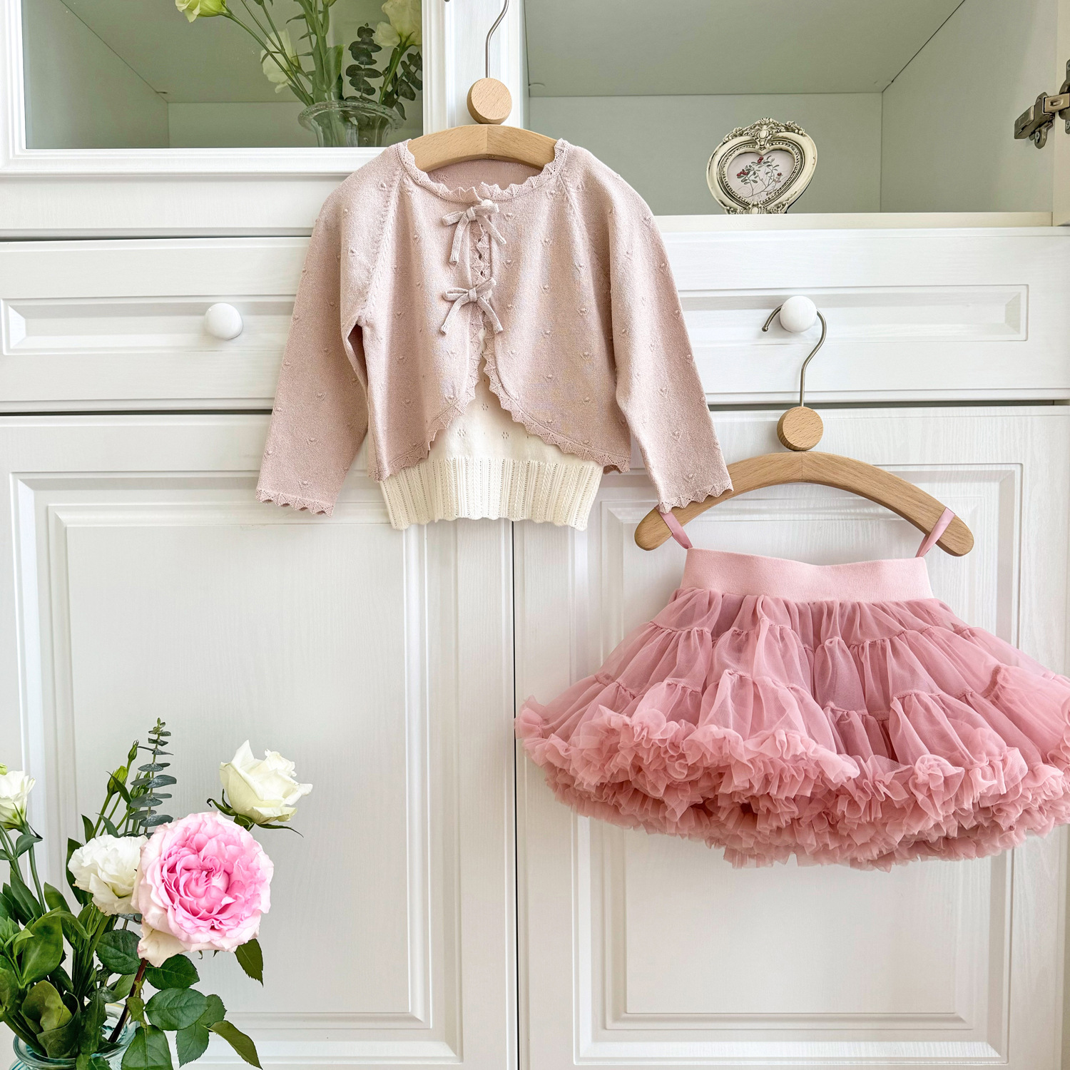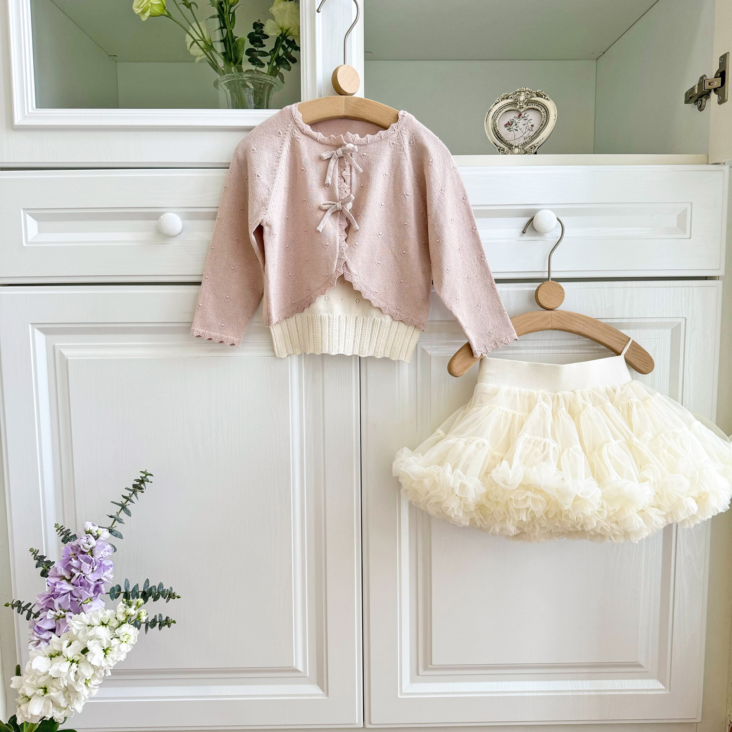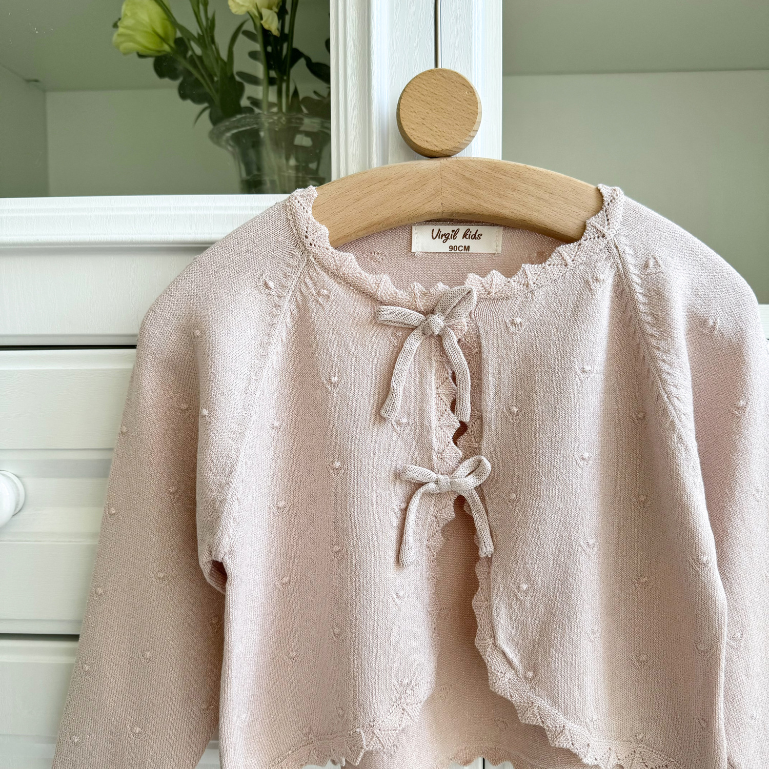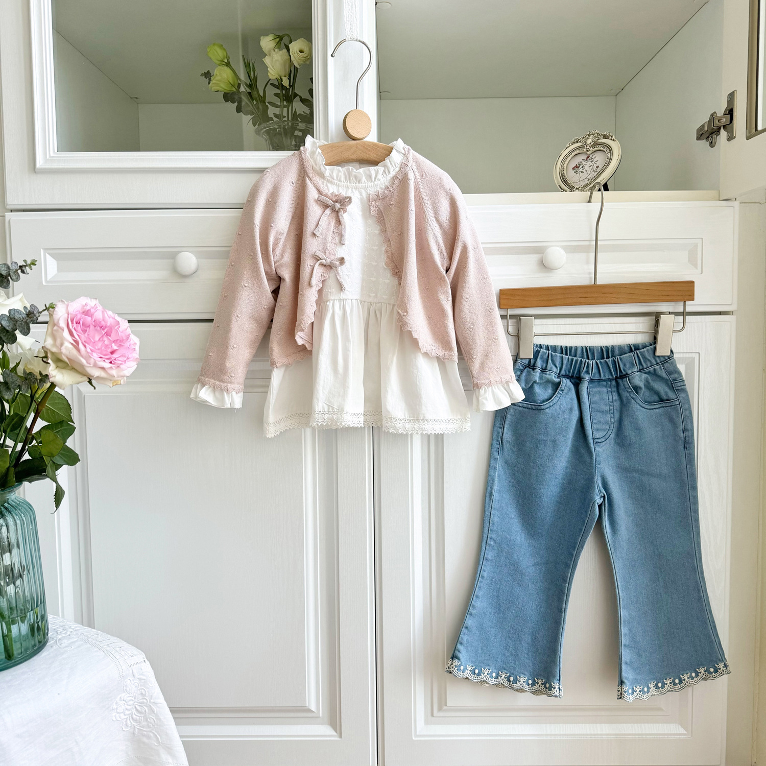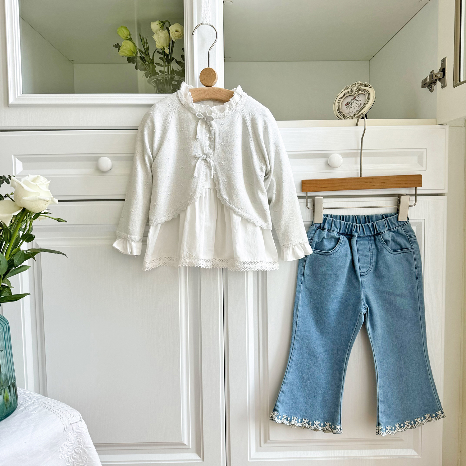 2025 봄 여름 여아 니트 숄 짧은 얇은 실 가디건 수제 귀여운 나비 매듭 은실 니트 에어컨 스웨터스토어 가기