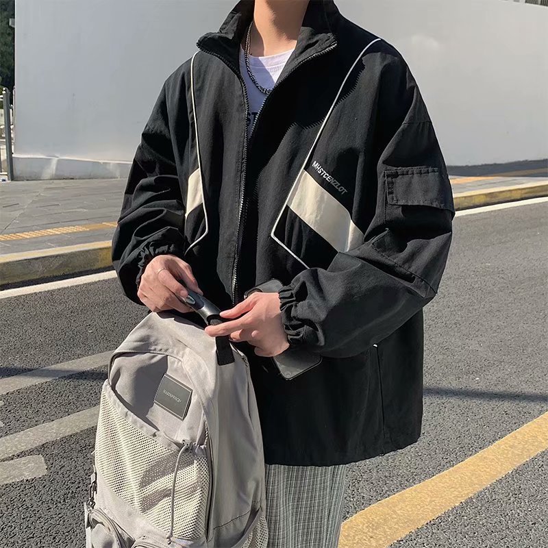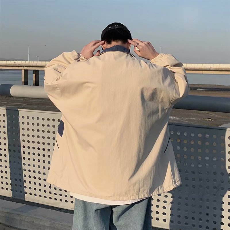 일본식 컬러 매칭 재킷 남성 산 패션 브랜드 미국 복고풍 느슨한 Pu 잘 생긴 야외 스탠드 칼라 캐주얼 재킷스토어 가기