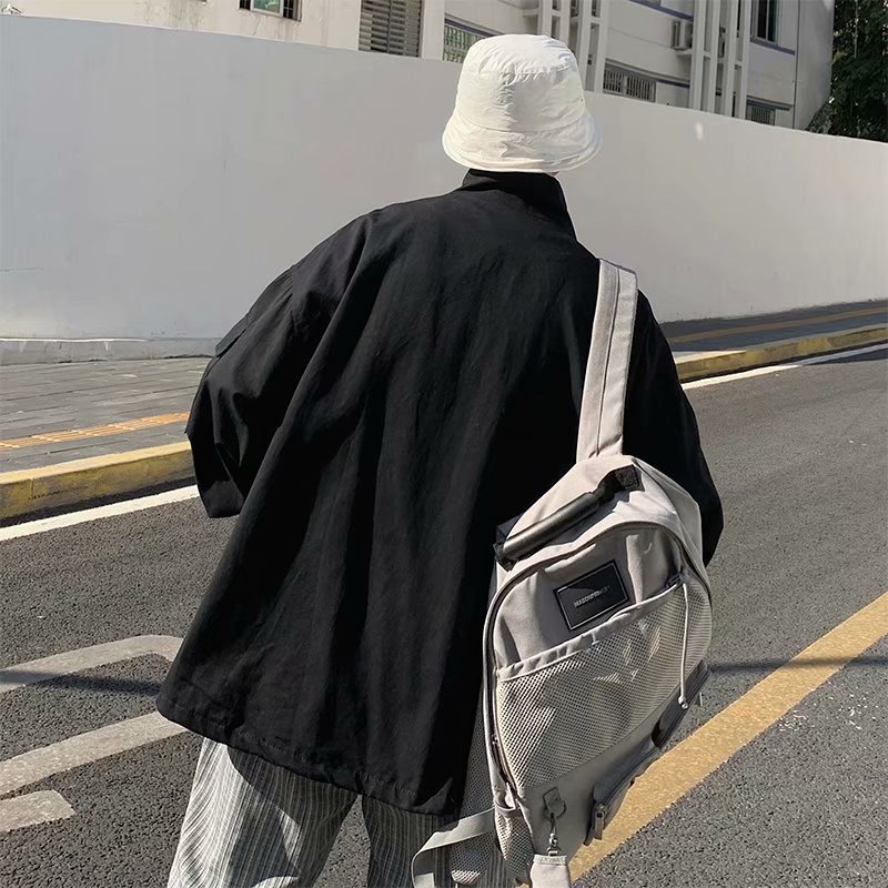 일본식 컬러 매칭 재킷 남성 산 패션 브랜드 미국 복고풍 느슨한 Pu 잘 생긴 야외 스탠드 칼라 캐주얼 재킷