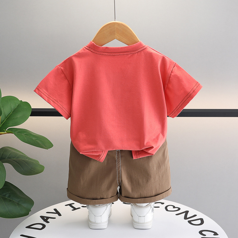 남자들의 여름 세트 새로운 패션 브랜드 반팔 운동복 잘 생긴 어린이 캐주얼 여름 프린트 투피스 세트