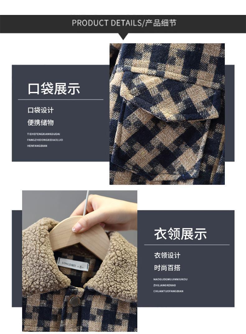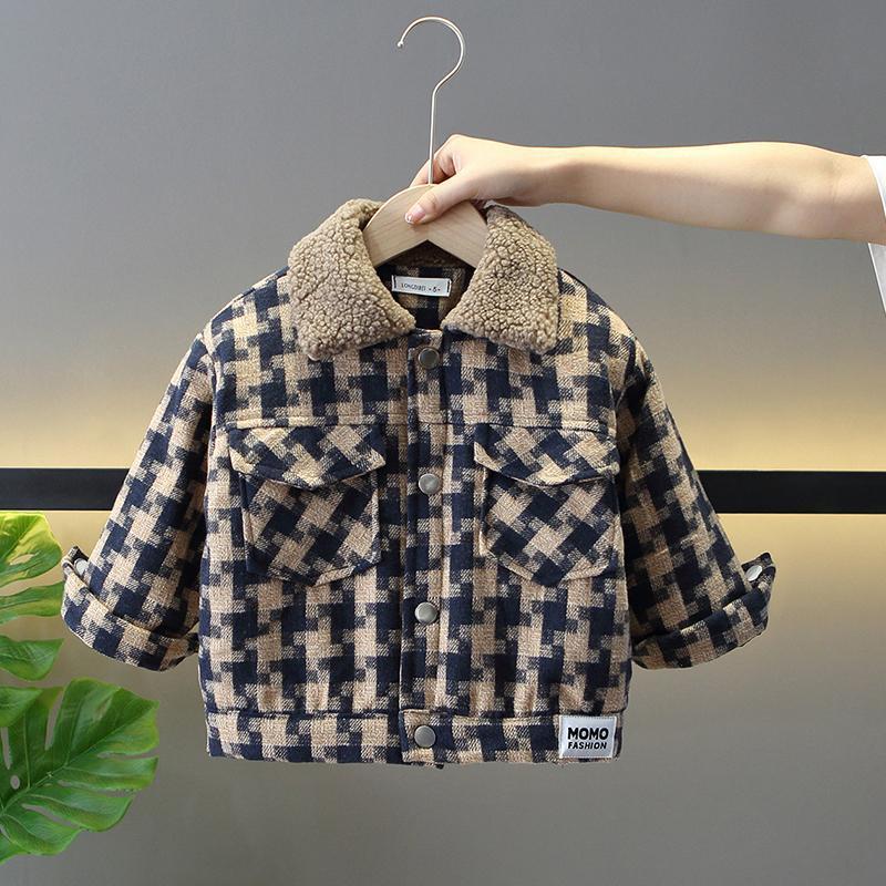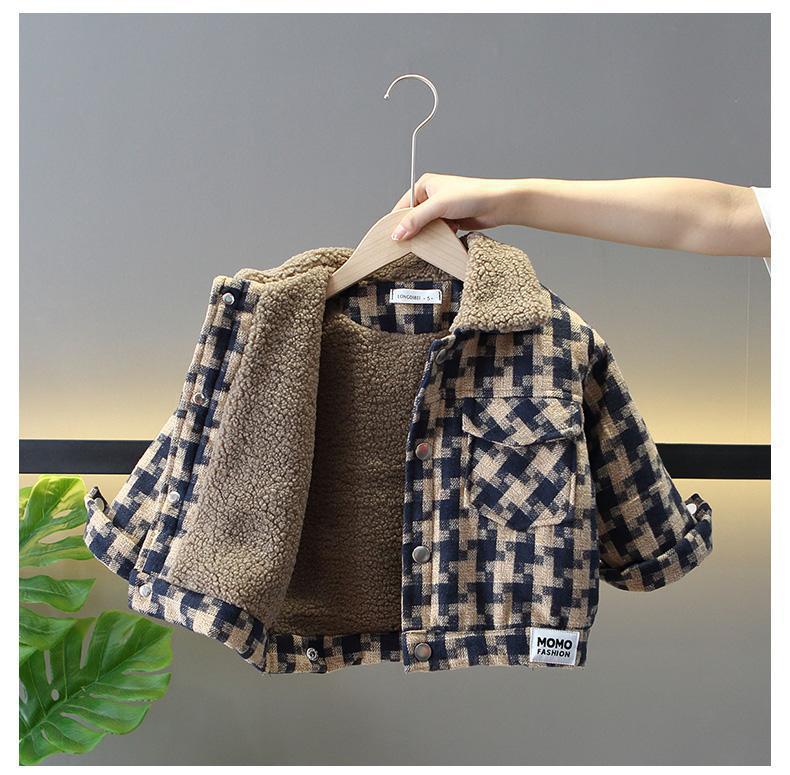 무료 배송 소년 벨벳 재킷 2023 년 가을과 겨울 새로운 격자 무늬 양가죽 탑 어린이 착용 잘 생긴 아기스토어 가기