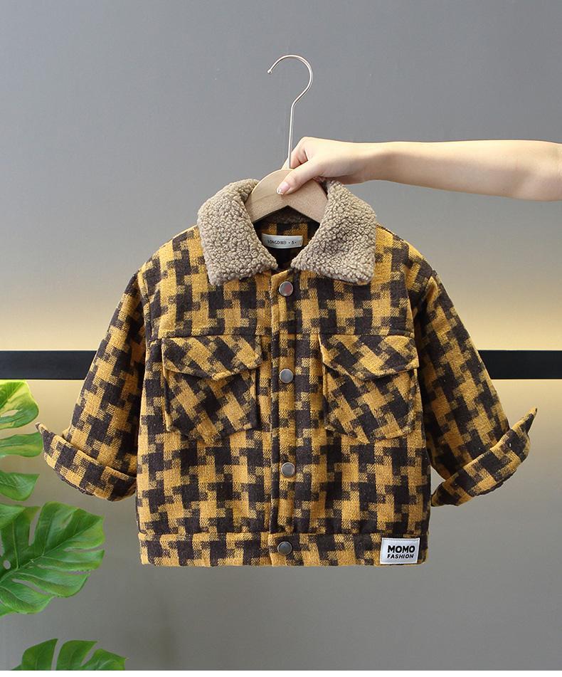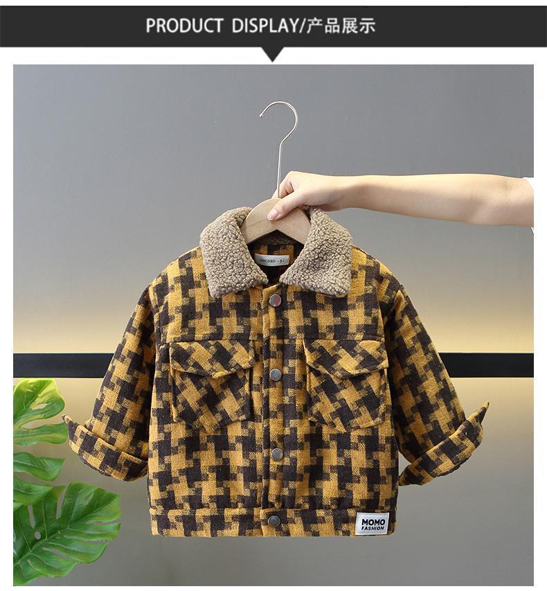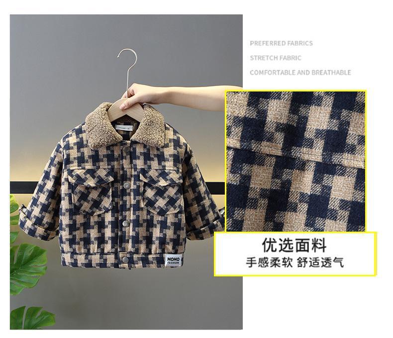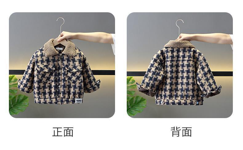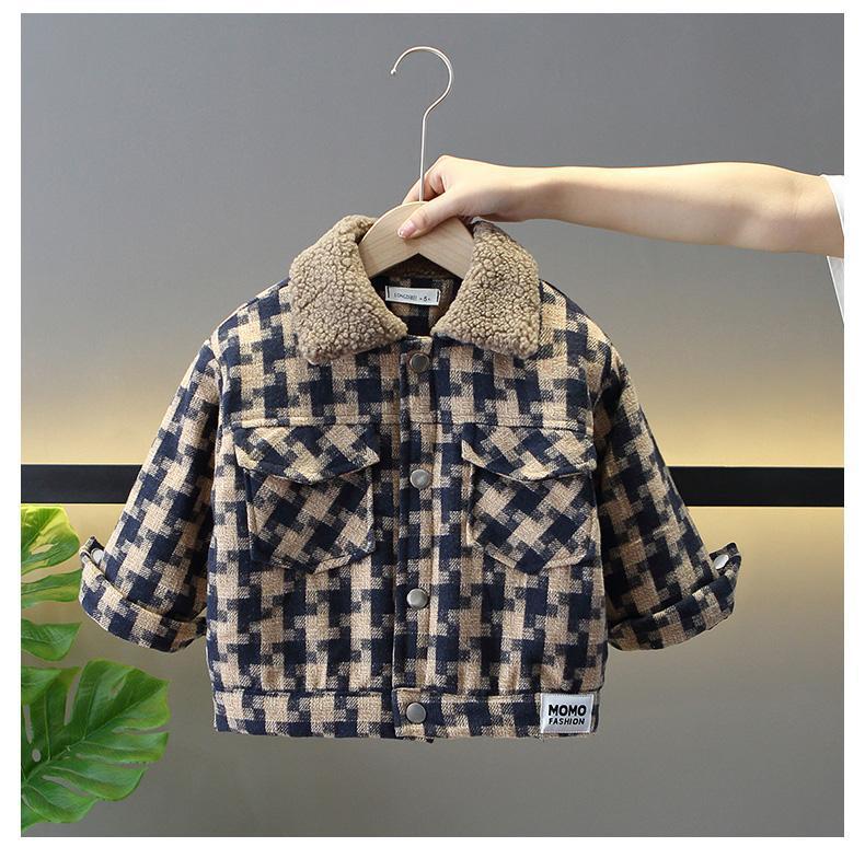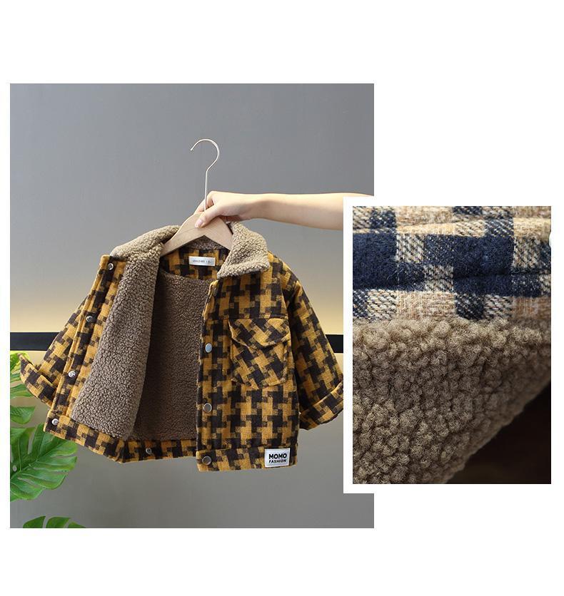 무료 배송 소년 벨벳 재킷 2023 년 가을과 겨울 새로운 격자 무늬 양가죽 탑 어린이 착용 잘 생긴 아기