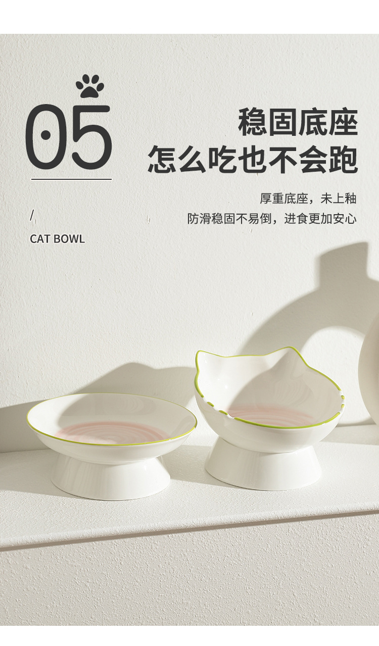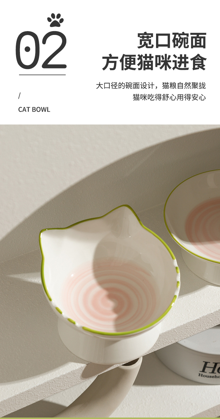 고양이 그릇 세라믹 고양이 음식 그릇 개 그릇 음식 그릇 밥 그릇 큰 직경 물 그릇 비스듬한 그릇 안티 노크 애완 동물 용품