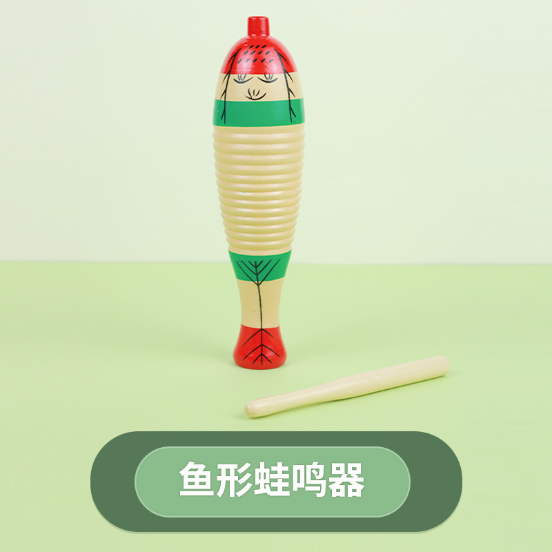 나무 물고기 Orff 악기 어린이 악기 타악기 물고기 모양의 클래퍼 조기 교육 Orff 악기 교육 보조 개구리 노래스토어 가기
