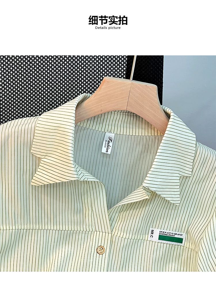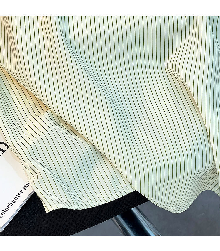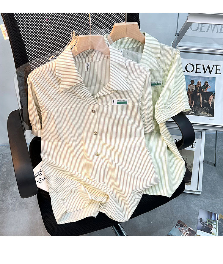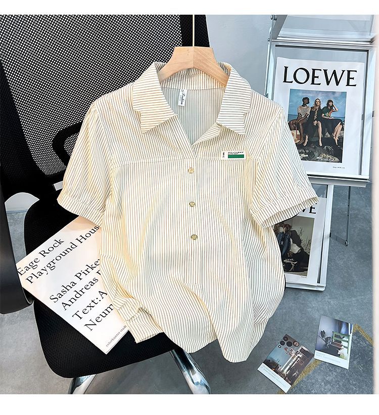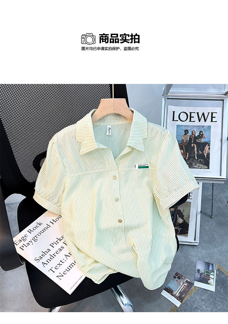 여성을위한 반팔 셔츠 2024 새로운 여름 줄무늬 세련된 아름다운 작은 셔츠 퍼프 소매 느슨한 서양식 연령 감소 탑