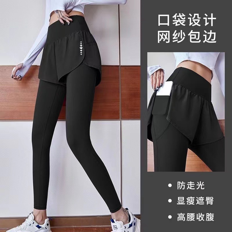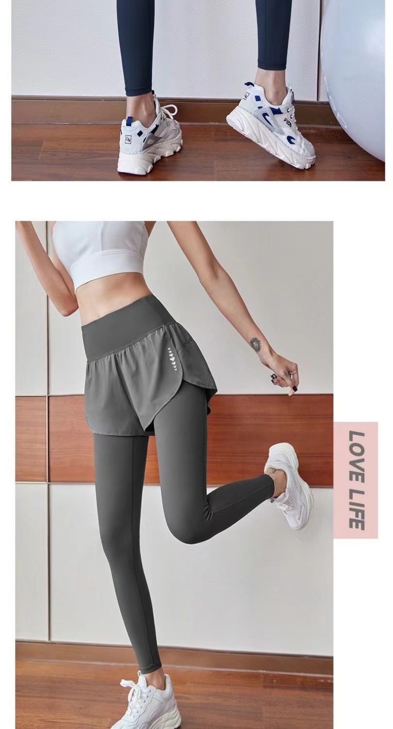 [결제 금지] 요가 바지 여성 높은 허리 엉덩이 들어 올리는 탄성 타이트 페이크 두 개의 복숭아 외부 착용 복부 빠른 건조 스포츠 바지스토어 가기
