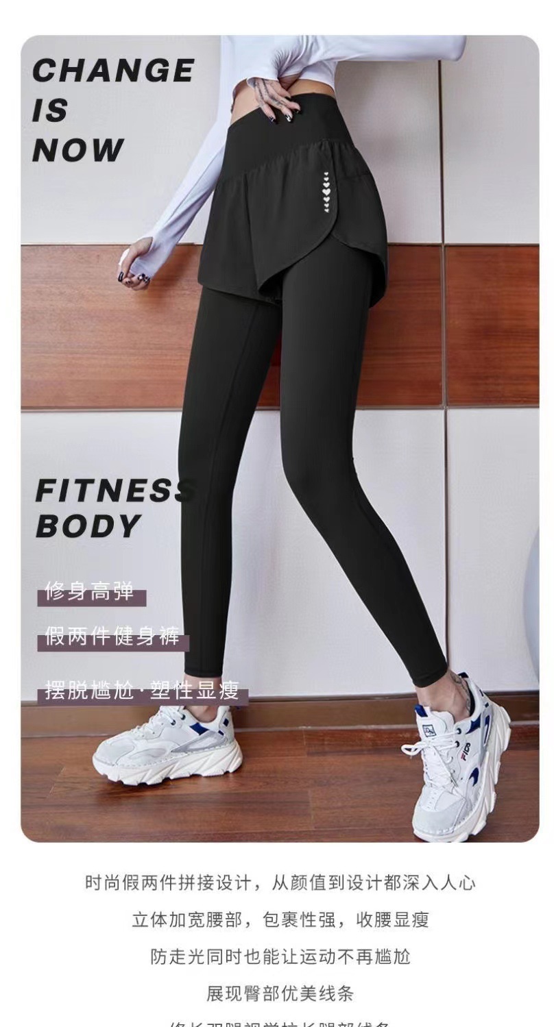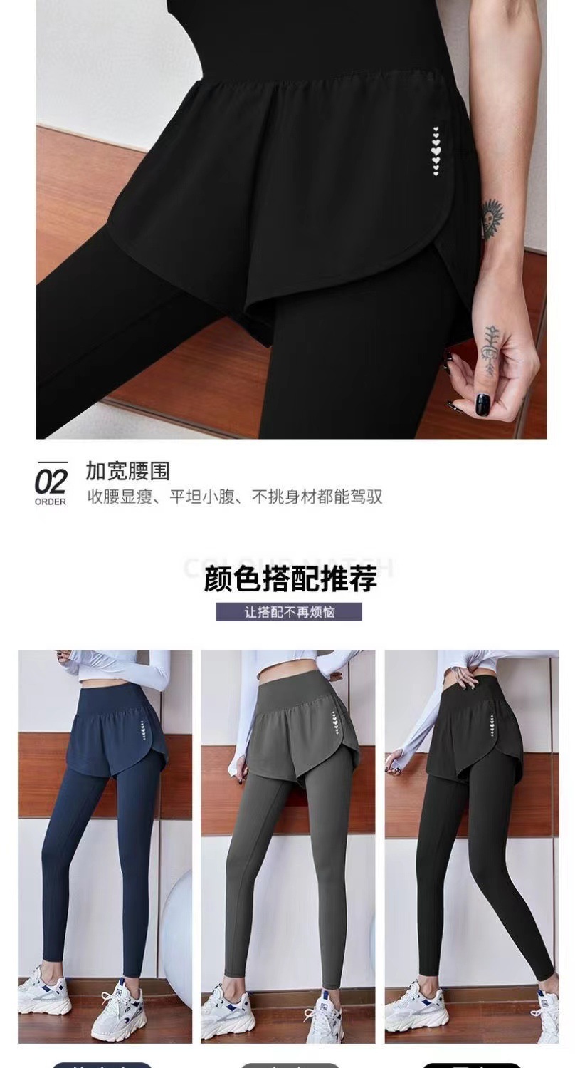 [결제 금지] 요가 바지 여성 높은 허리 엉덩이 들어 올리는 탄성 타이트 페이크 두 개의 복숭아 외부 착용 복부 빠른 건조 스포츠 바지