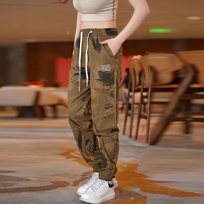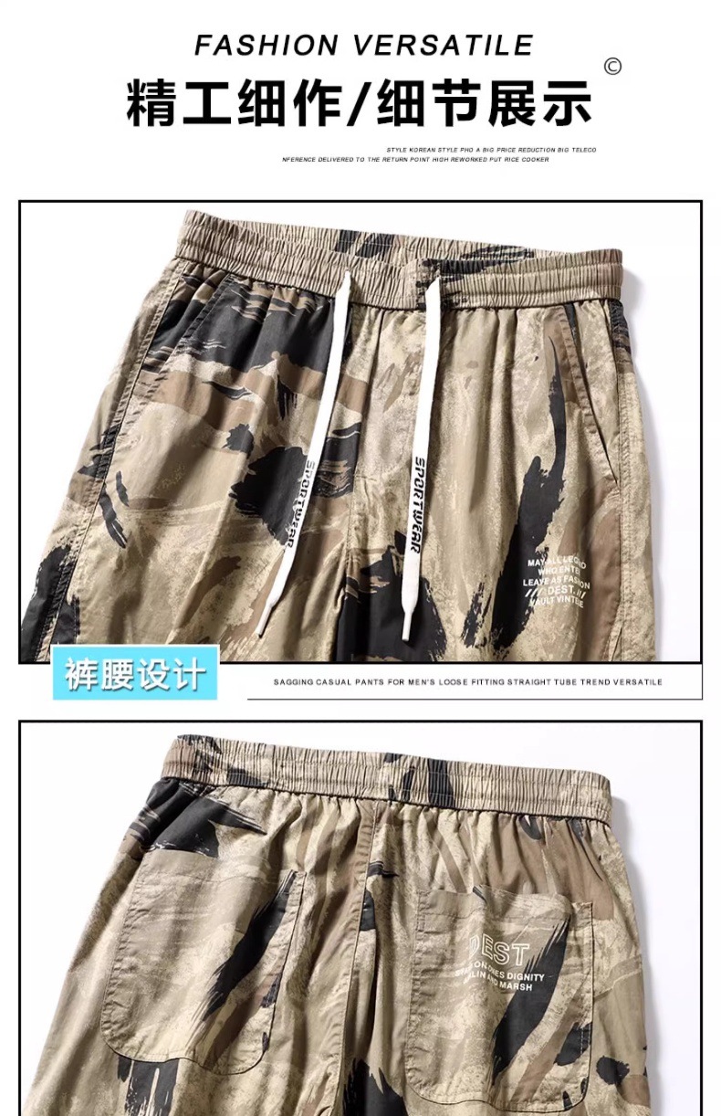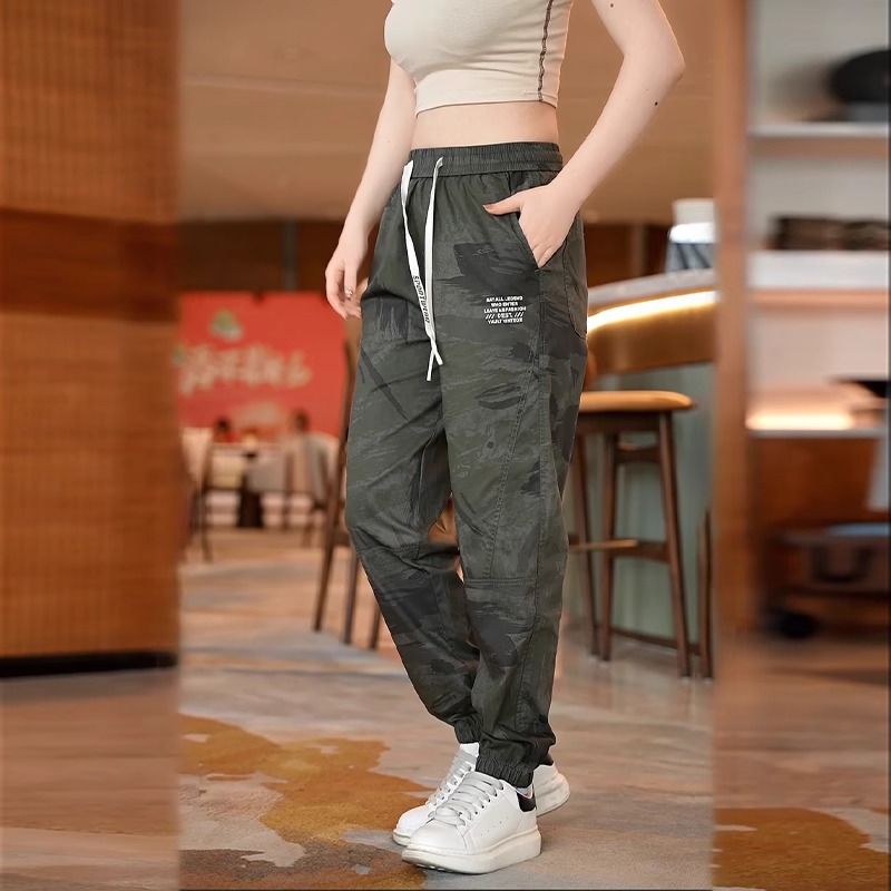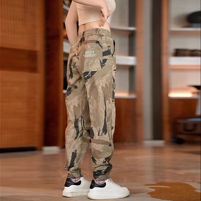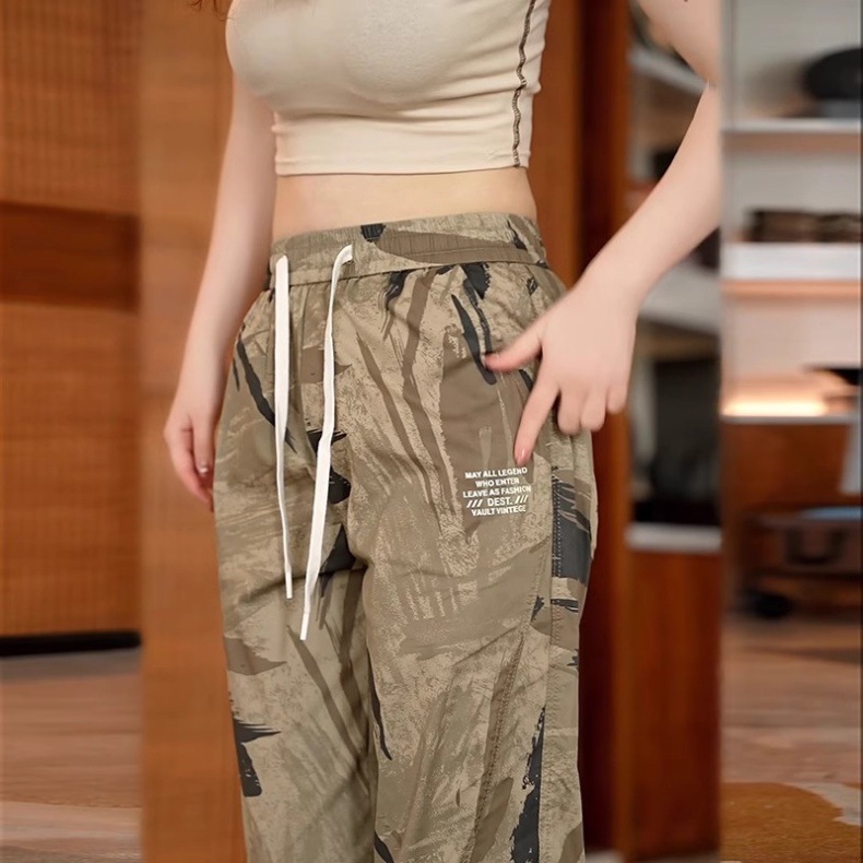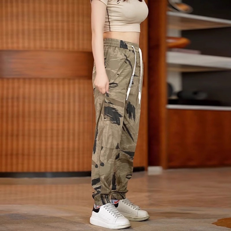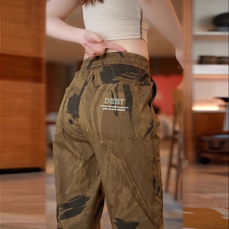 迷彩冰丝裤子男士潮流宽松束脚哈伦裤2025秋季厚款运动休闲九分裤스토어 가기