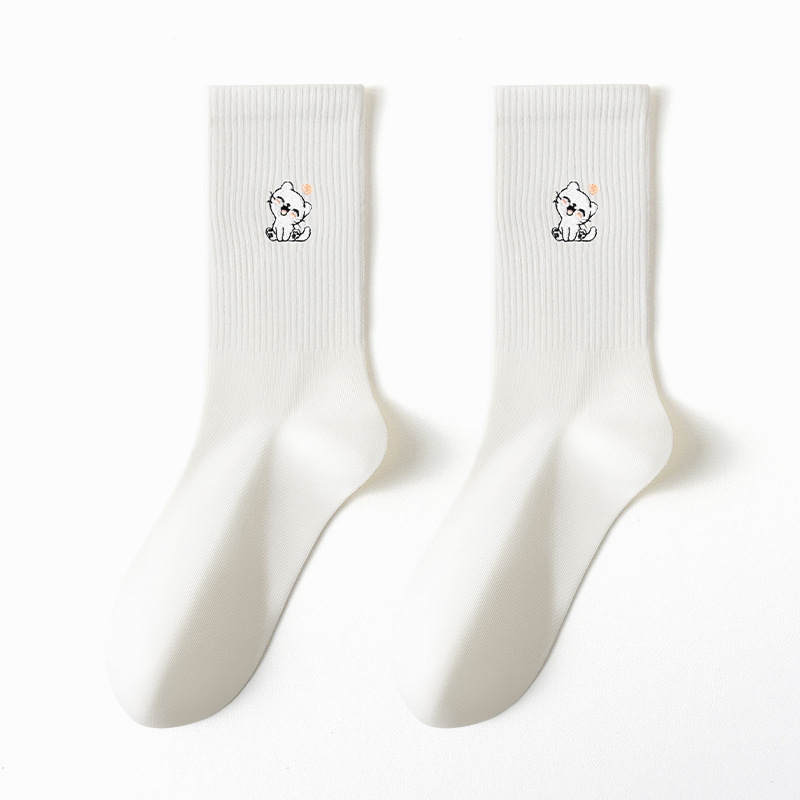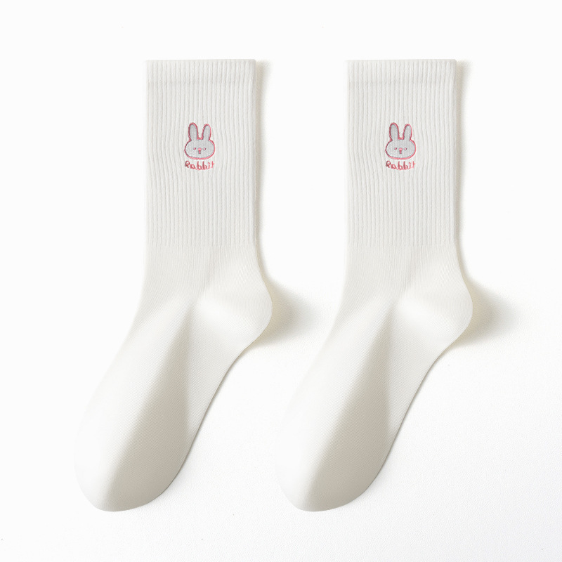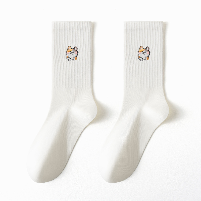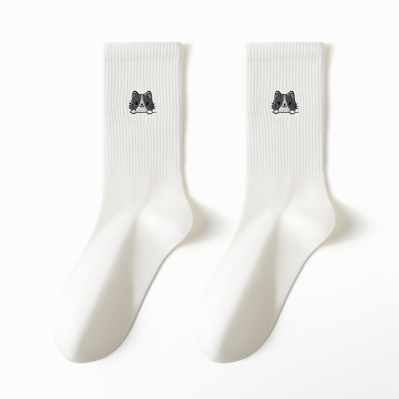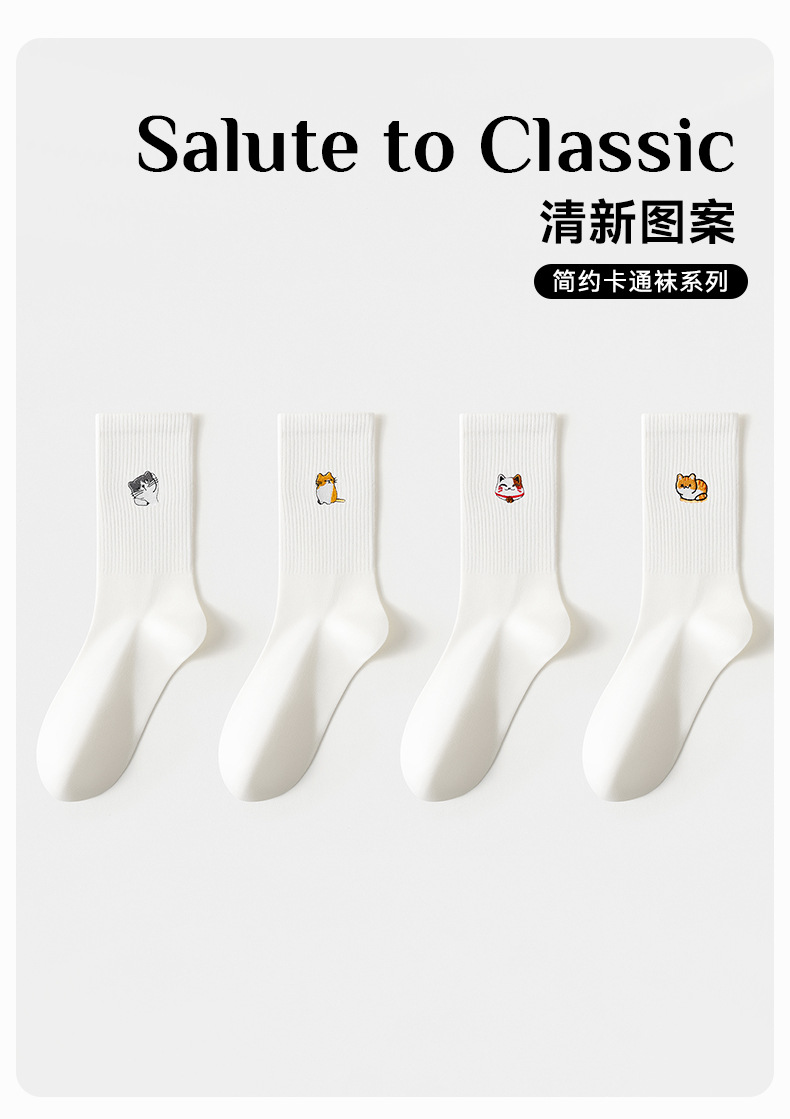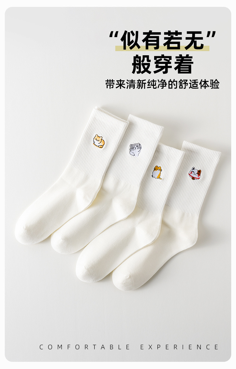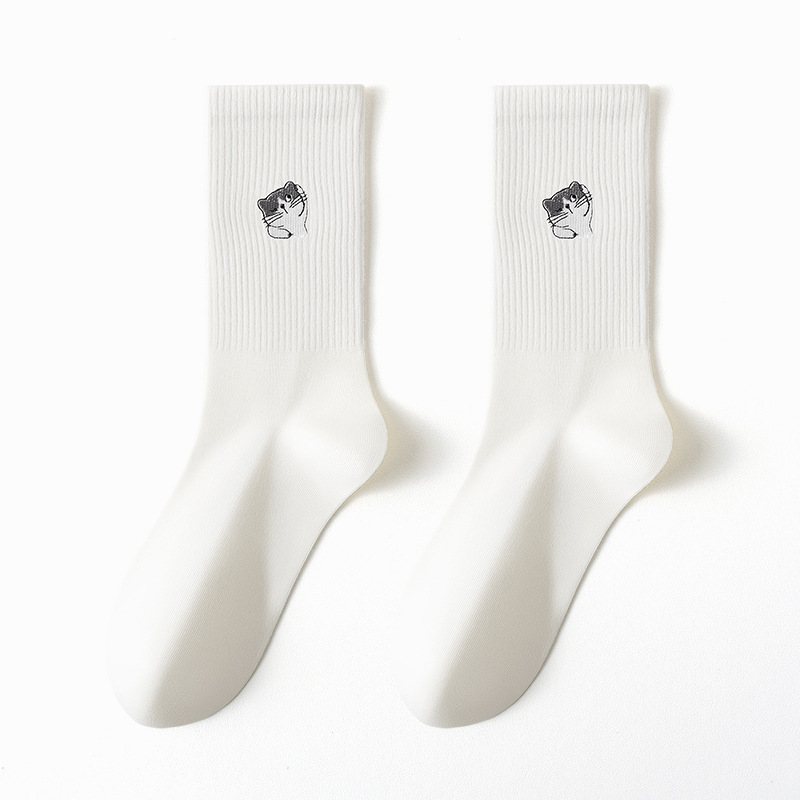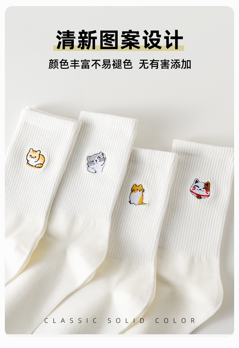 양말 여성 봄 여름 종아리 중간 양말 항균, 탈취 및 땀 흡수 솔리드 컬러 자수 커플 면 양말 땀 흡수 및 항균스토어 가기