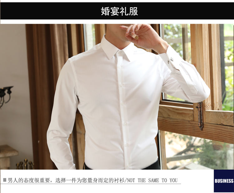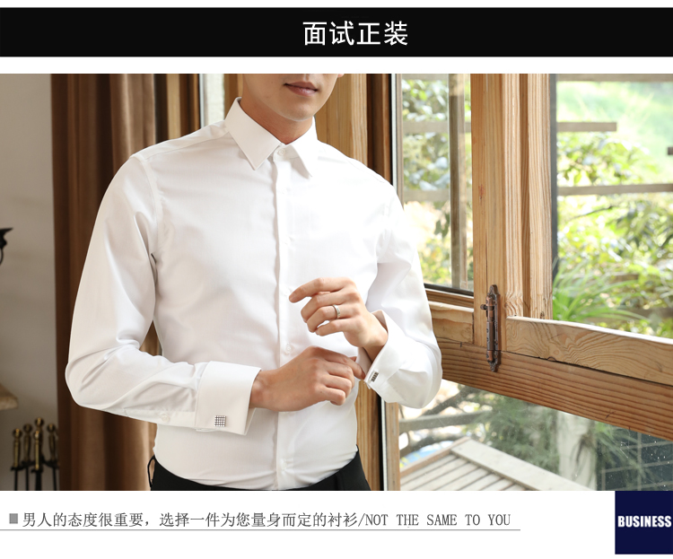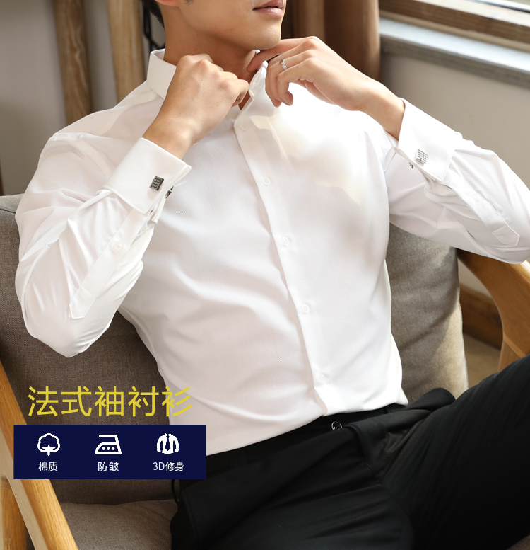 프랑스 스타일 셔츠 남성용 긴 소매 슬림 핏 비 다림질 비즈니스 공식 원피스 신랑 최고의 남자 웨딩 커프스 단추 화이트 셔츠 전문 연회스토어 가기